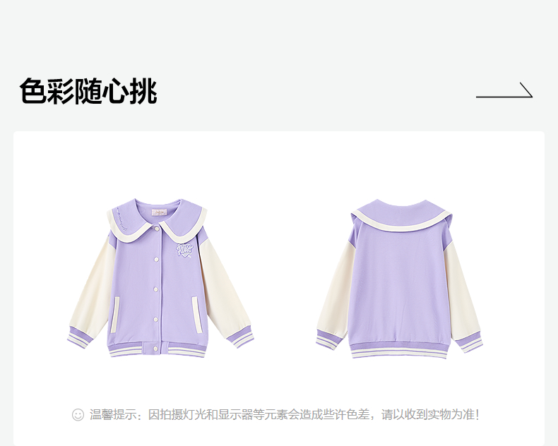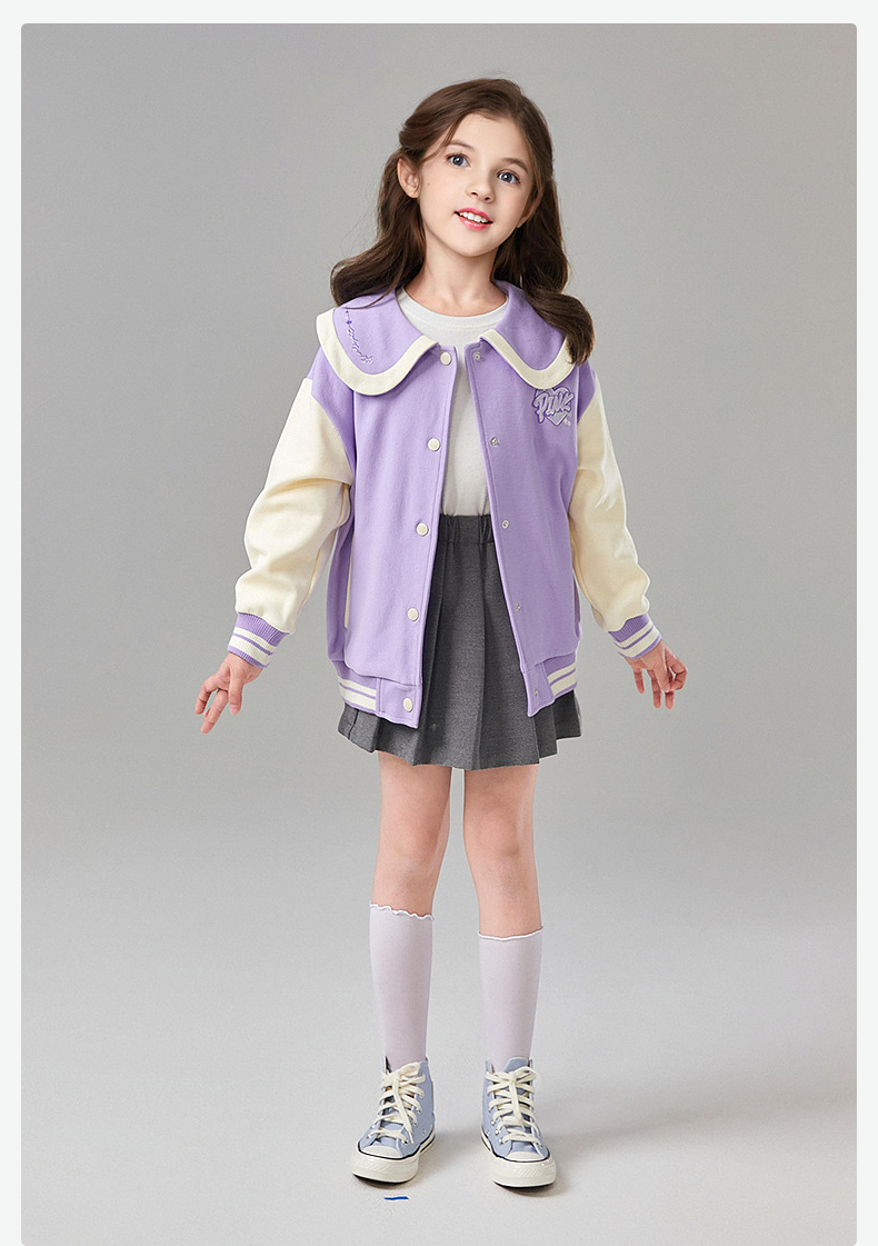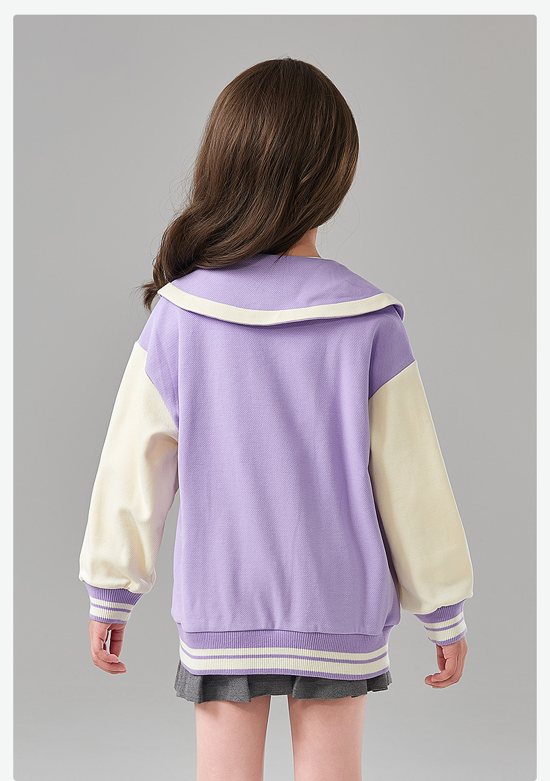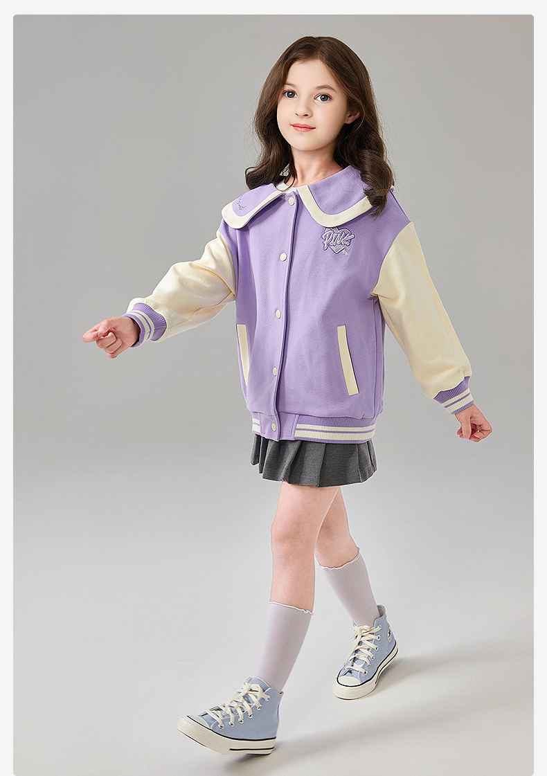 笛莎Deesha 童装女童外套2025春新款学院风撞色娃娃领棒球服