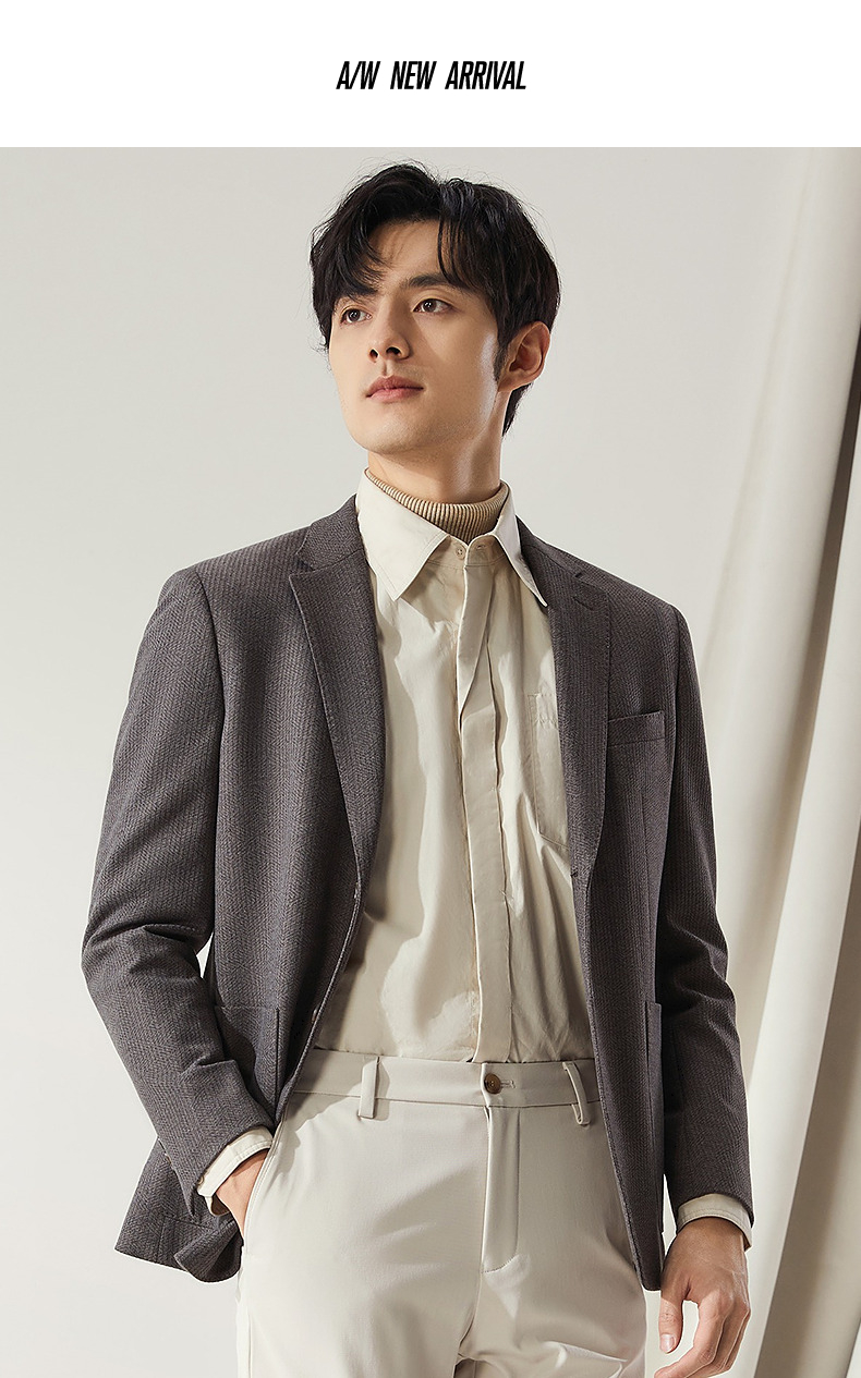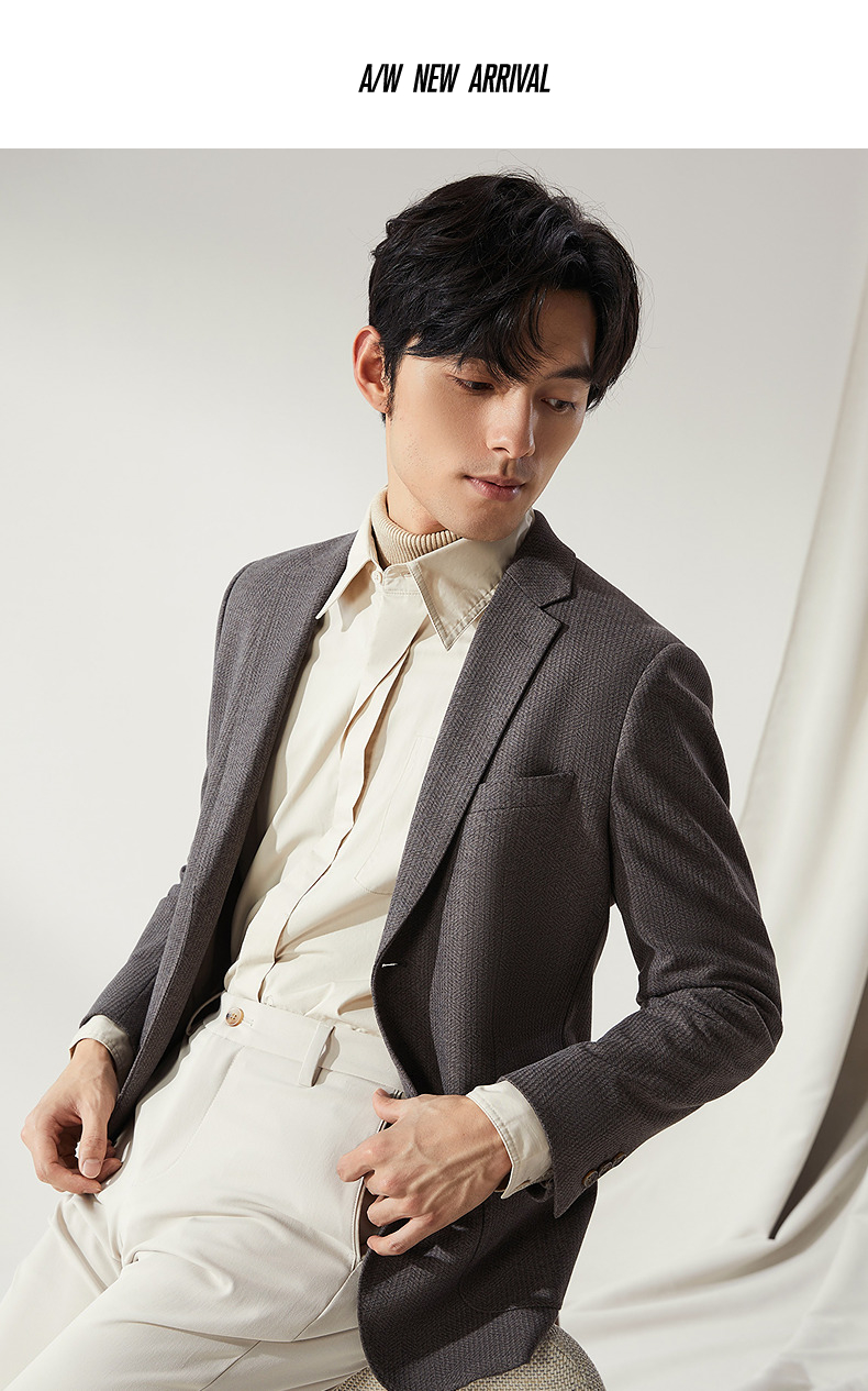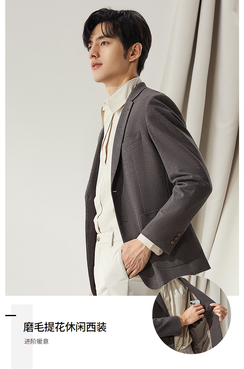 【高端系列】柒牌平驳领西装男秋冬新款磨毛针织商务休闲单西外套 127C70750
