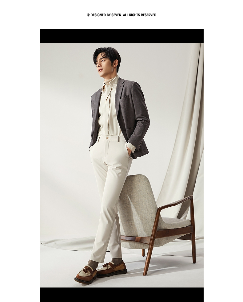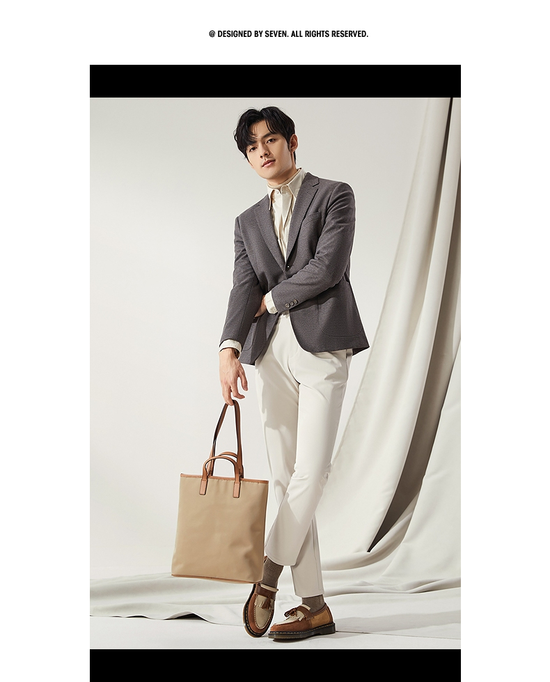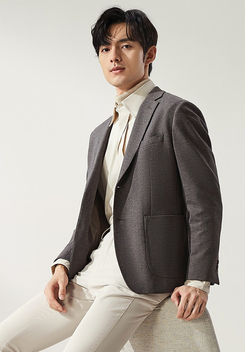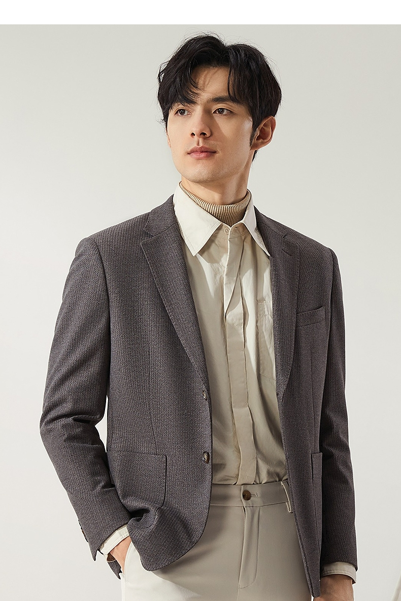【高端系列】柒牌平驳领西装男秋冬新款磨毛针织商务休闲单西外套 127C70750