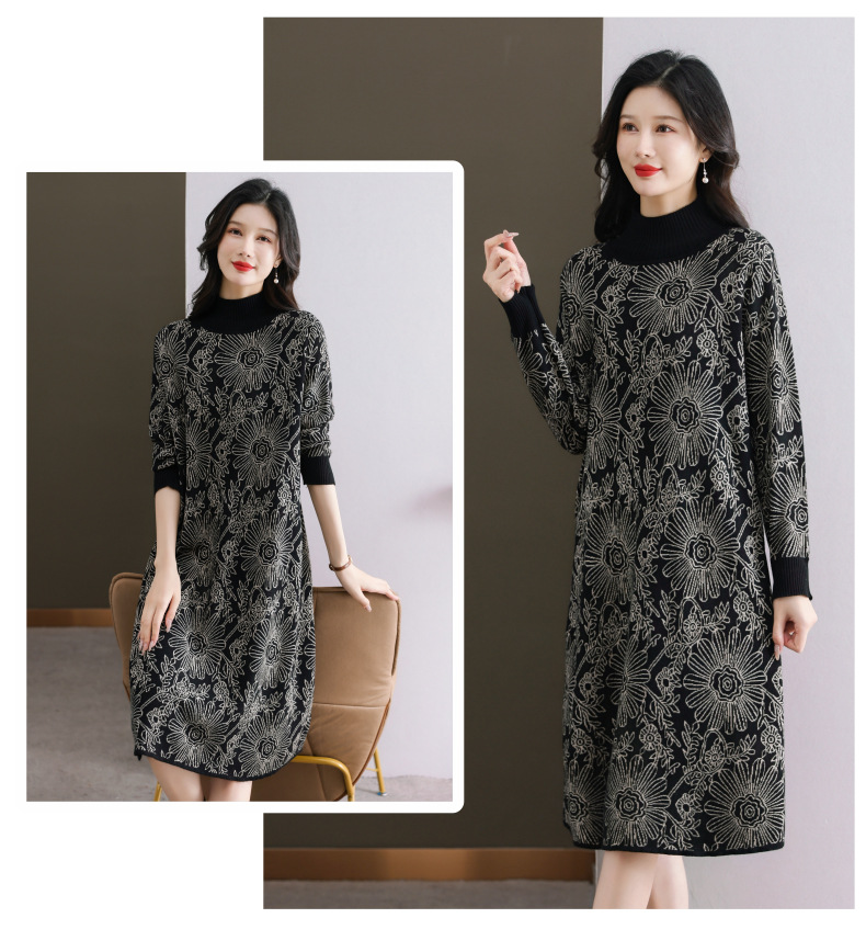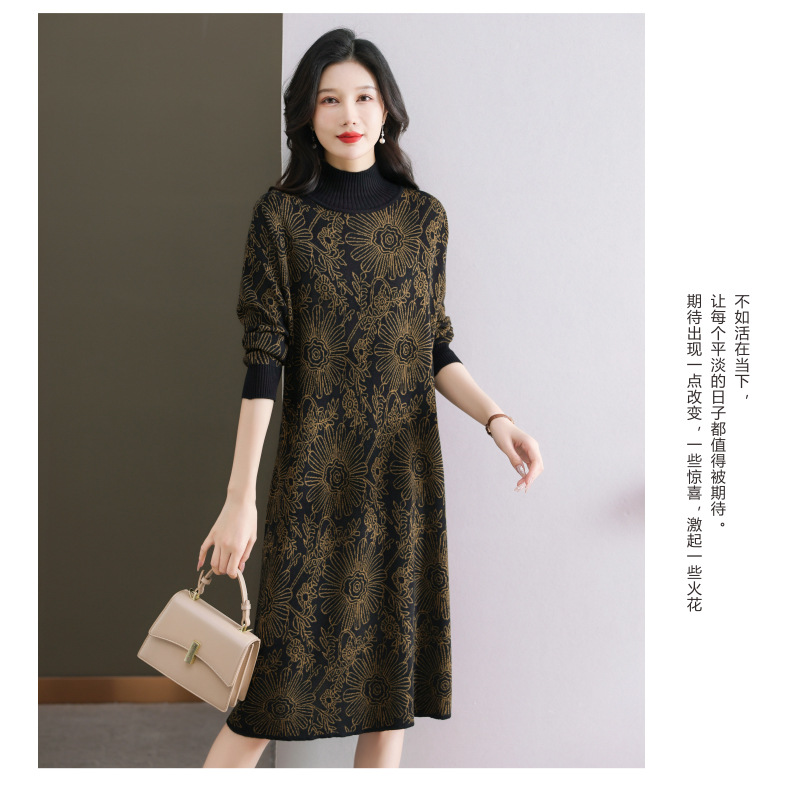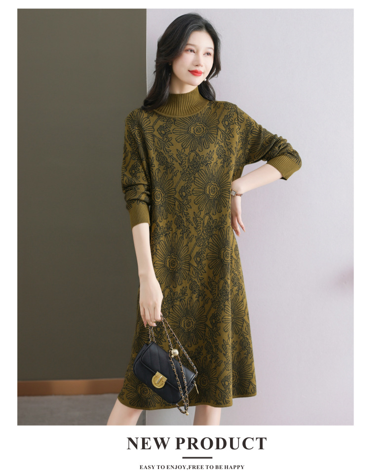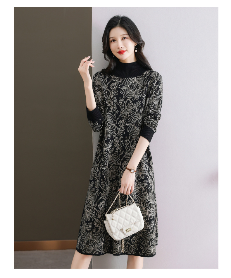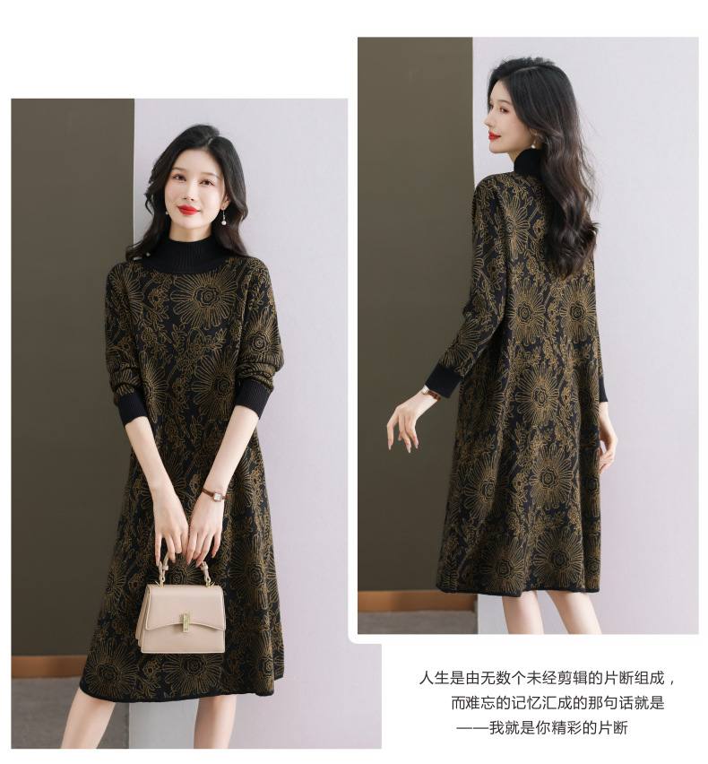 冬季新款,秋冬配大衣内搭大码毛衣裙中长款气质针织连衣裙CC-SYX-8567