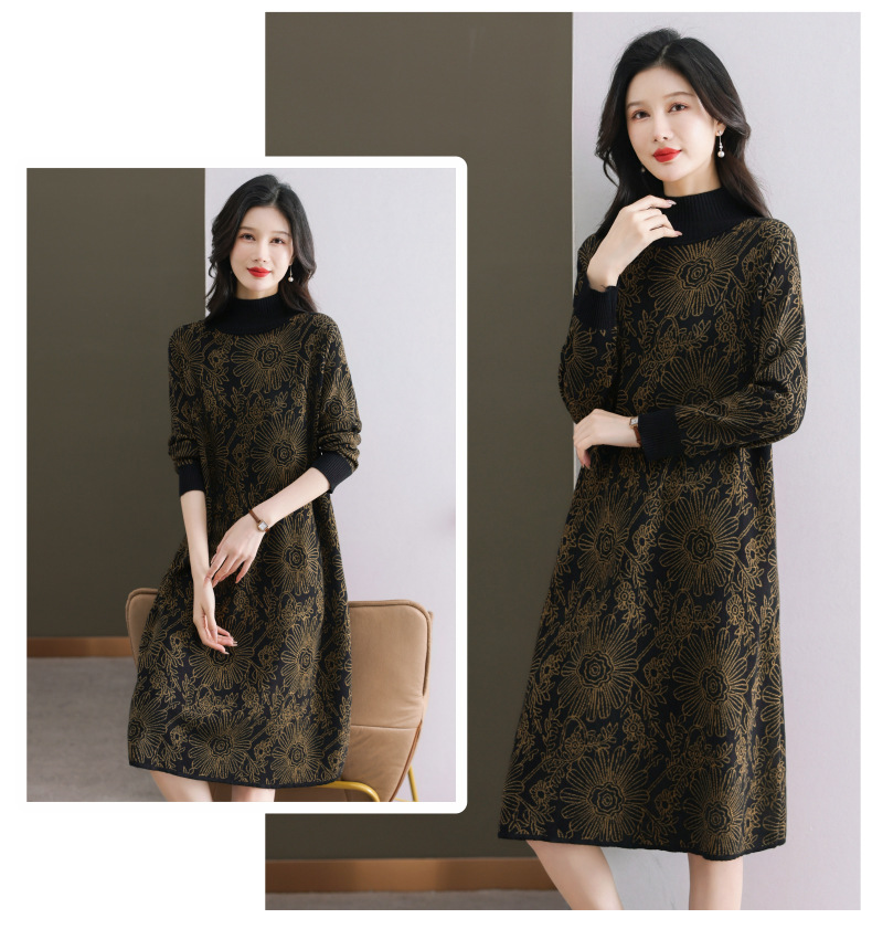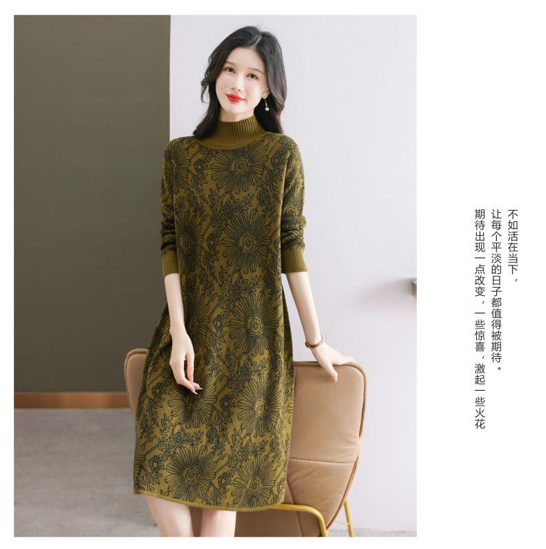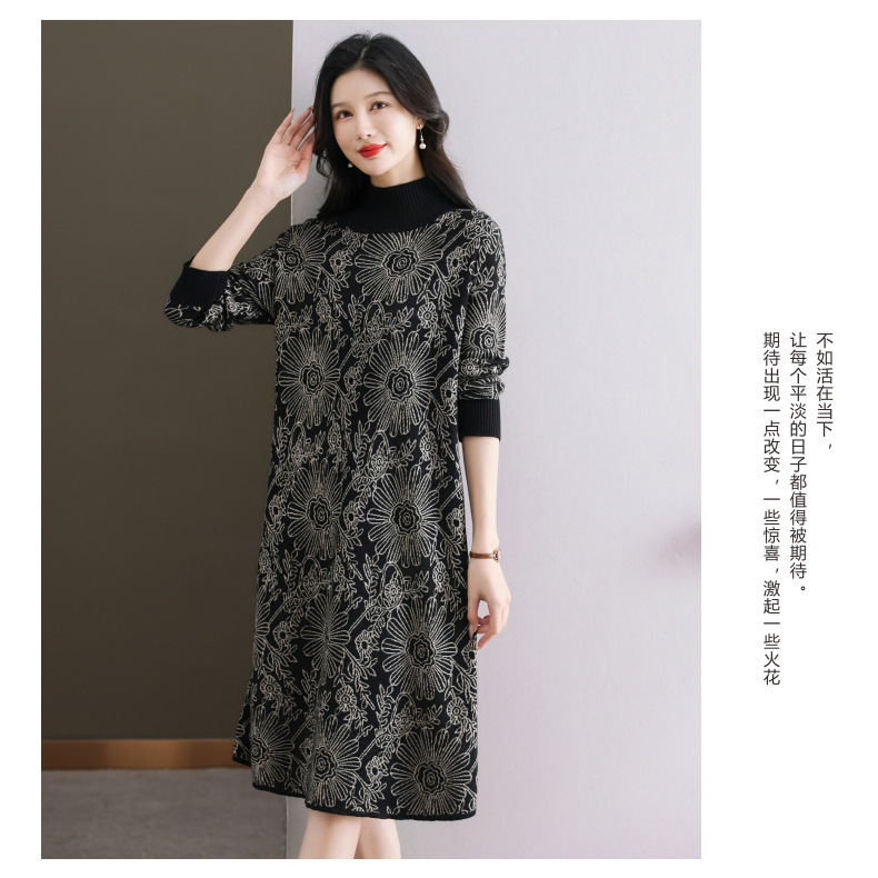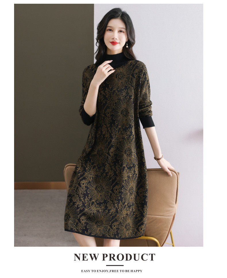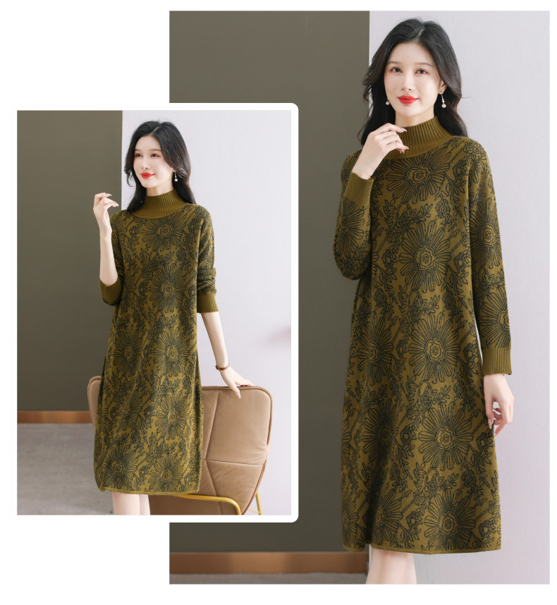 冬季新款,秋冬配大衣内搭大码毛衣裙中长款气质针织连衣裙CC-SYX-8567