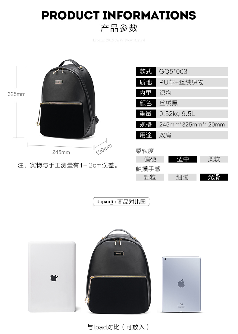 【Lipault】PU时尚精致通勤休闲双肩女包GQ5*003