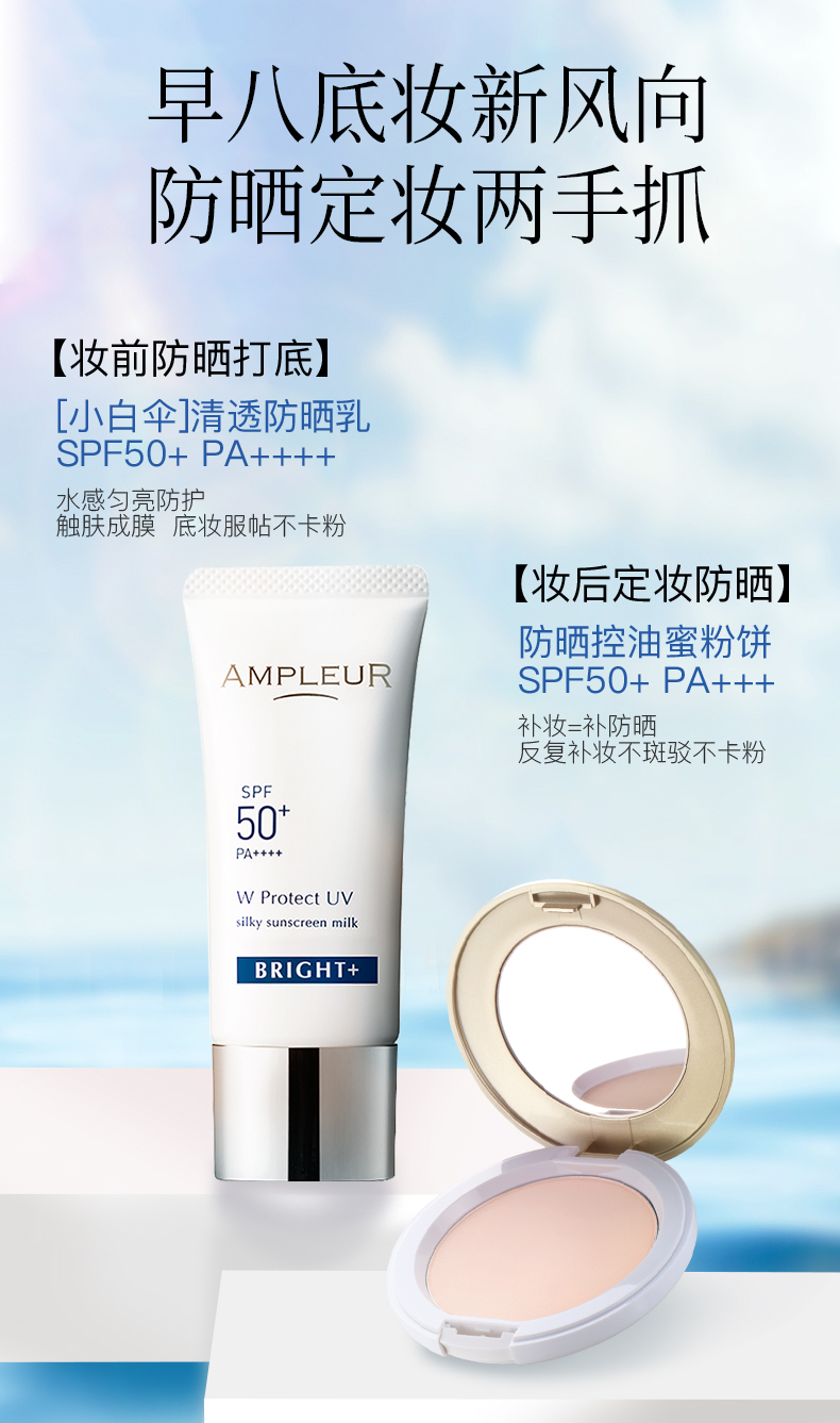 AMPLEUR水润亮白bright清透防晒乳30g+AMPLEUR凉感控油柔焦粉饼10g