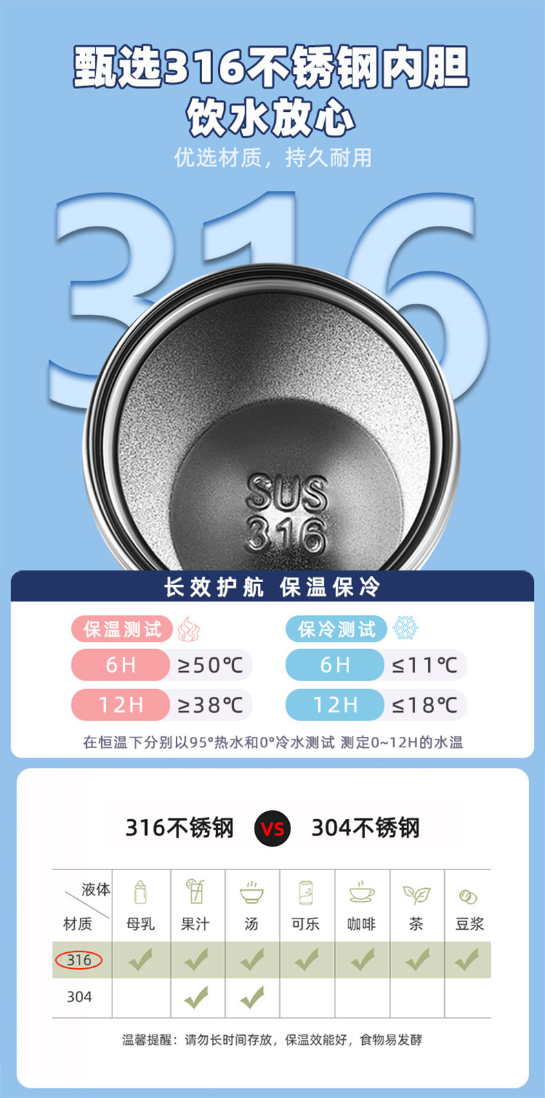 升级316内胆❗️ 保温效果更好 防腐蚀效果更好⚠️ 清洗也更加方便 比普通保温杯更加好