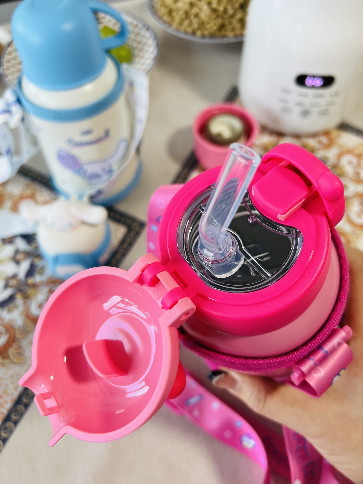 我滴神仙保温杯!! 实拍图感受可爱~ 每一个都实用可爱,喝水动力来咯📍 真的超级实用! 包装也非常用心和有质感~ 精美的彩盒包装这一点好感满分💯 送人也特别棒! 都是一杯双盖 每一盒都赠送收纳袋 可以背的哦, 孩子开学必备的一款