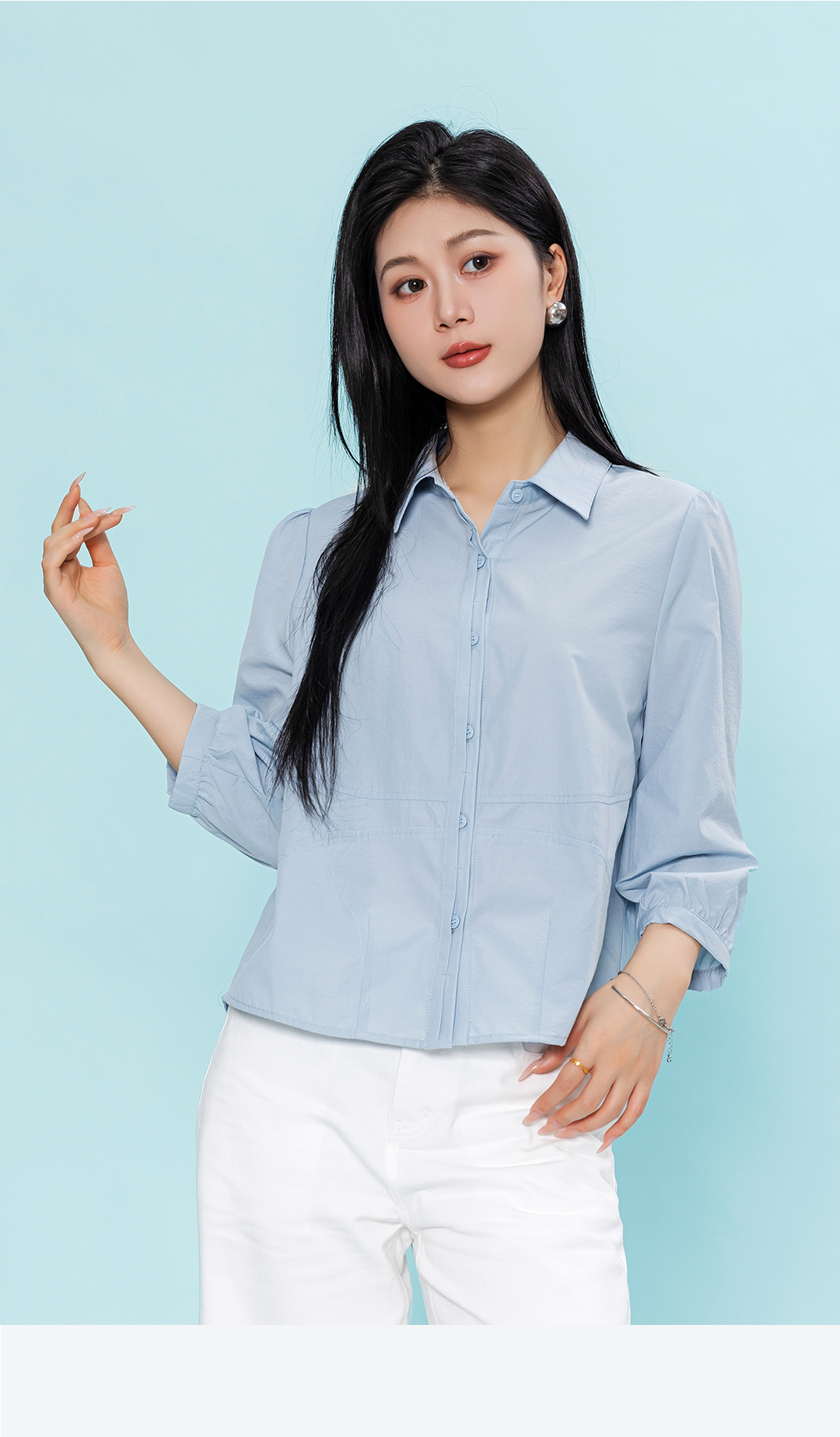 夏上新气质减龄温柔风浅蓝色七分袖衬衫1262002 商品图2