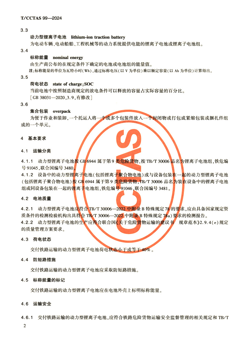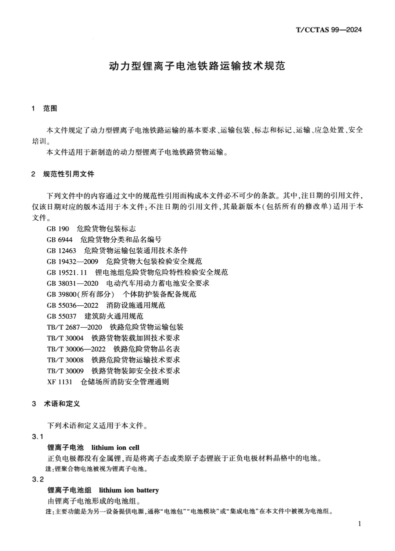 书名:动力型锂离子电池铁路运输技术规范T/CCTAS 99—2024