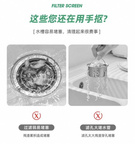 告别水槽堵塞!超实用神器 你是否经常沩水槽堵塞烦恼 这款水槽过滤网兜或许能为你解决这个问题