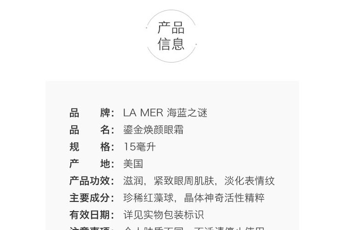 美国 LA MER 海蓝之谜 Genaissance The Eye & Expression Cream 鎏金焕颜精华眼霜 15ml 褪淡纹路 眼部修护
