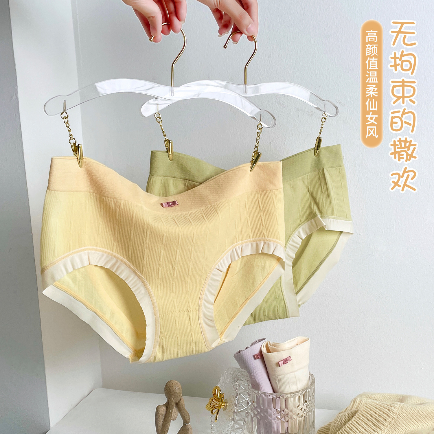包邮加肥加大码艾草温变内裤透气舒适蕾丝边提臀女士三角裤