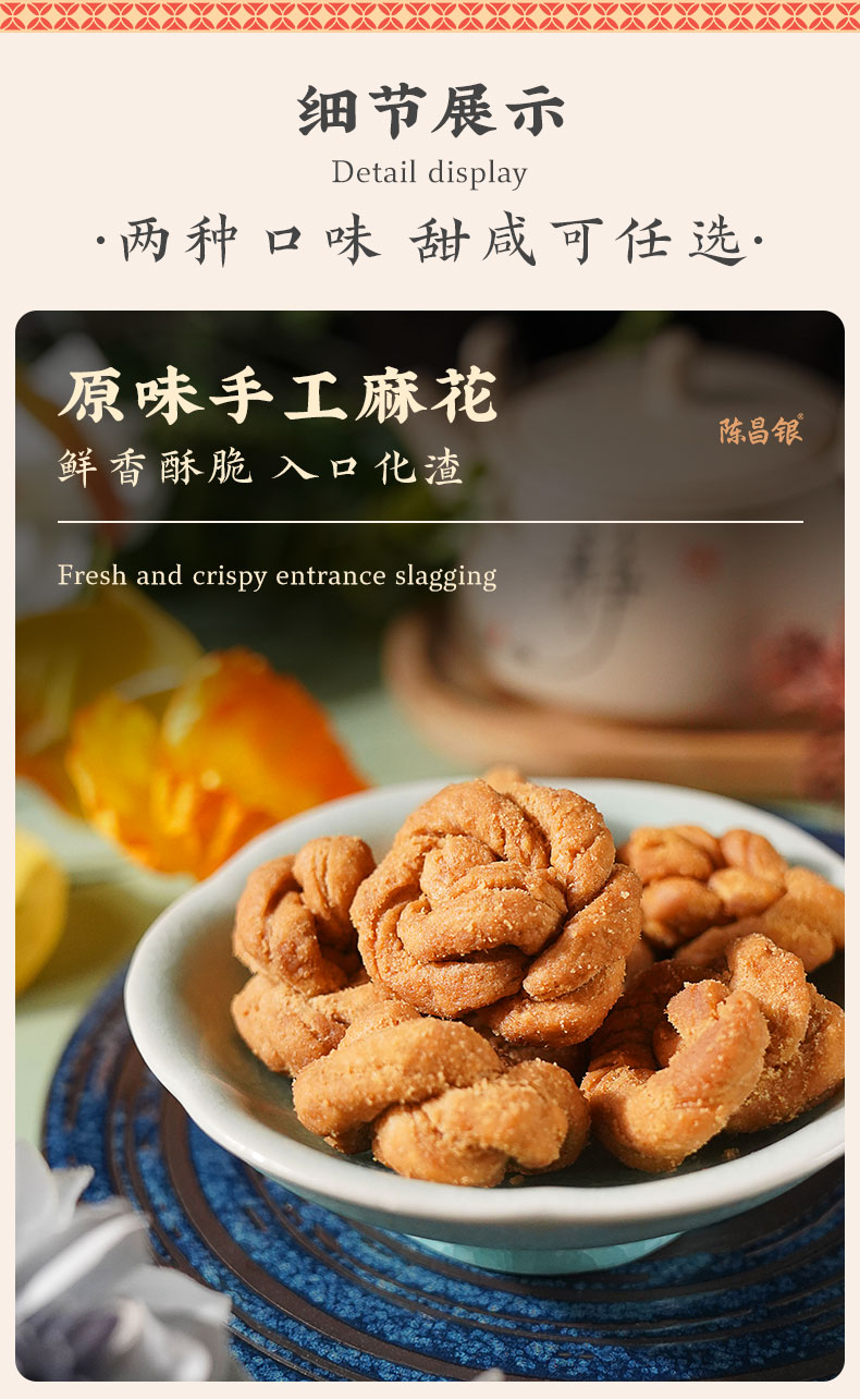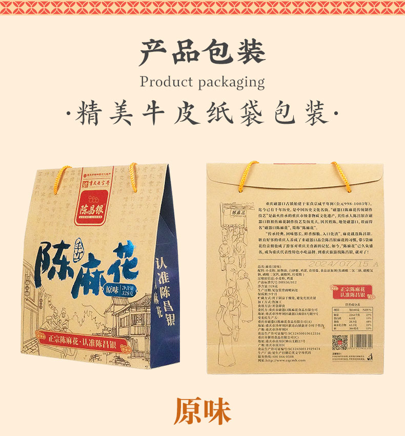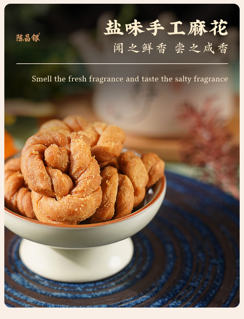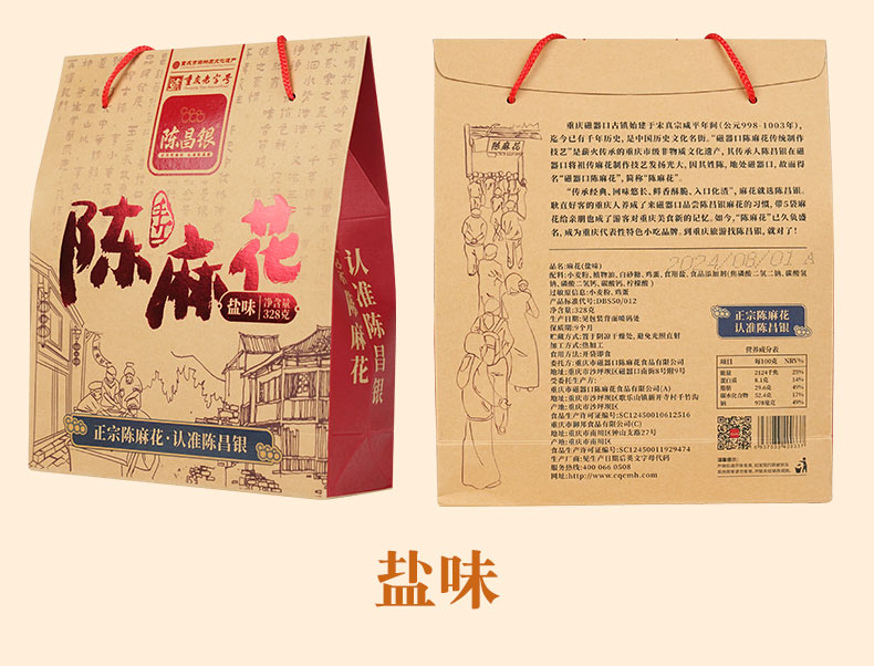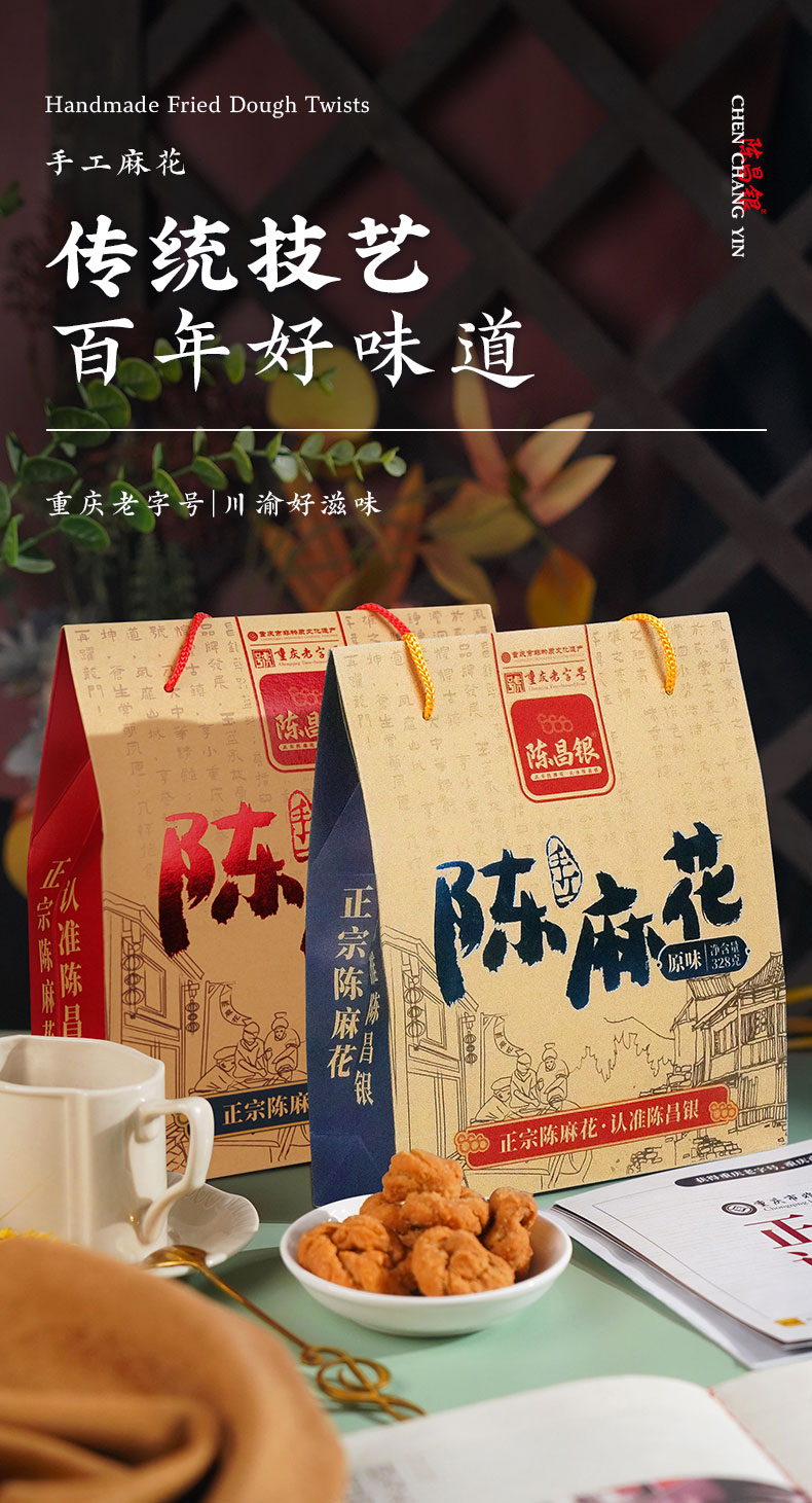 - 陈昌银麻花始于1907年——俗称“磁器口陈麻花”、“陈麻花”。2011年“陈昌银麻花”被认定为“重庆老字号”,2016年“磁器口陈麻花传统制作技艺”被评为“重庆市非物质文化遗产”。