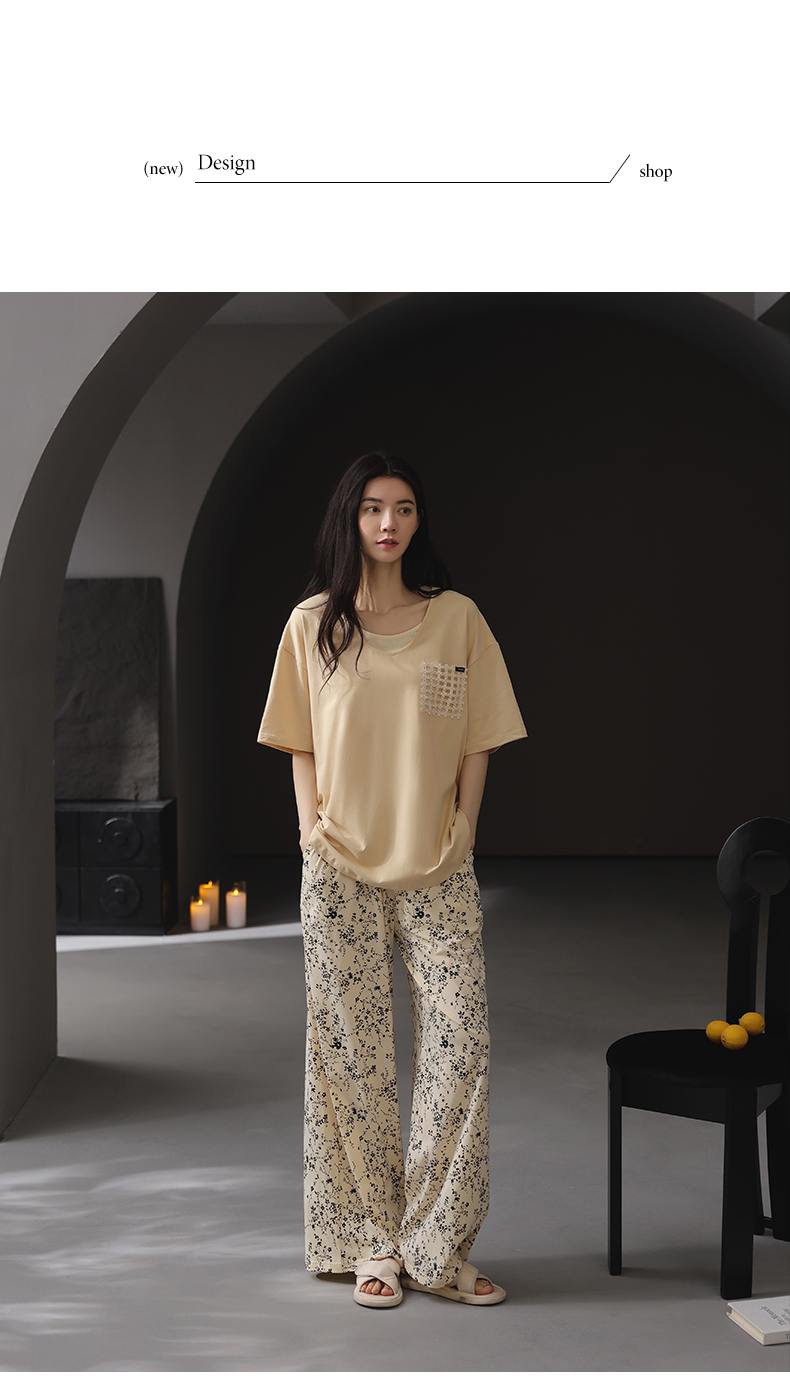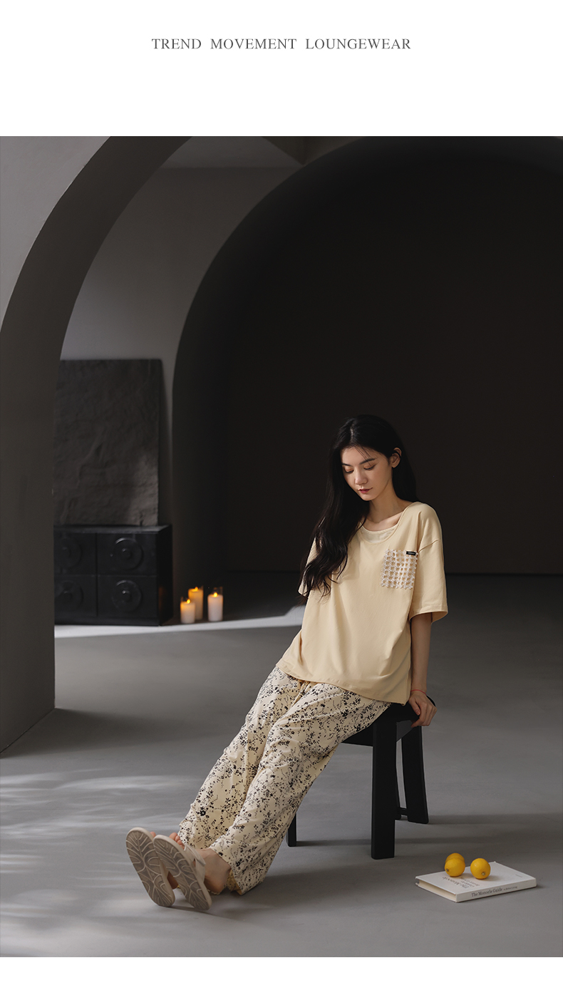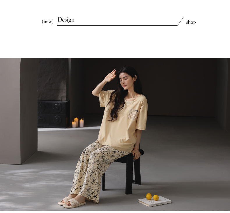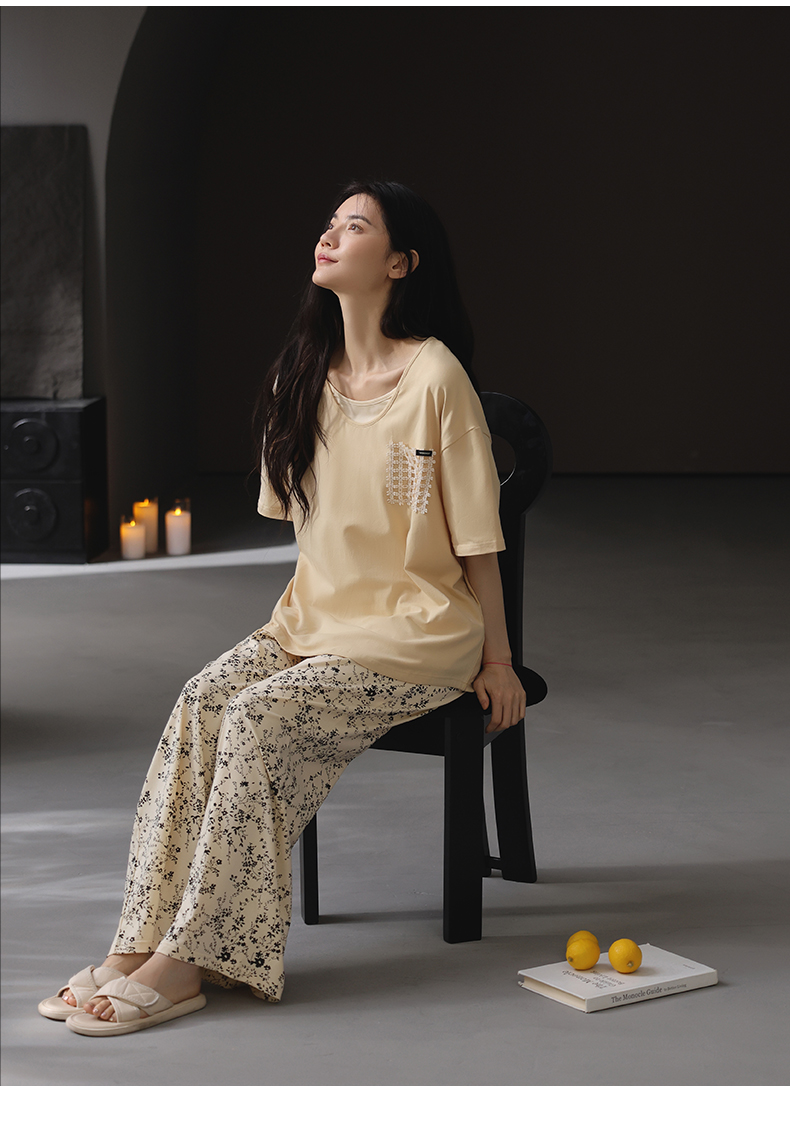 可人儿带胸垫睡衣夏季凉感莫代尔女士家居服短袖长裤套装可外穿
