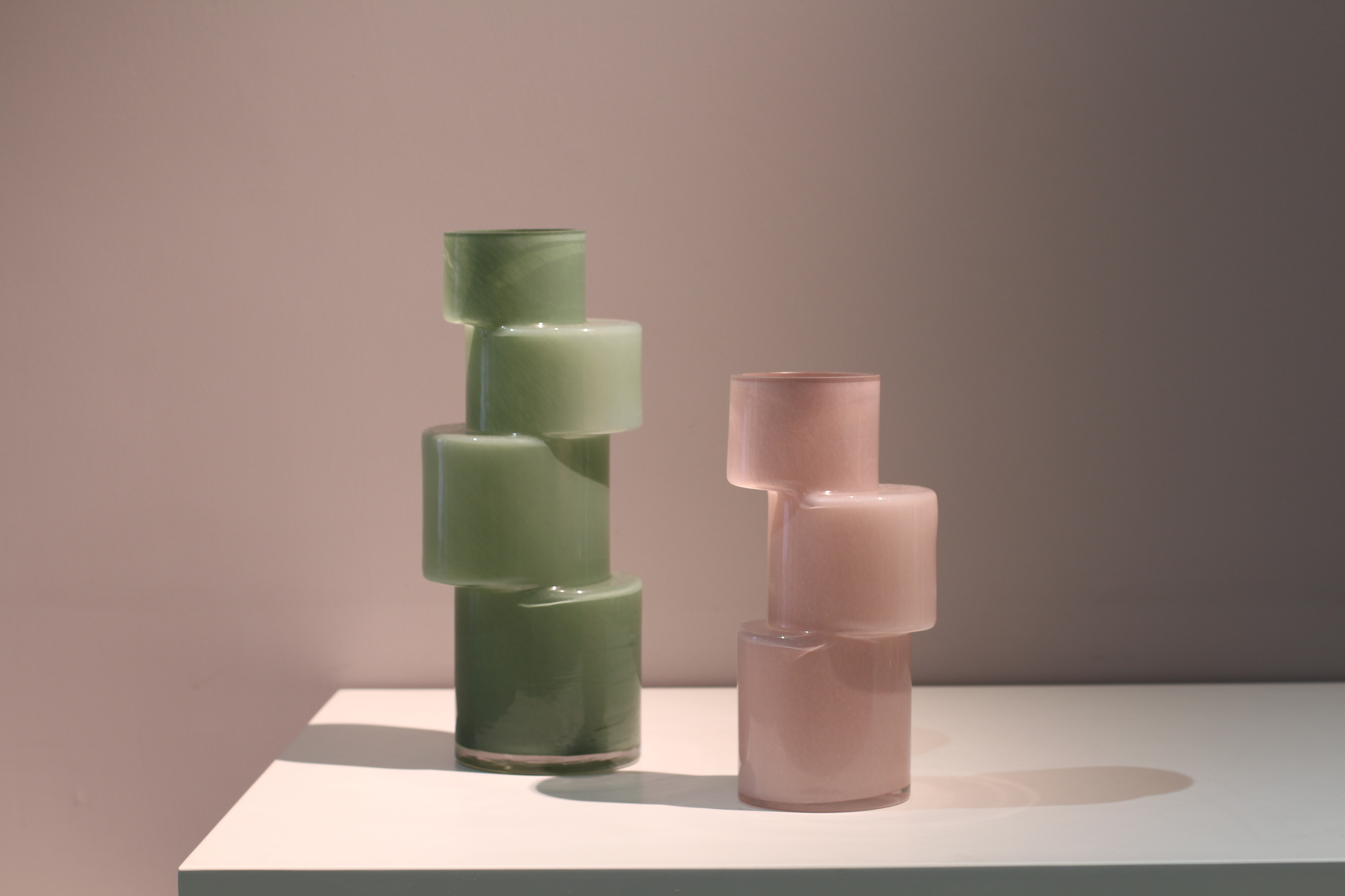北欧简约渐变绿竖纹直筒花瓶餐桌客厅软装家居水培郁金香玻璃花瓶