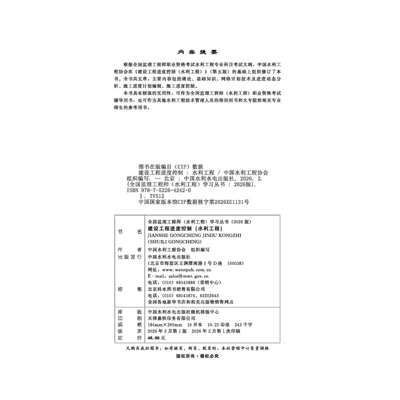 建设工程进度控制(水利工程)(全国监理工程师(水利工程)学习丛书(2026版))