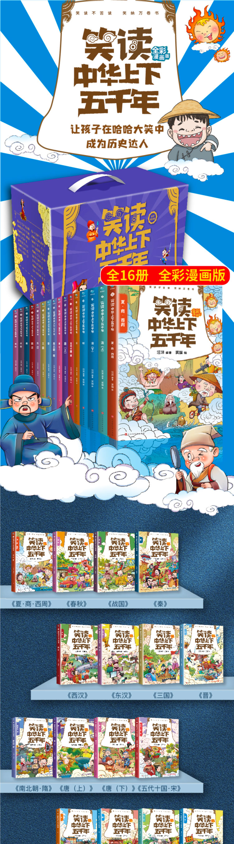 【礼盒装】笑读中华上下五千年(16册套装)全彩漫画版