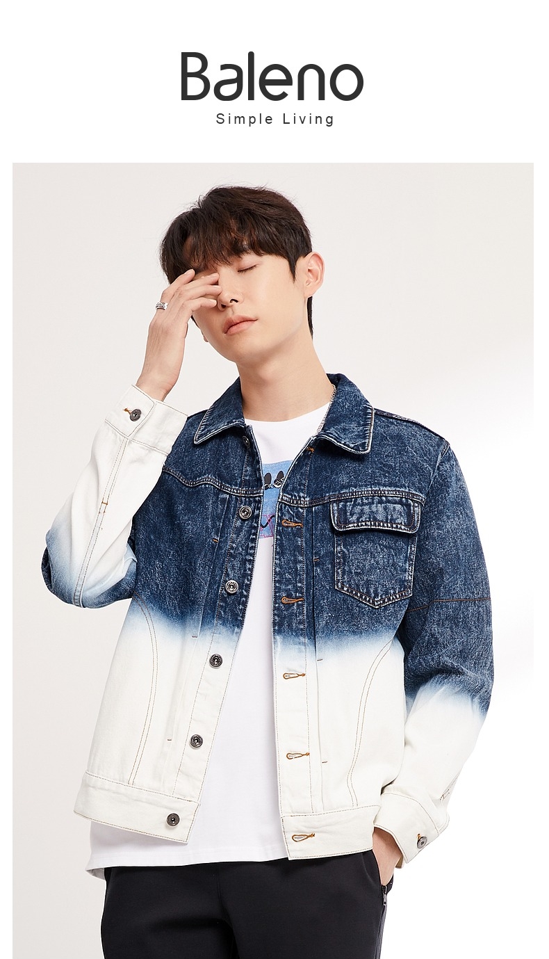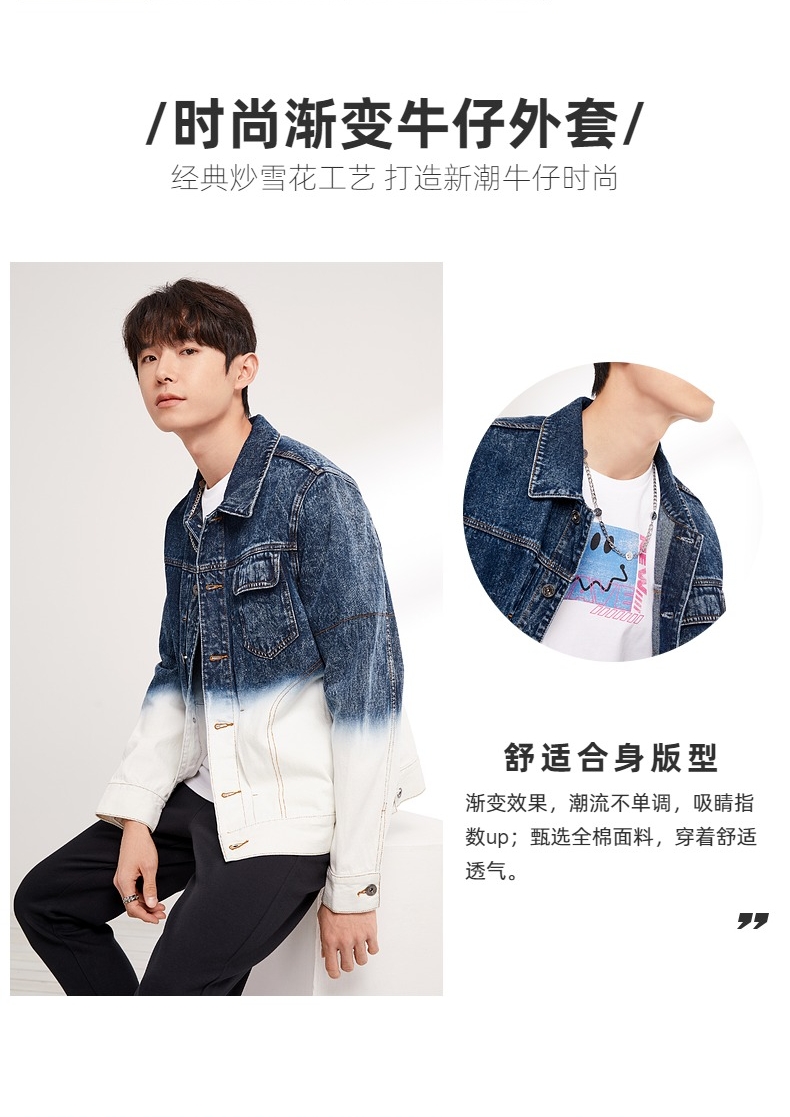 班尼路 2021年春季新款时尚渐变牛仔外套纯棉韩版休闲夹克衫
