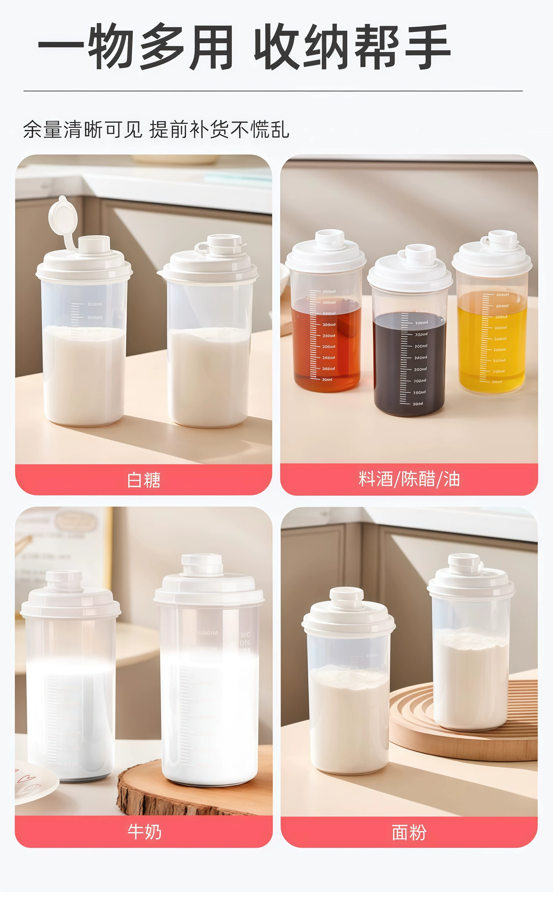 密封储存罐瓶 450ml 糖面粉米收纳瓶 厨房分装储物容器 多用途储存罐