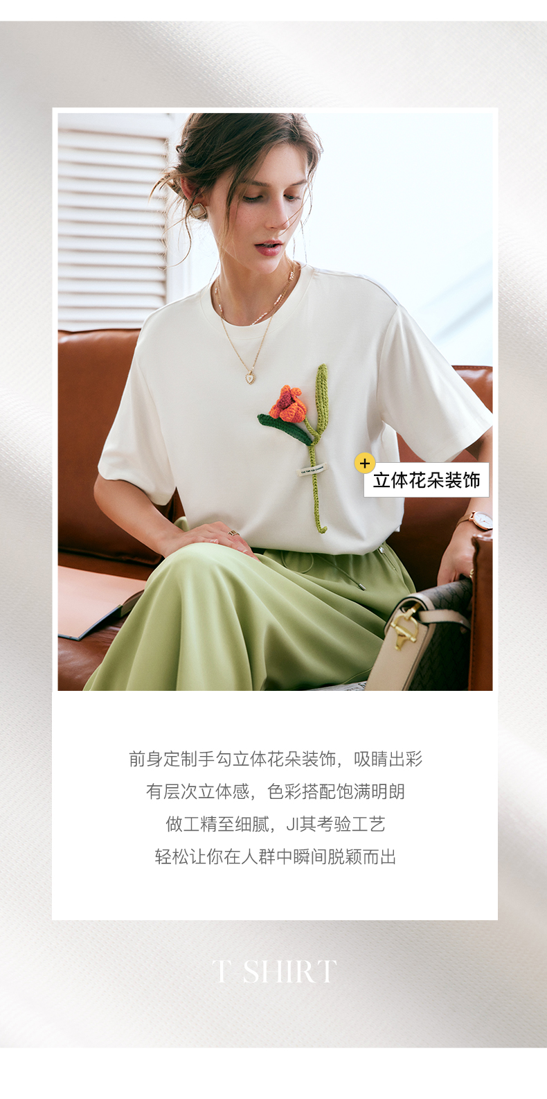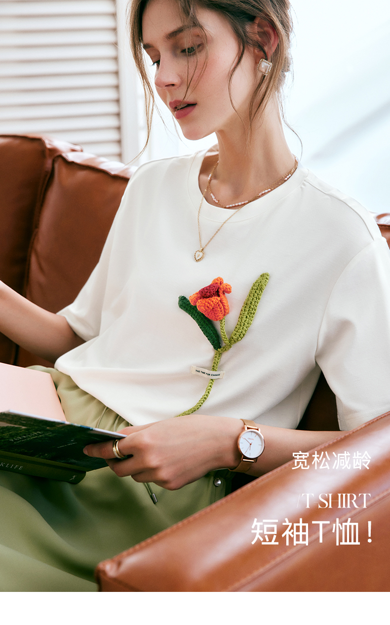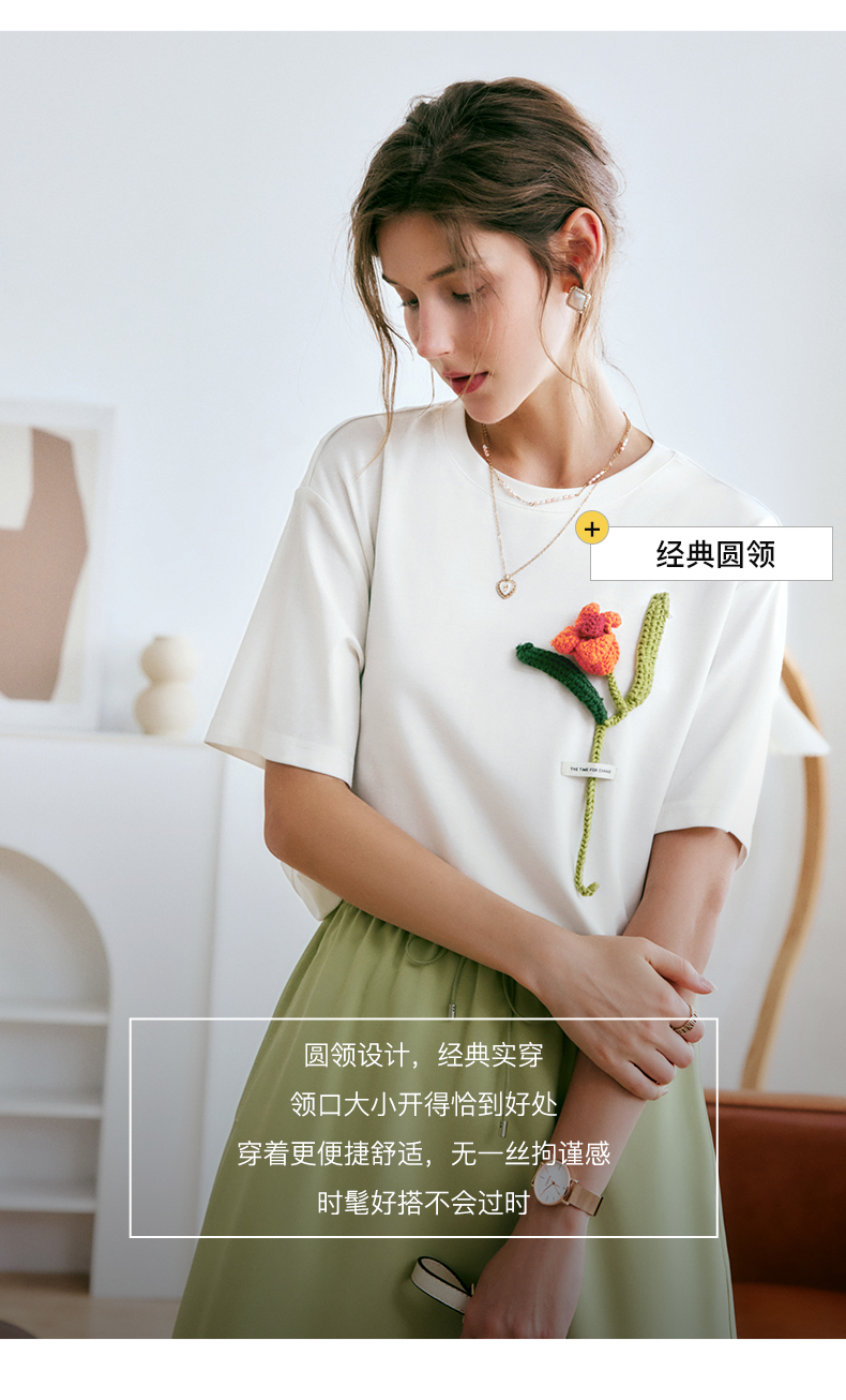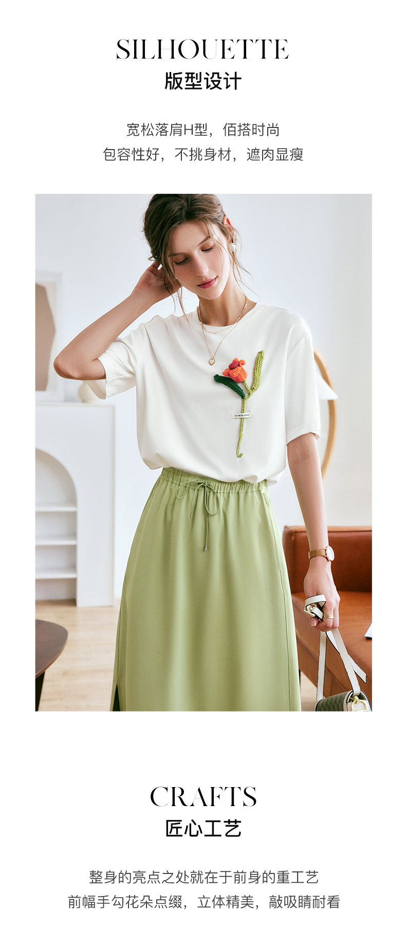 欧芮儿OLrain法式白色短袖t恤女夏季2022刺绣天丝独特别致上衣