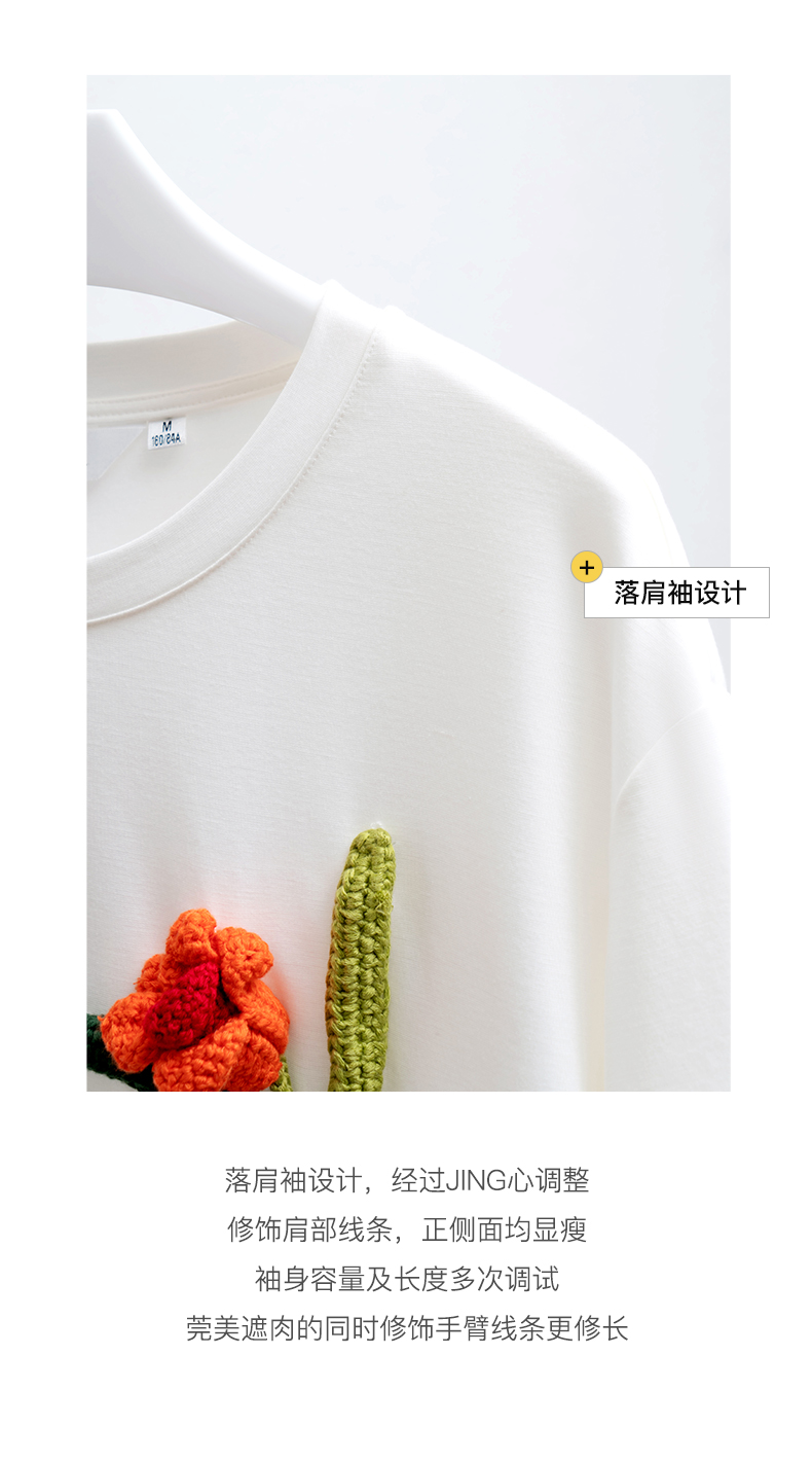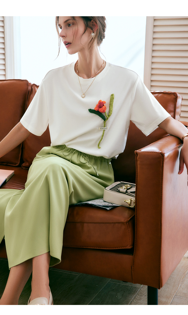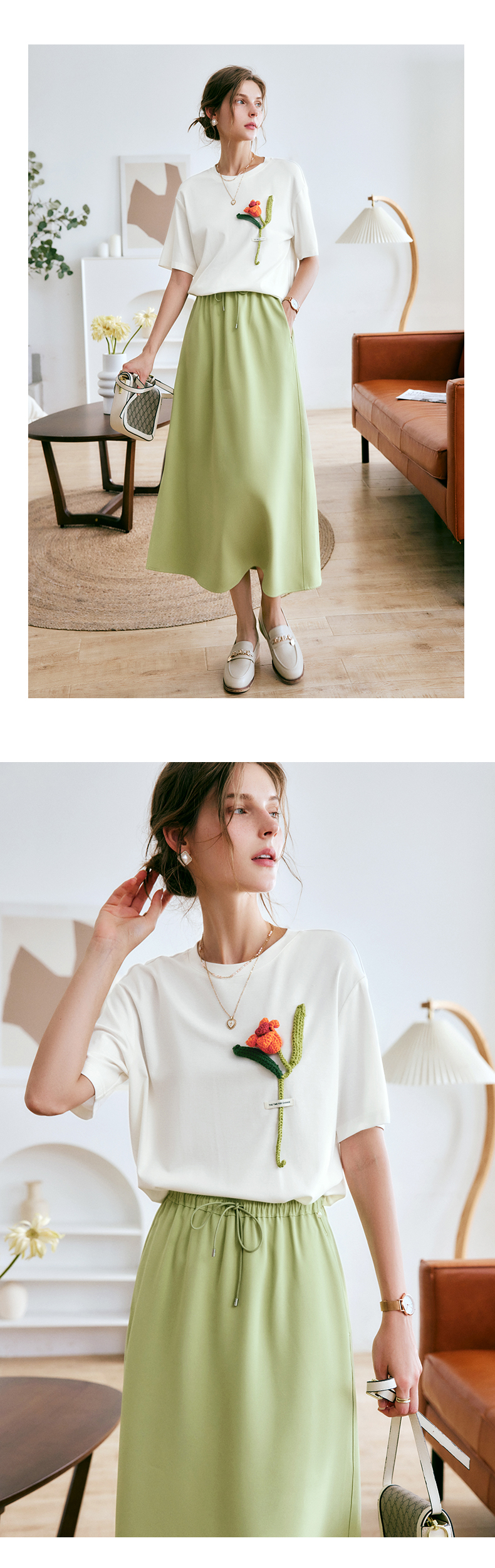欧芮儿OLrain法式白色短袖t恤女夏季2022刺绣天丝独特别致上衣