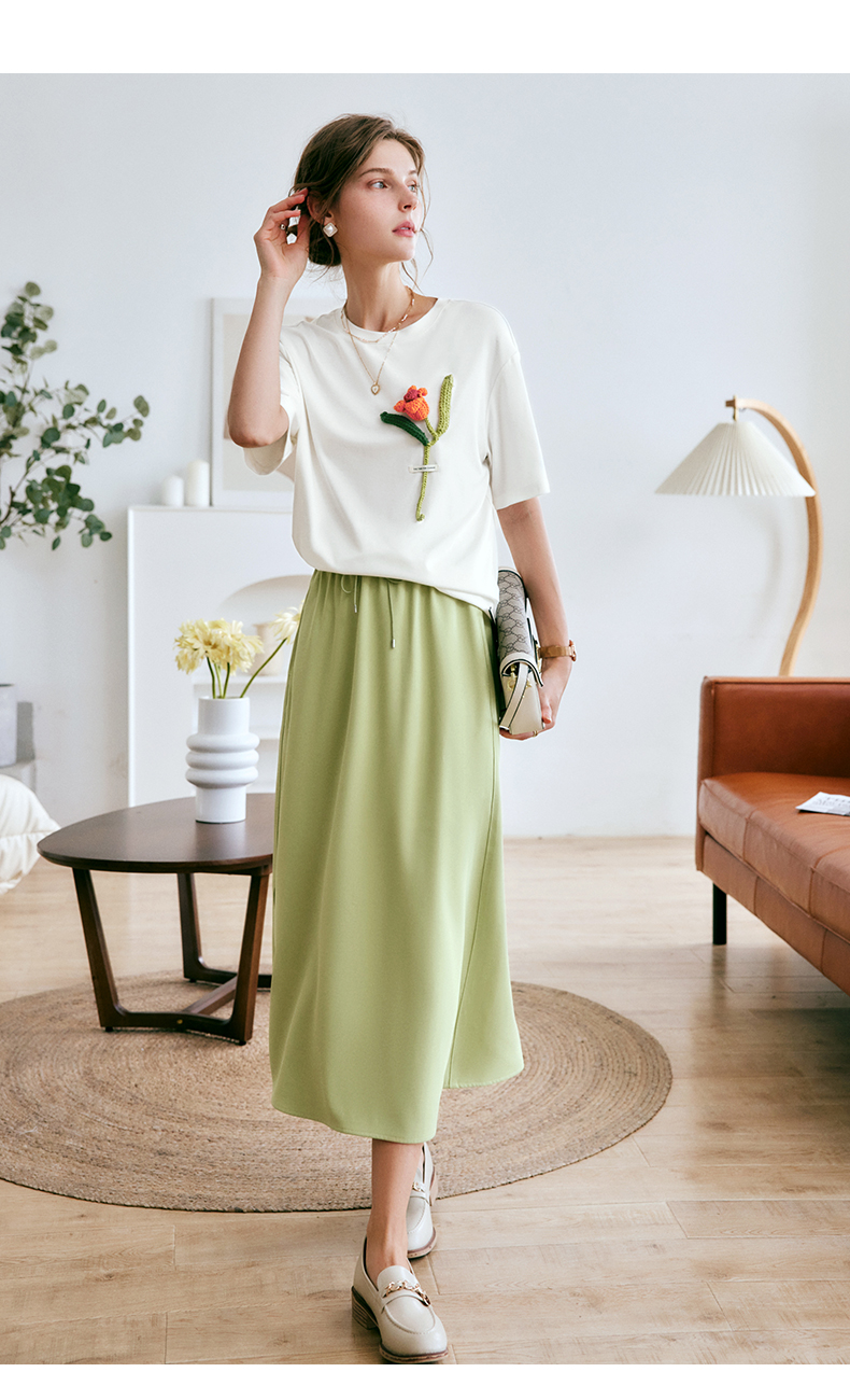 欧芮儿绿色时尚套装女2021夏新款碎花半身裙子法式洋气减龄两件套
