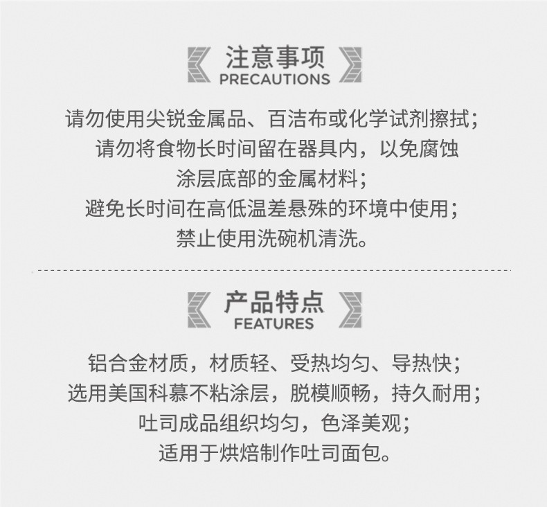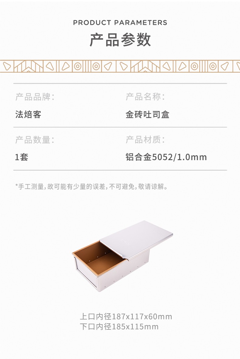FB20100 法焙客 金砖吐司盒 吐司模具带盖 不粘金砖吐司盒面包模