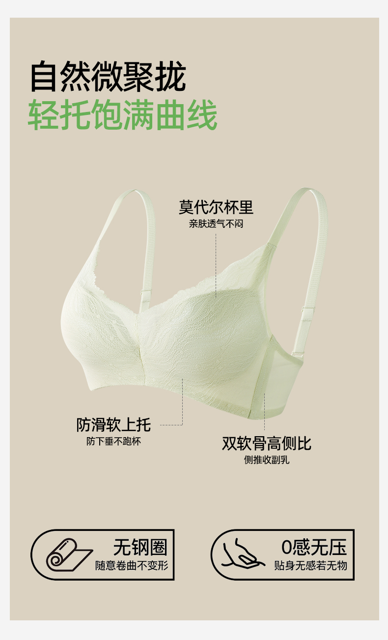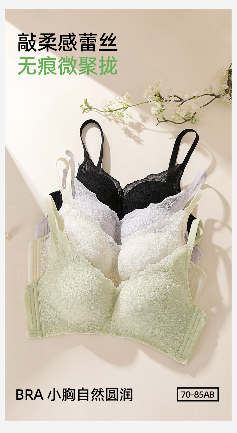 熳洁儿 小胸聚拢文胸法式波浪蕾丝无钢圈舒适莫代尔杯25761502