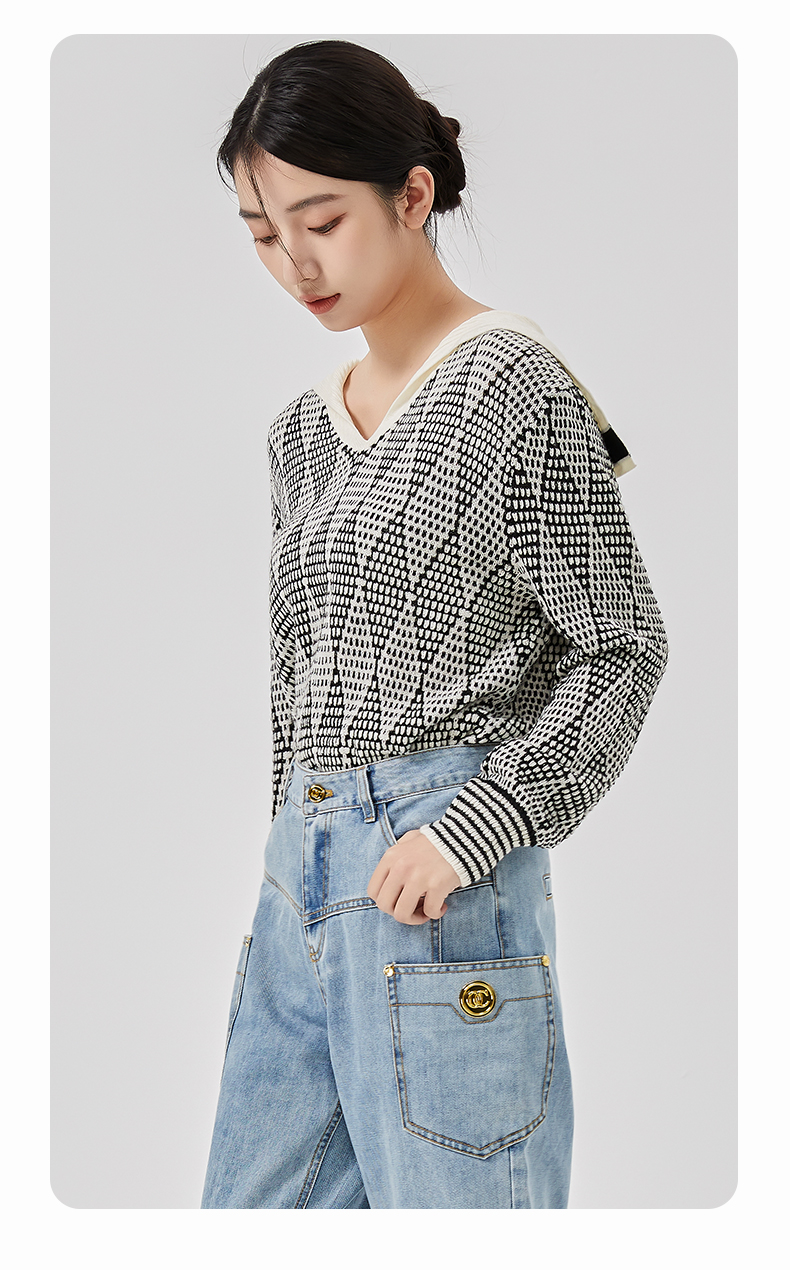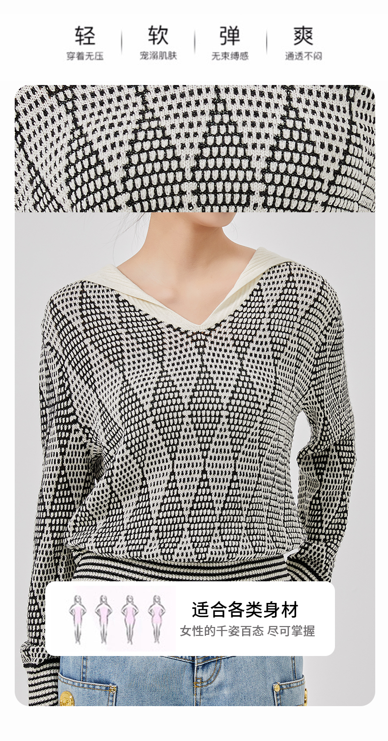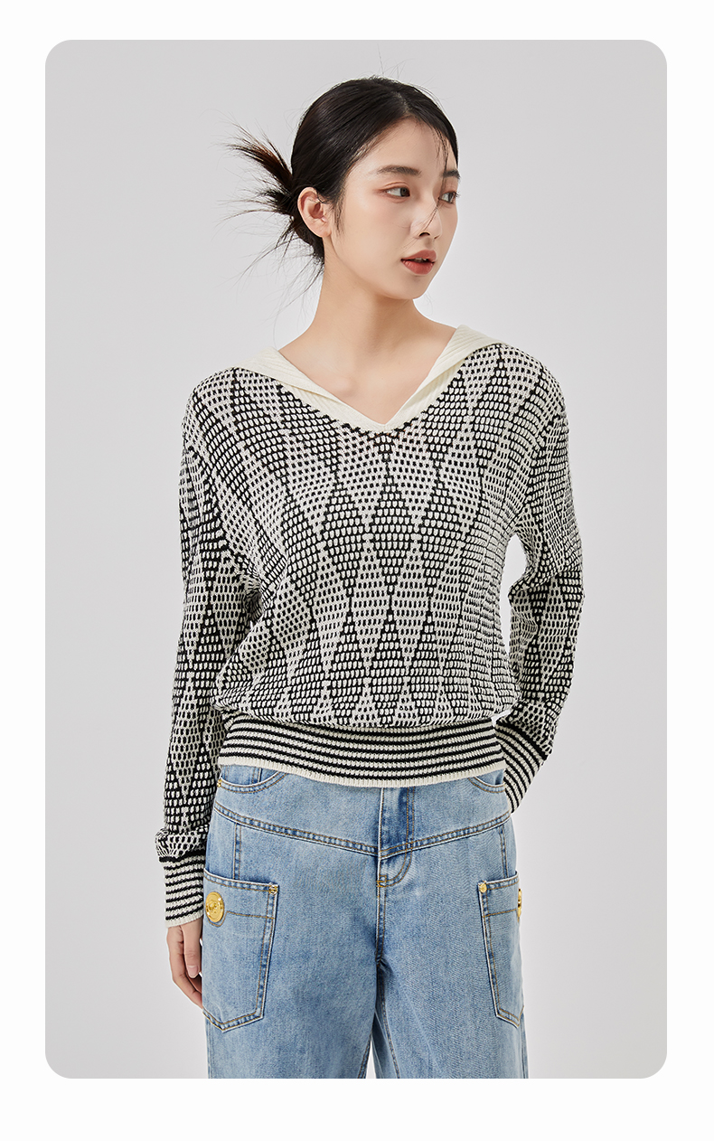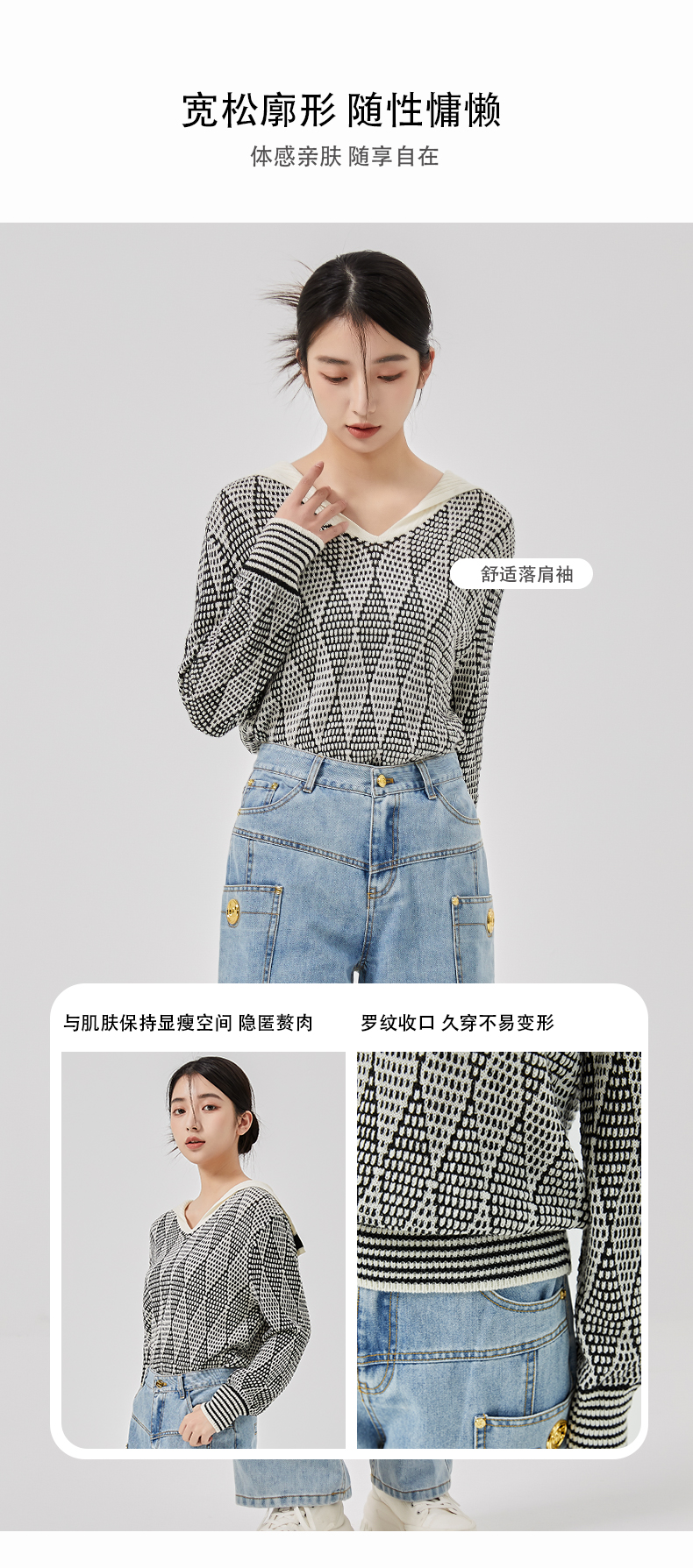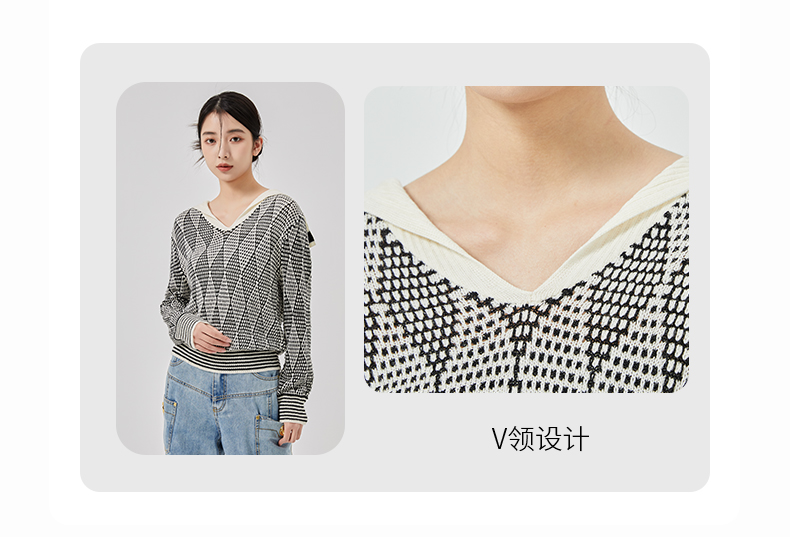 oldcolour2023春季新款时尚气质菱格修身百搭套头针织衫O11052118