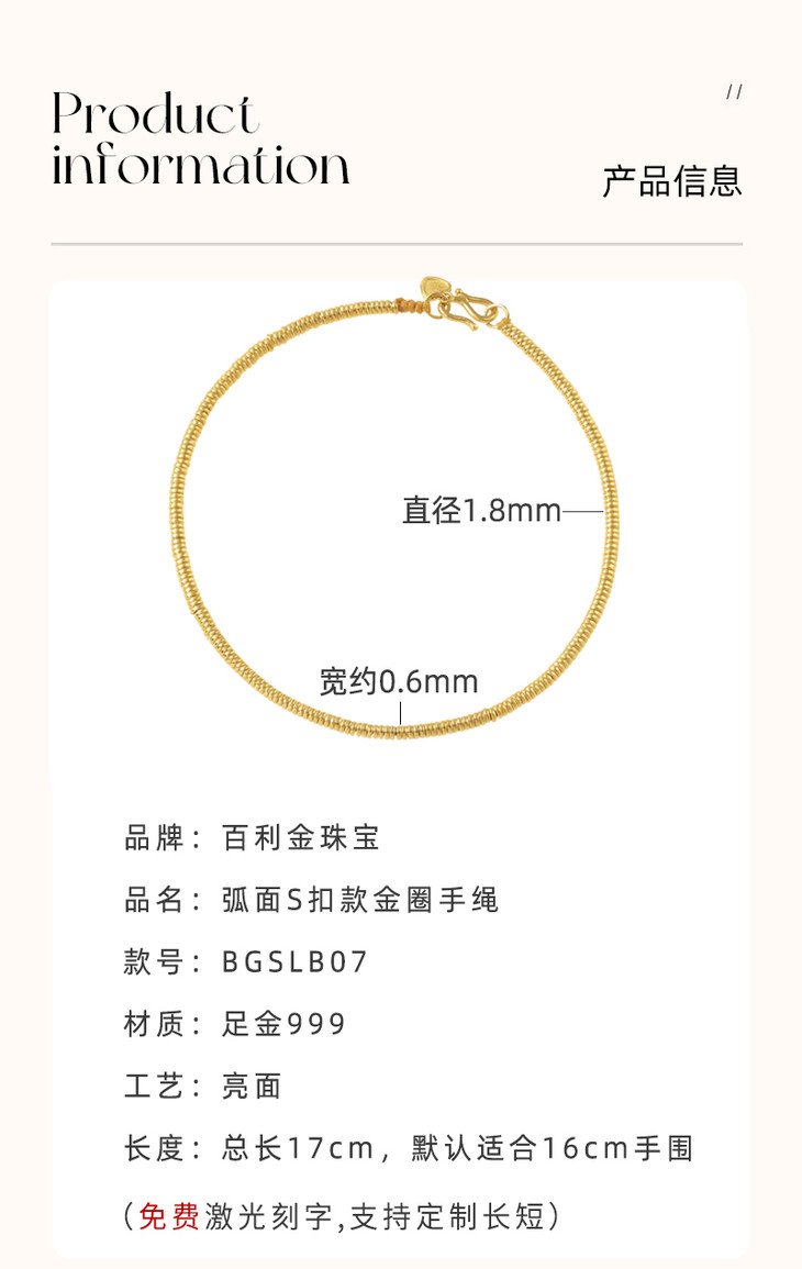 百利金-祈福金圈S扣款手链 5.28g
