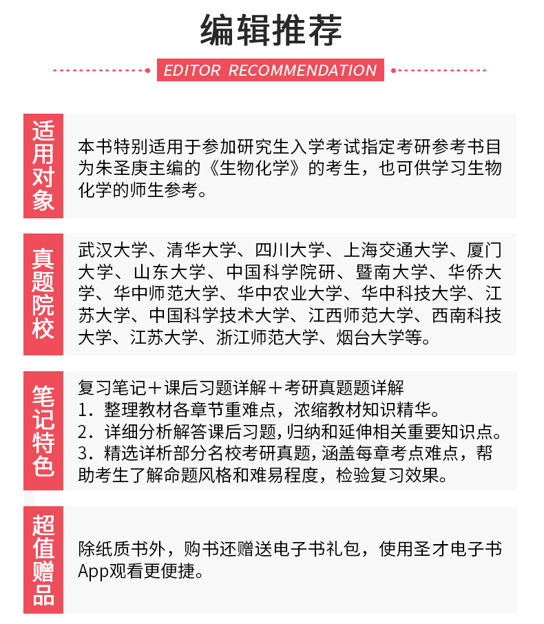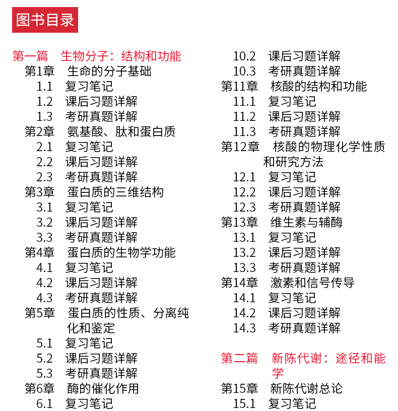 本书是经典教材《生物化学》(第4版)(朱圣庚、徐长法主编,高等教育出版社)的学习辅导书。本书遵循教材的章目编排,共分为三篇36章(上册为第一篇,包括第1~14章;下册为第二、三篇,包括第15~36章),每章均由三部分组成:第一部分为复习笔记,总结本章的重难点内容;第二部分为课后习题详解,对第4版的课后习题进行详细的分析和解答;第三部分为考研真题和典型题详解,精选名校近年的考研真题,并提供详细的解答。