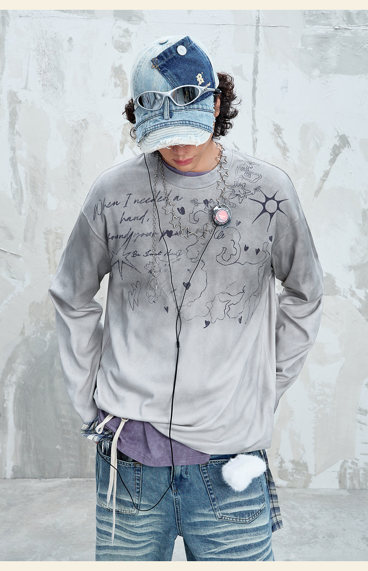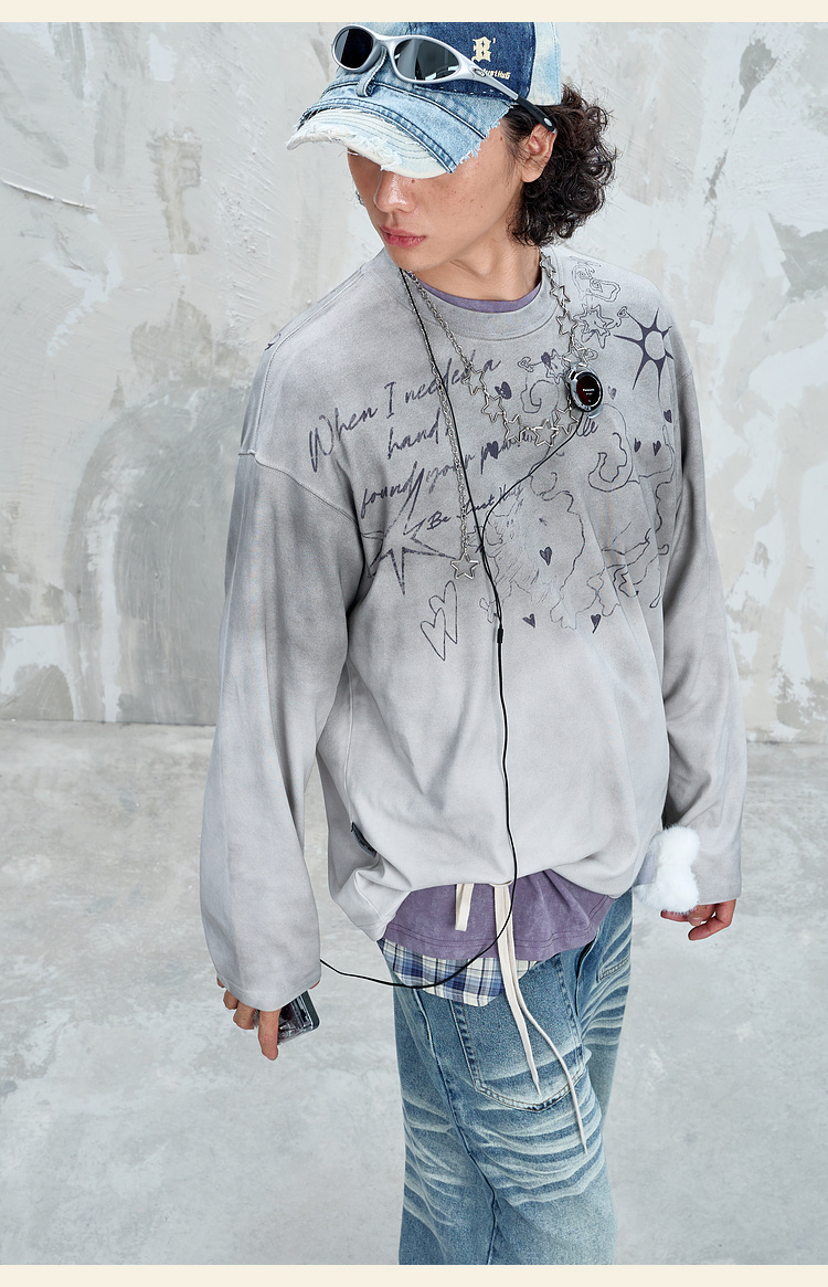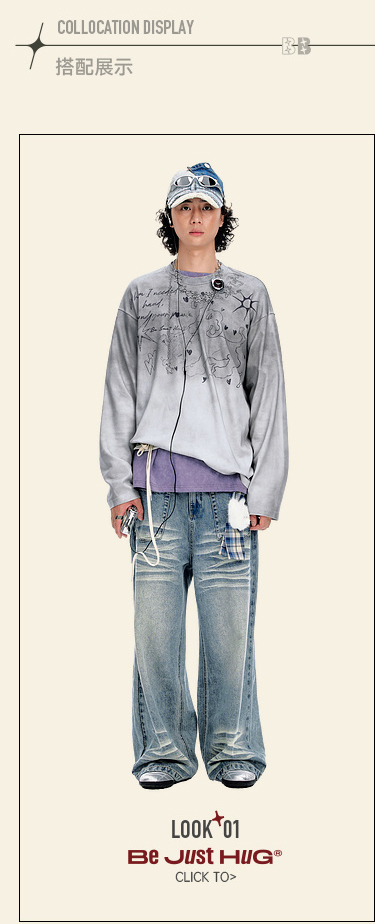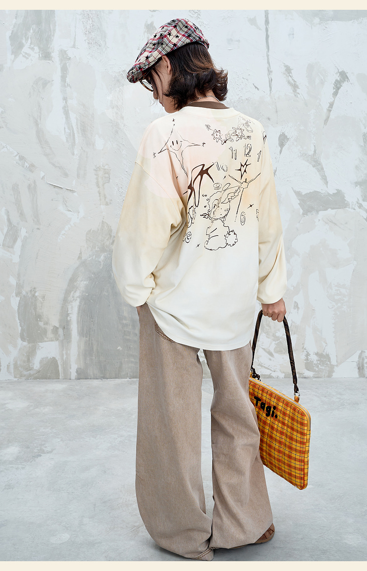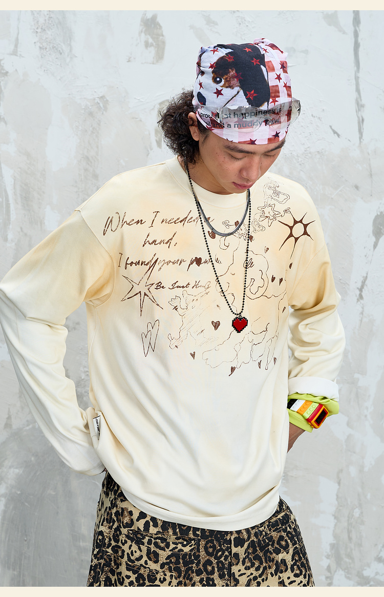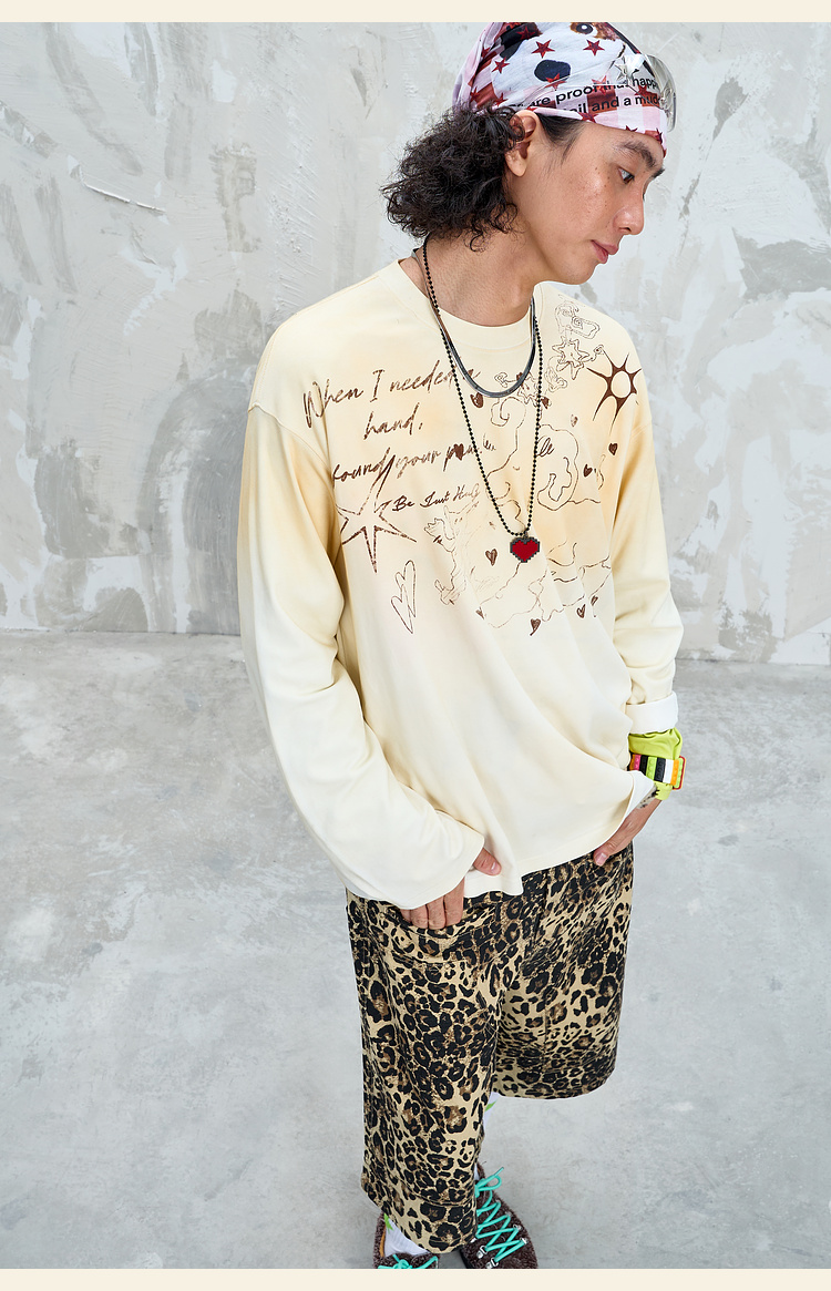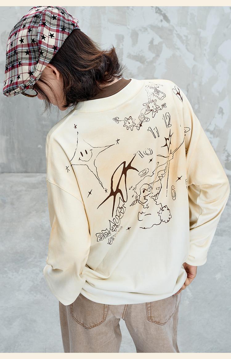 BJHG不计后果趣味渐变长袖t恤男款秋季2025新款美式复古高级感T恤