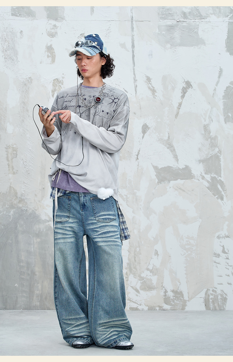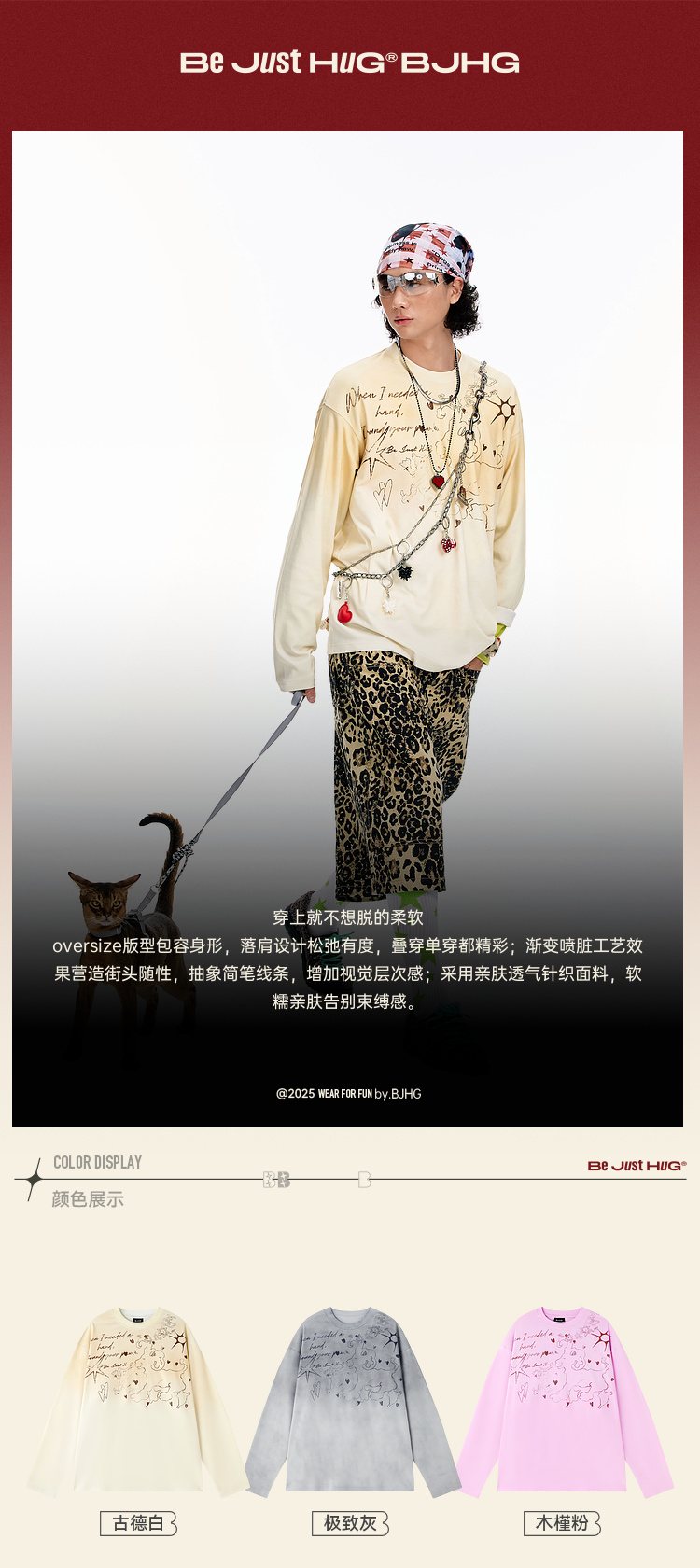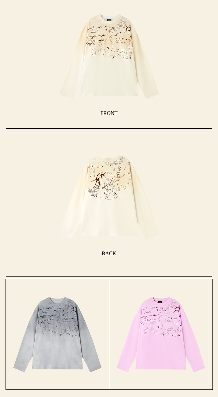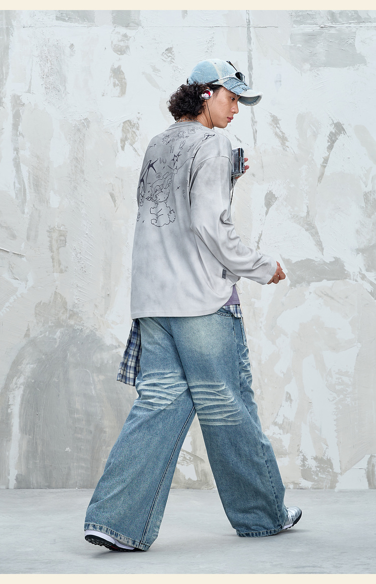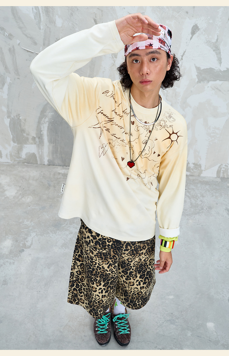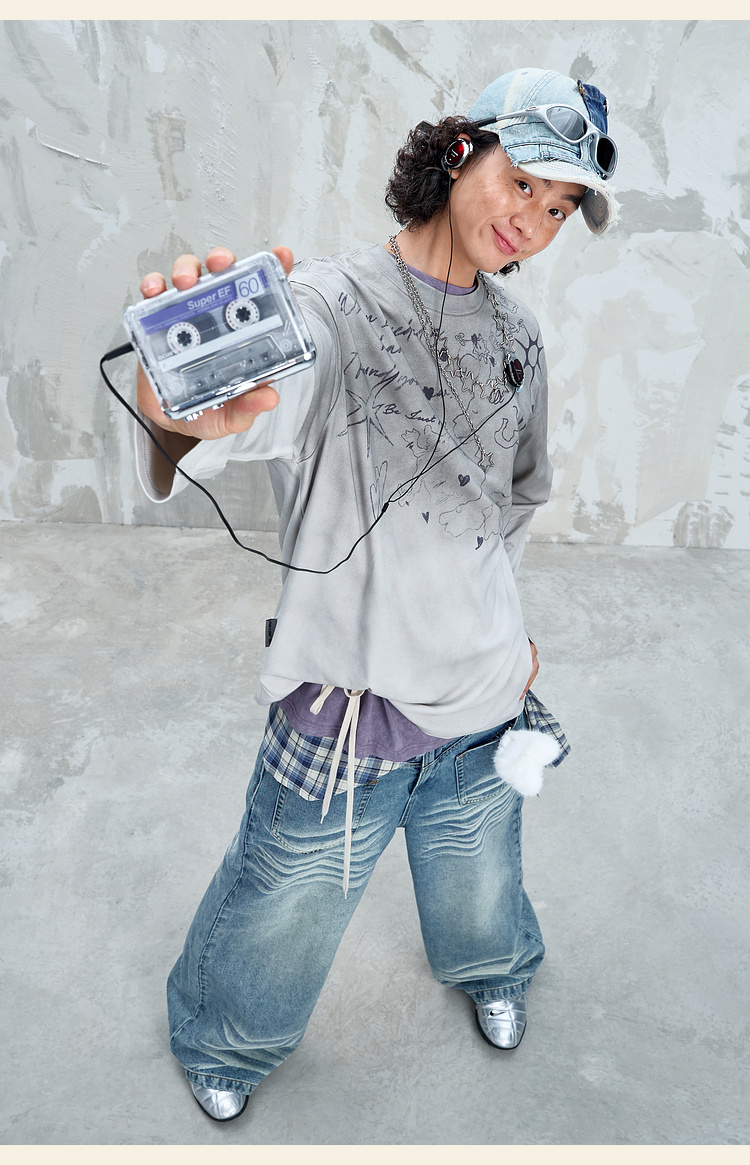 BJHG不计后果趣味渐变长袖t恤男款秋季2025新款美式复古高级感T恤