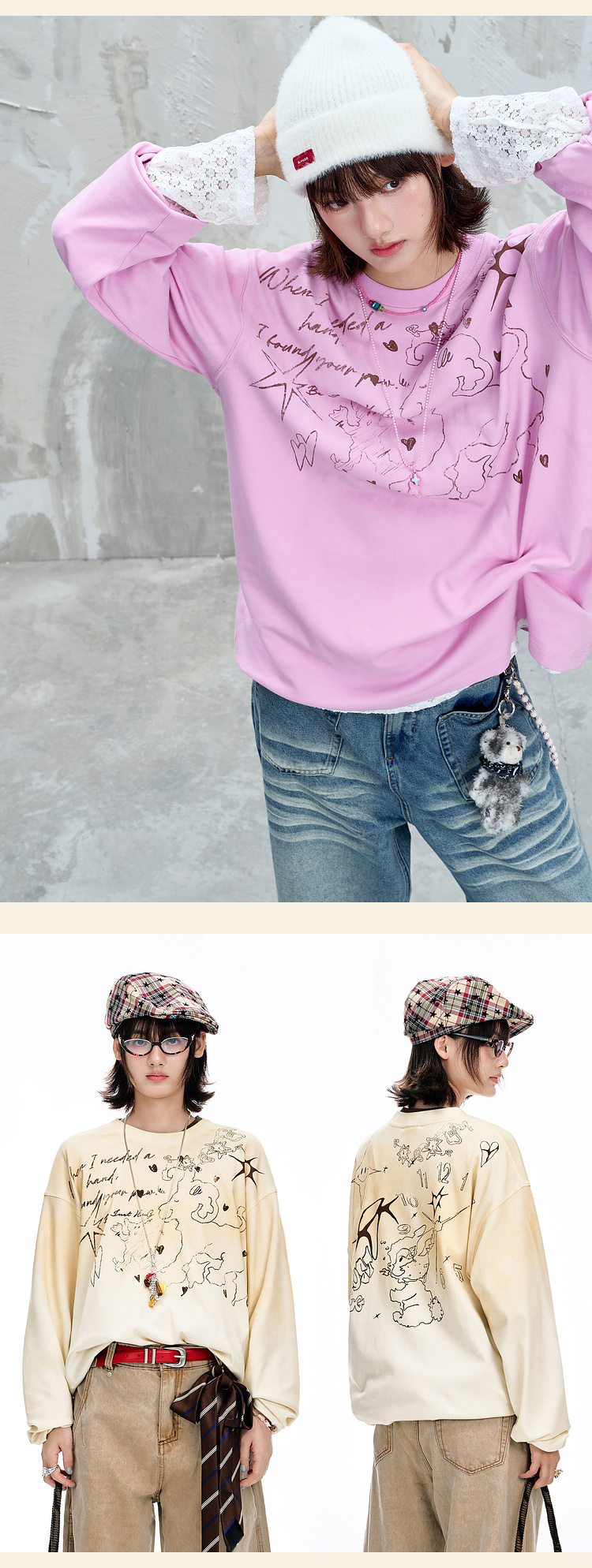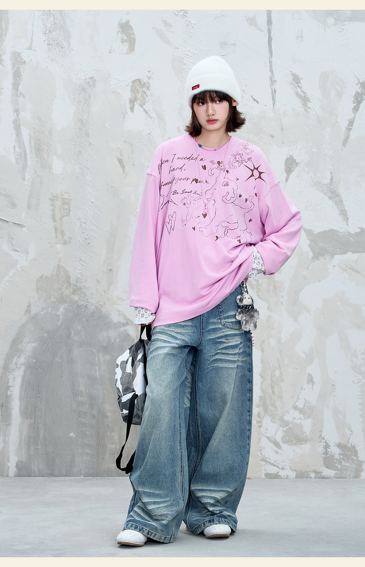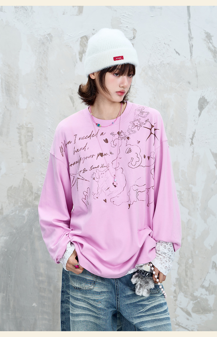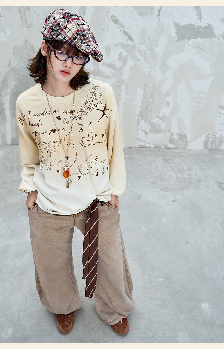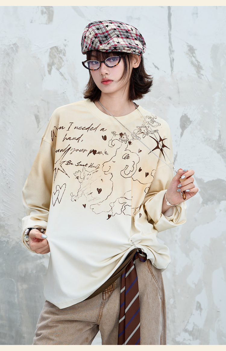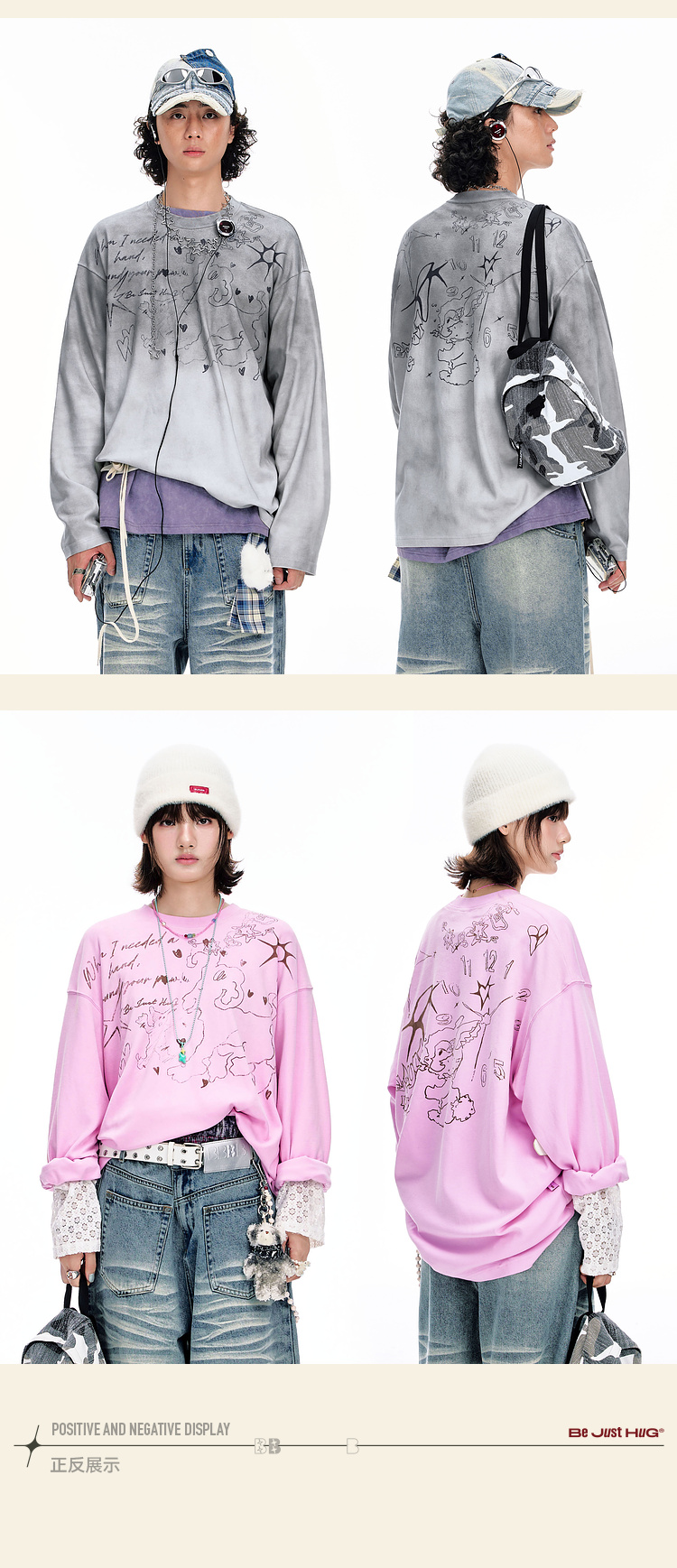 BJHG不计后果趣味渐变长袖t恤男款秋季2025新款美式复古高级感T恤