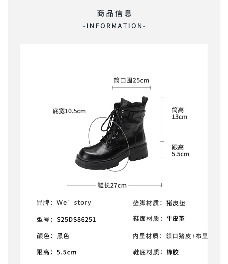 Westory2025年冬季厚底牛皮马丁靴甜酷休闲百搭短靴S25DS86251