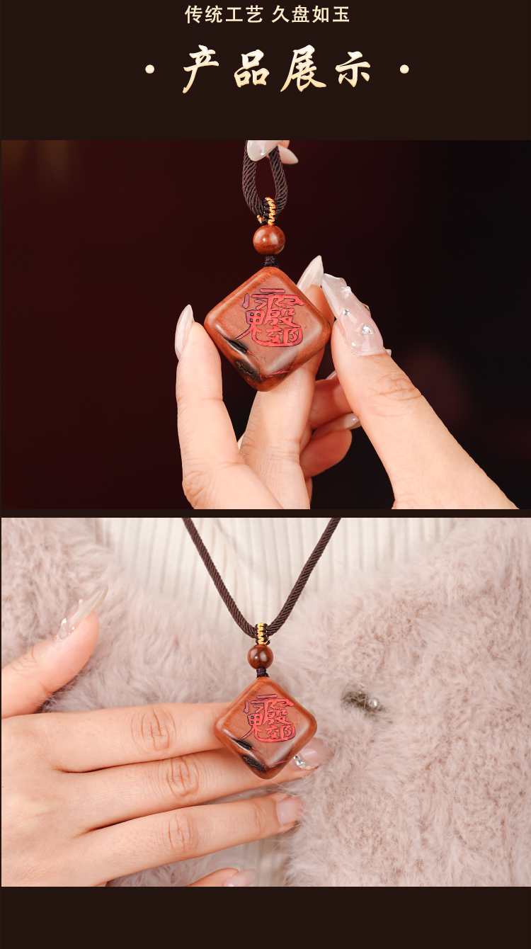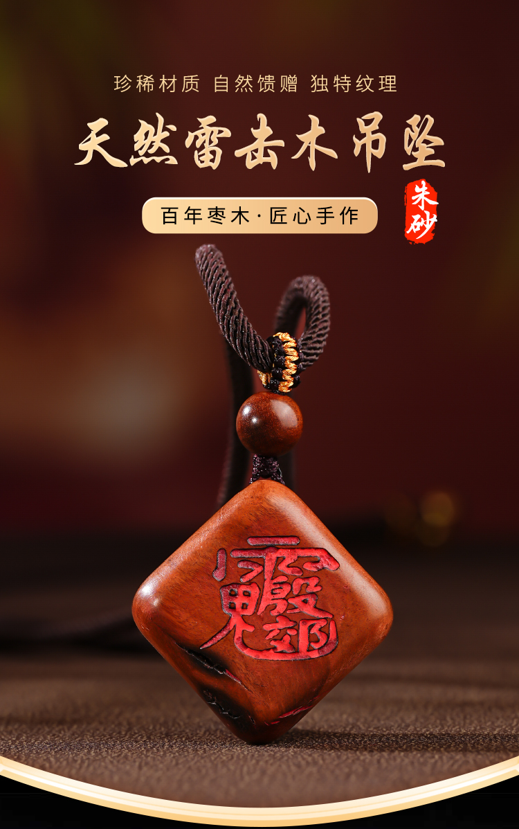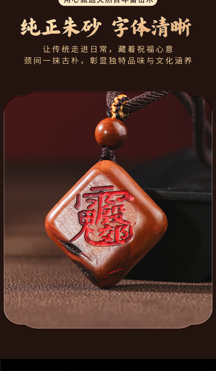 雷击木吊坠本ming年文昌雷祖赵公明金光朱砂讳字荣光吊坠