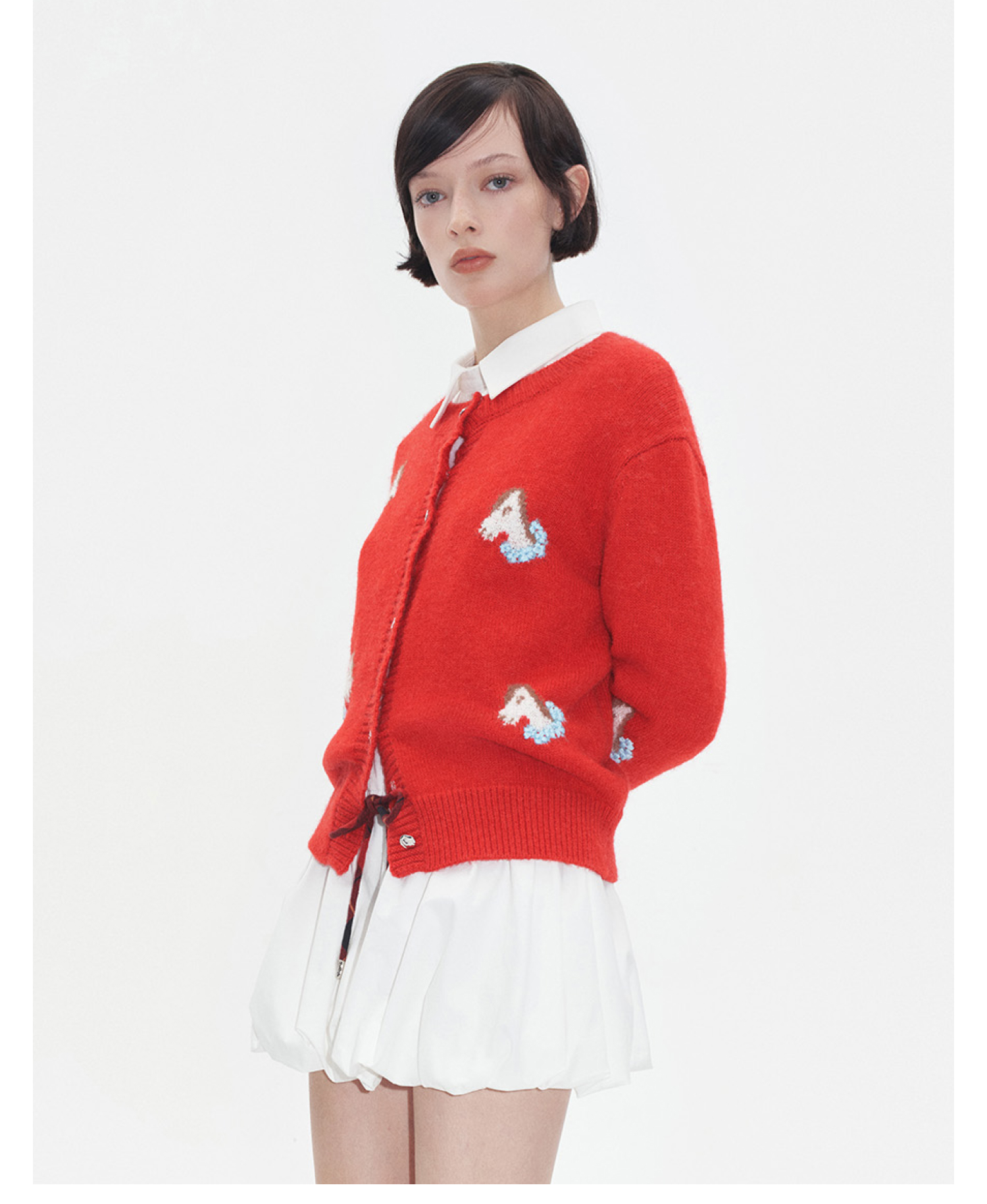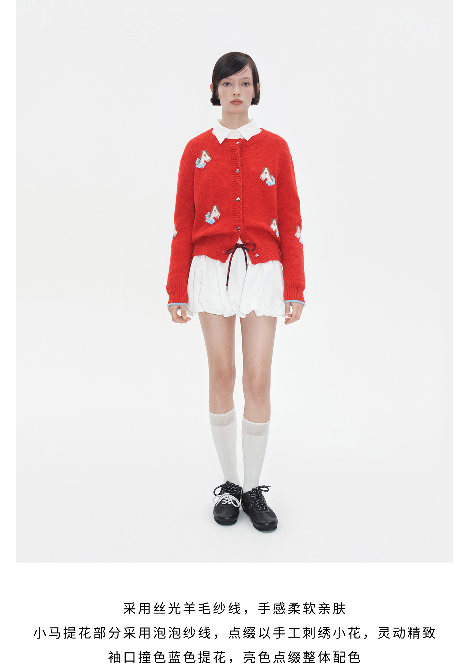 Herlian2025冬季新品立体小马提花毛织开衫女士