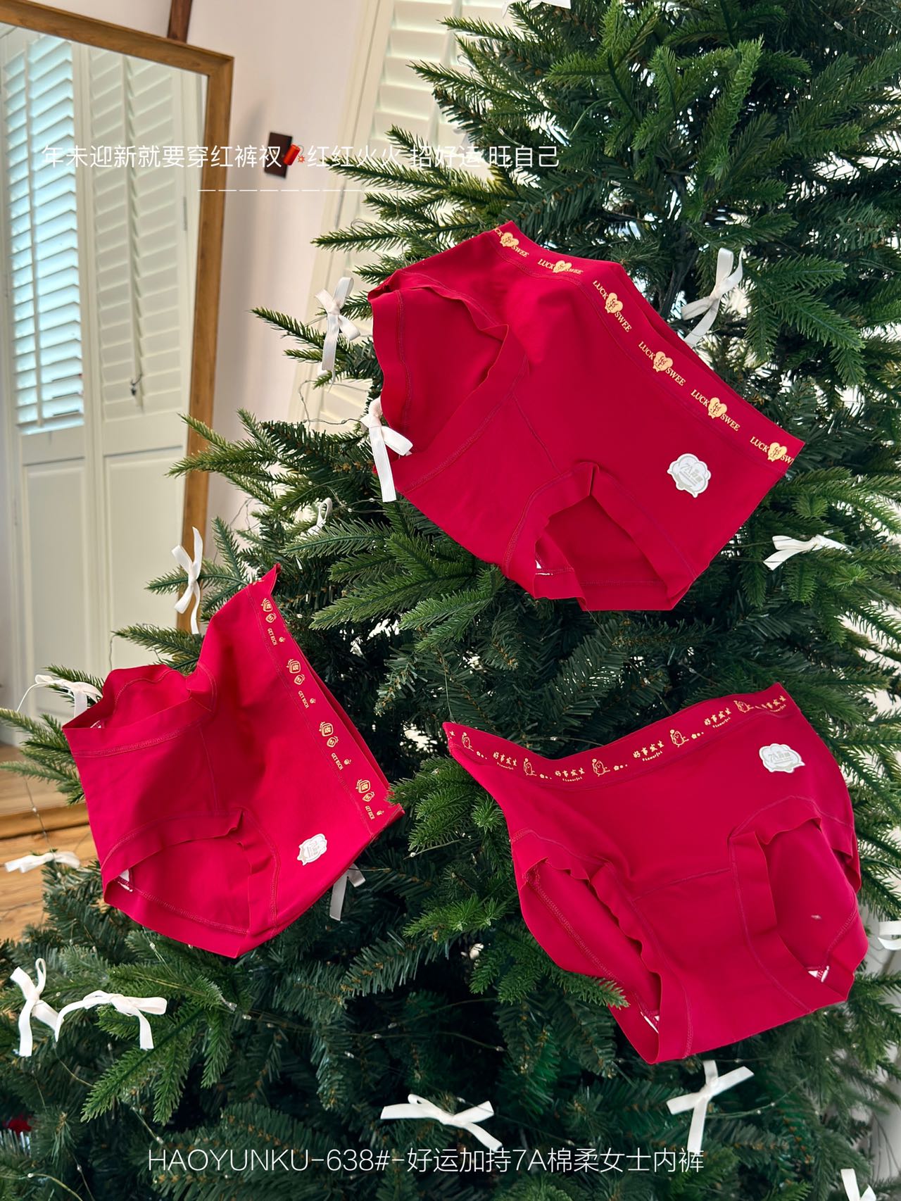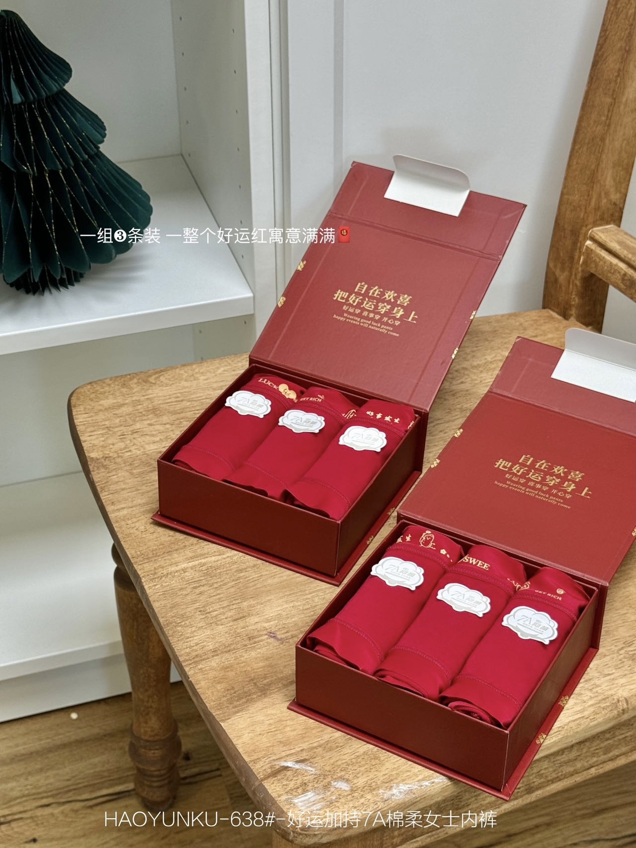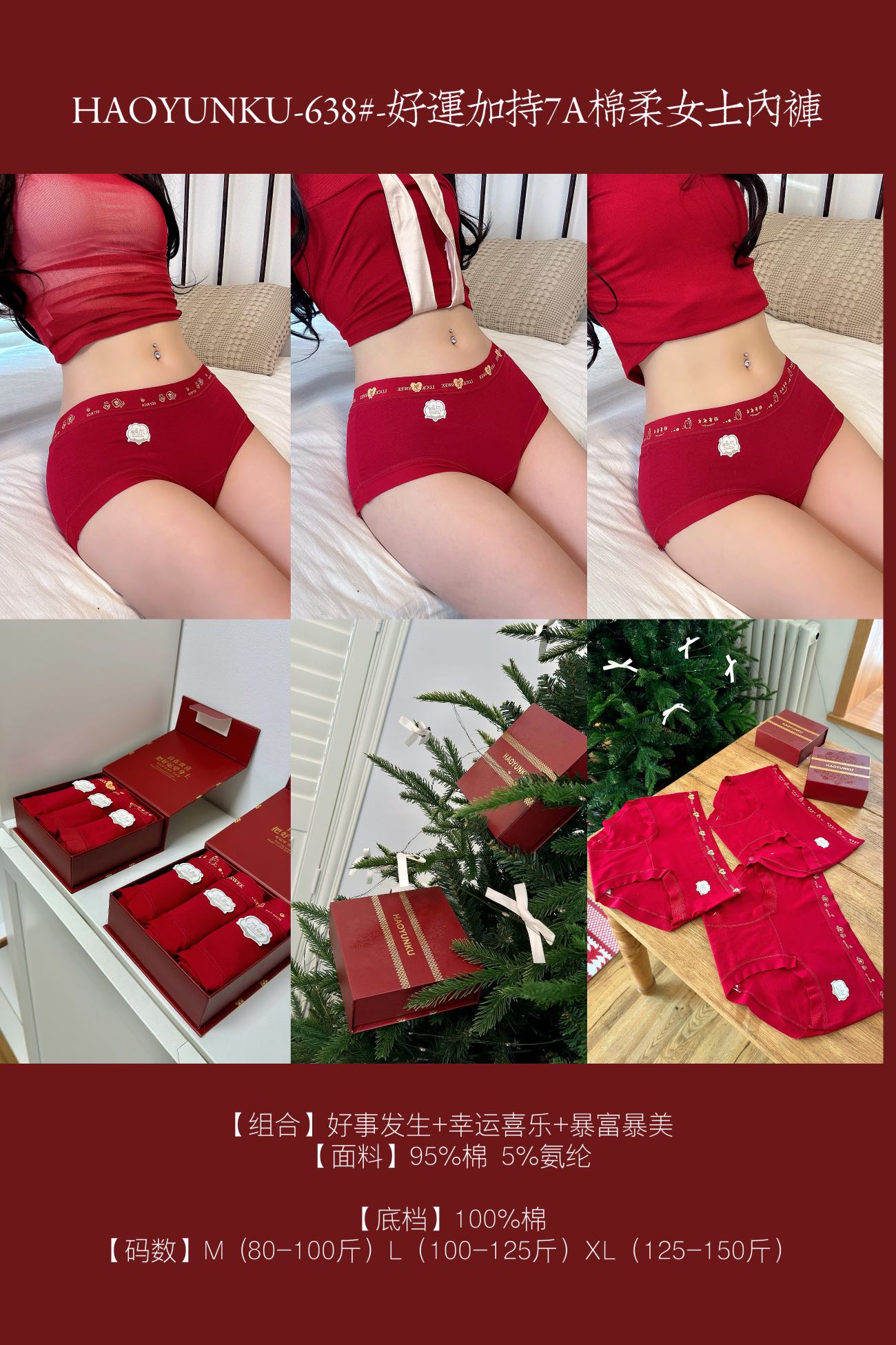 好运加持7A棉柔女士红色内裤3条装638#
