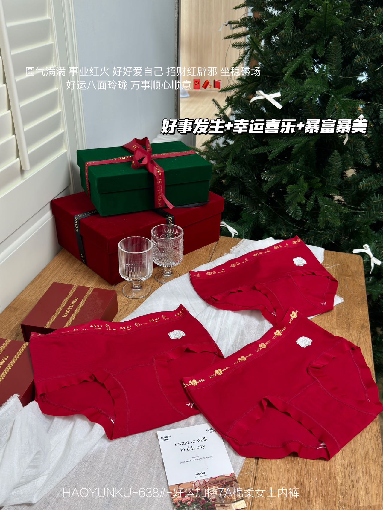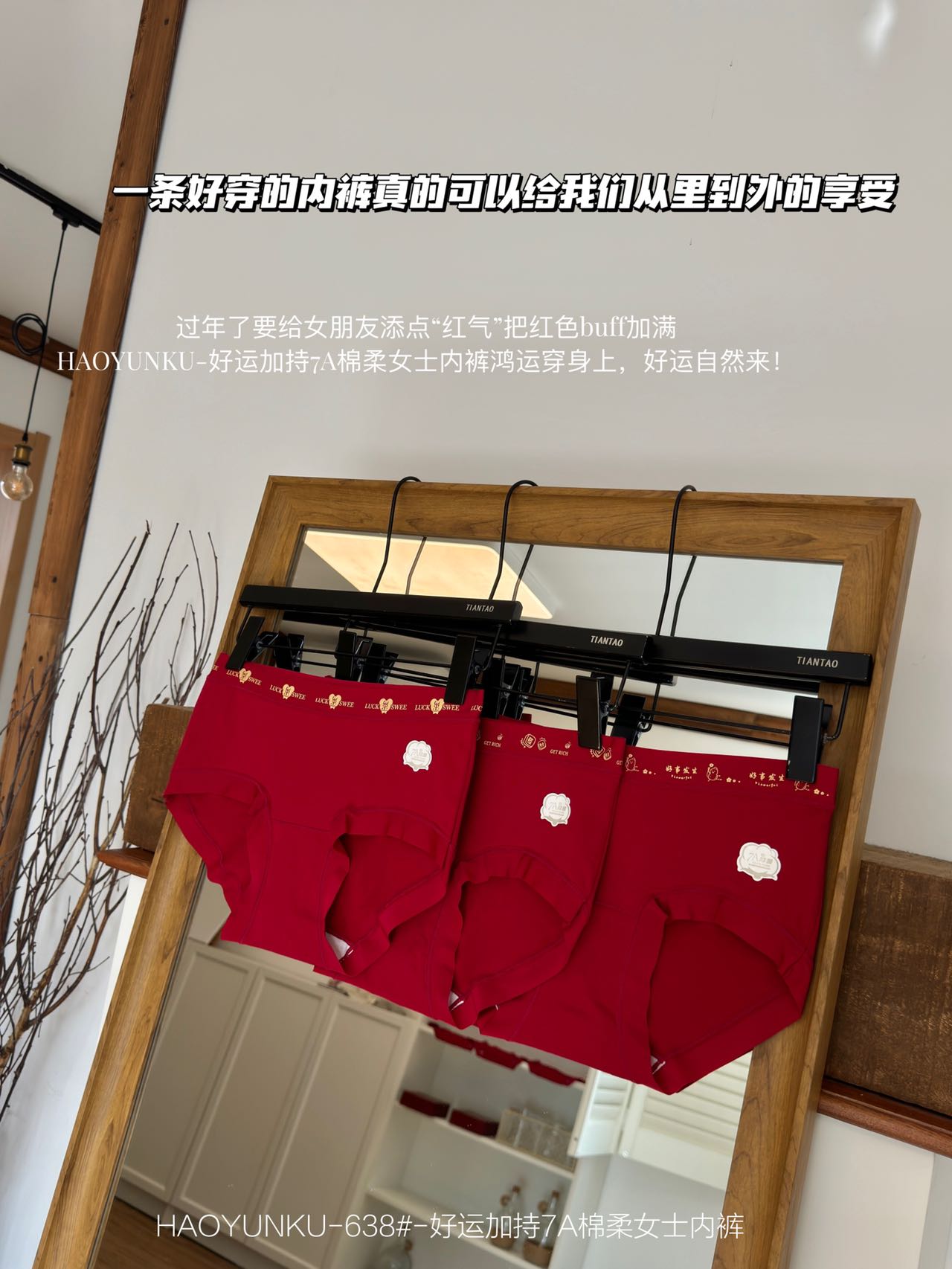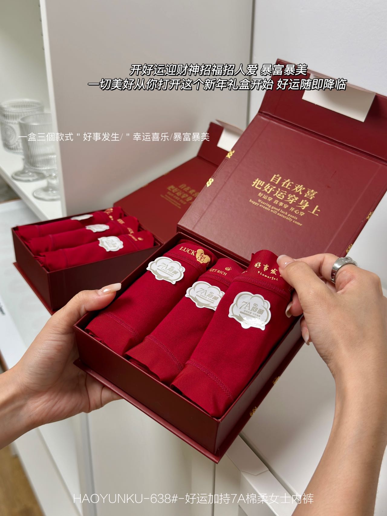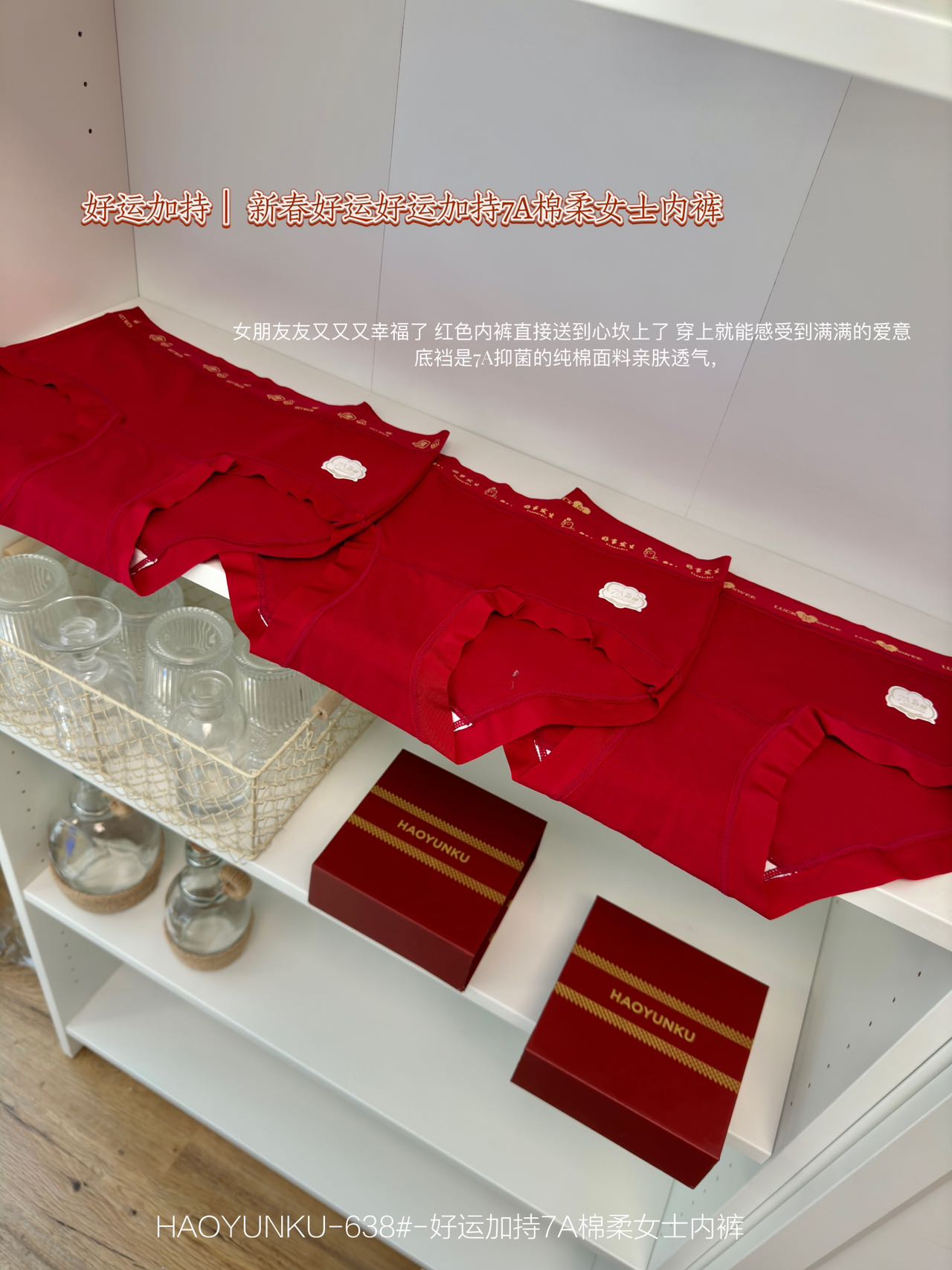 好运加持7A棉柔女士红色内裤3条装638#