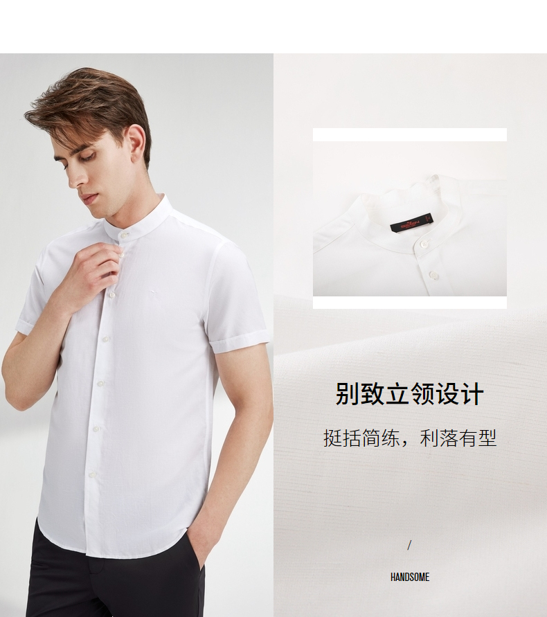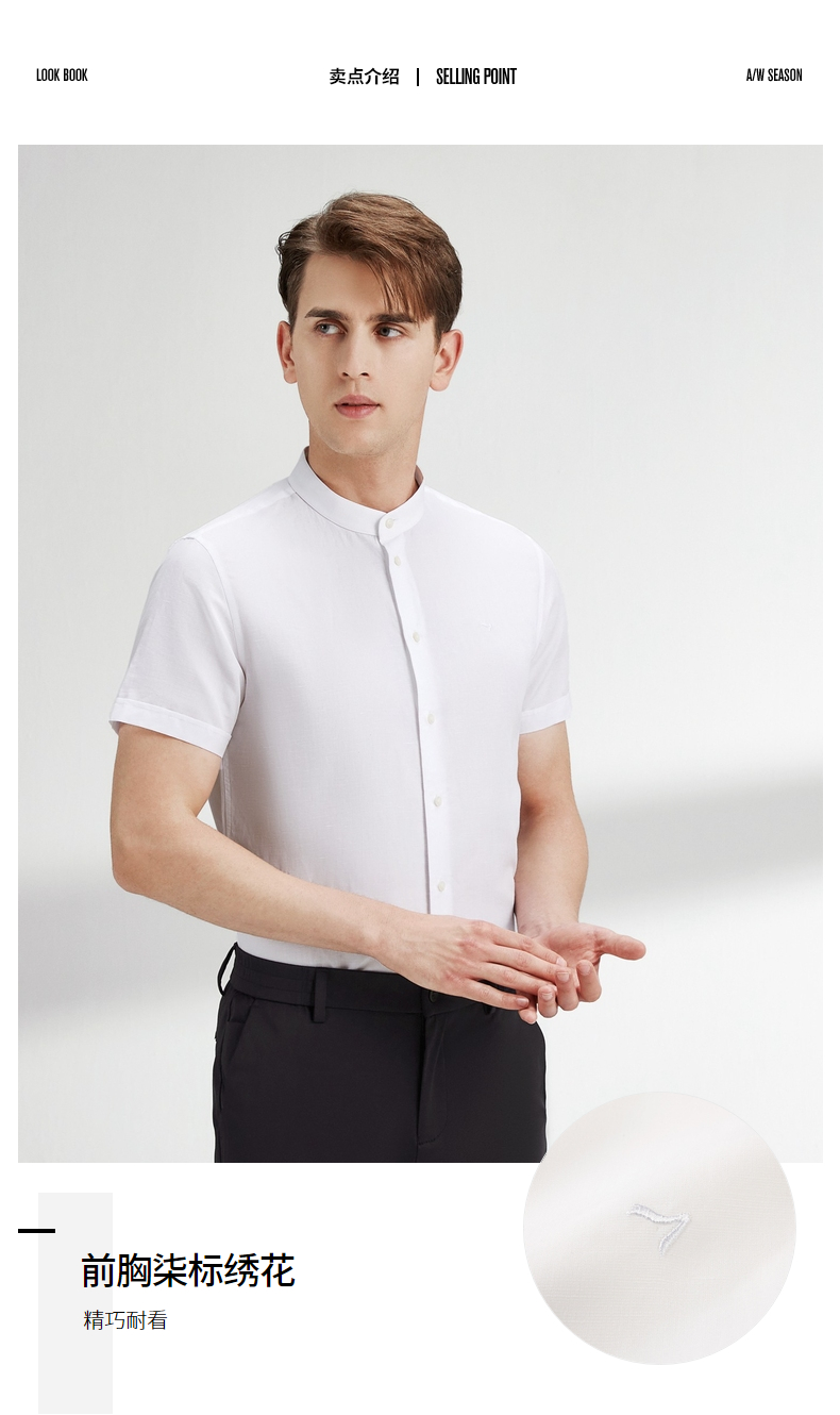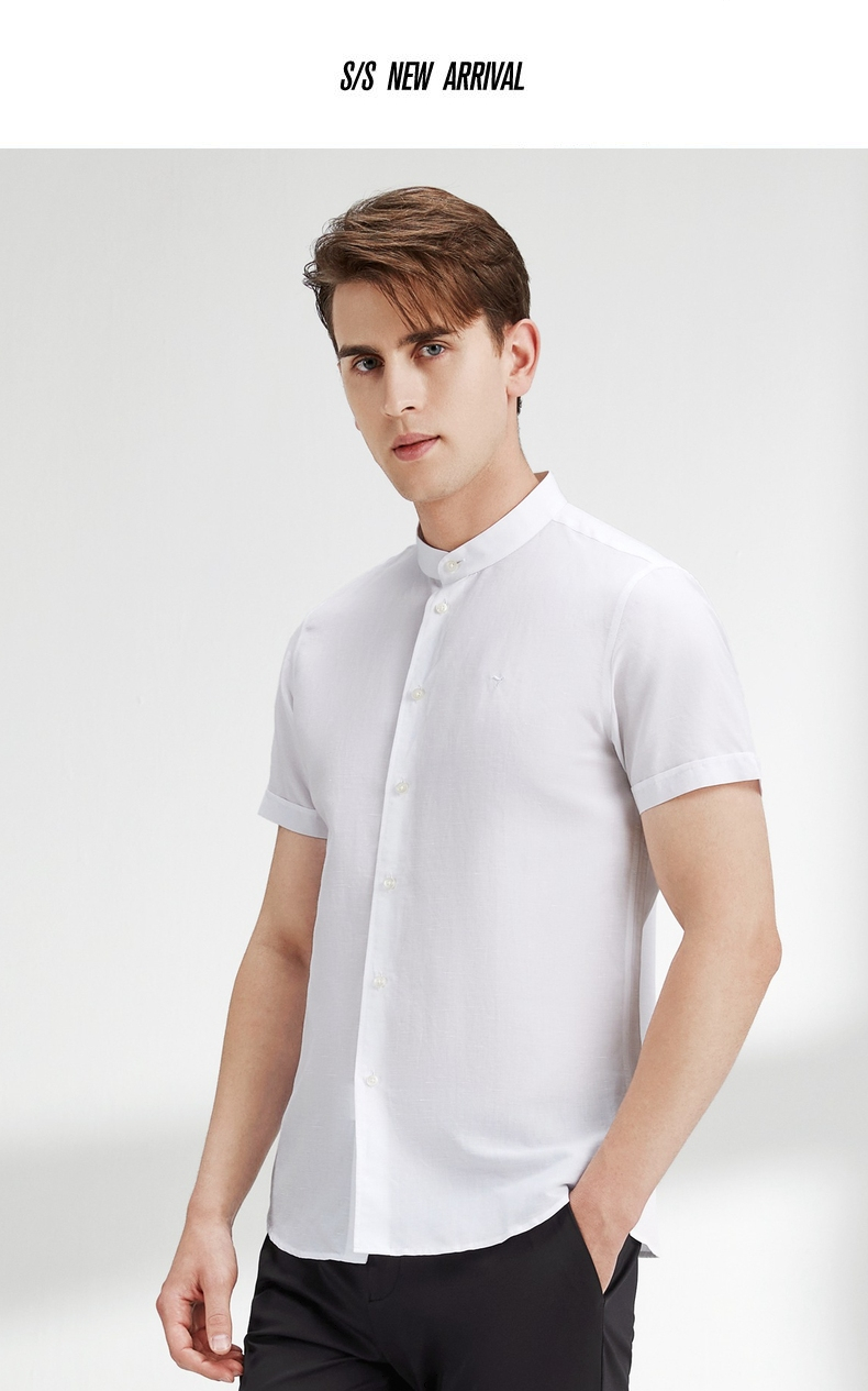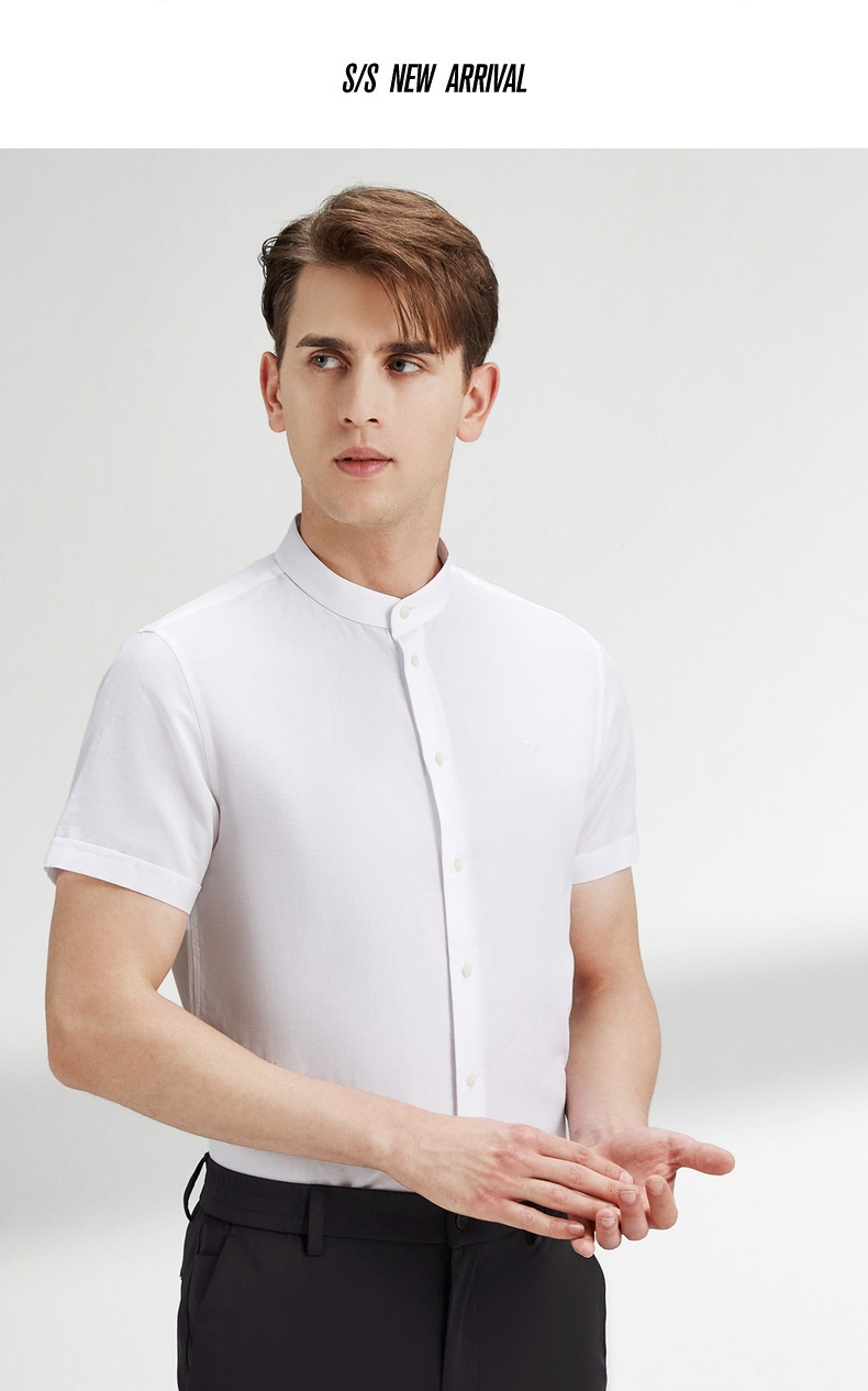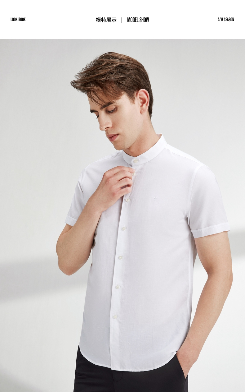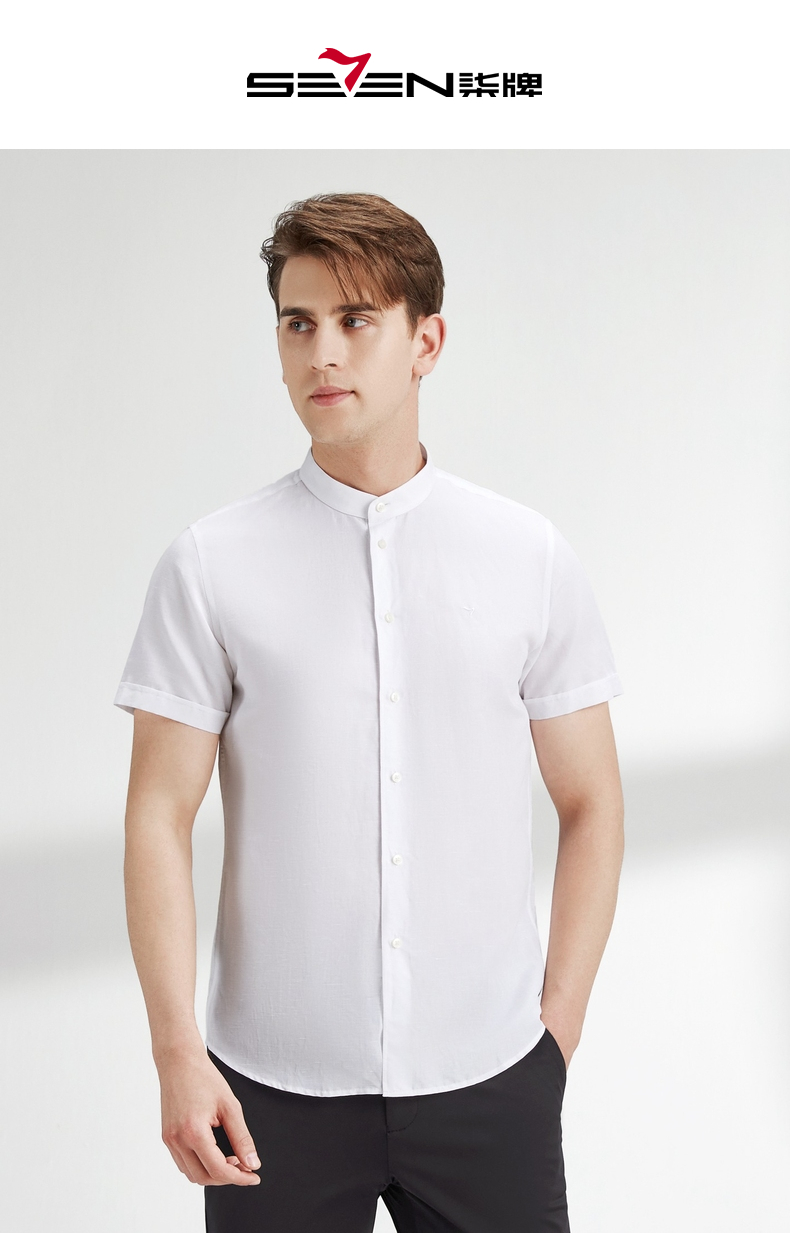 【含麻】柒牌短袖衬衫男夏商务休闲简约立领男装白衬衣122A70340