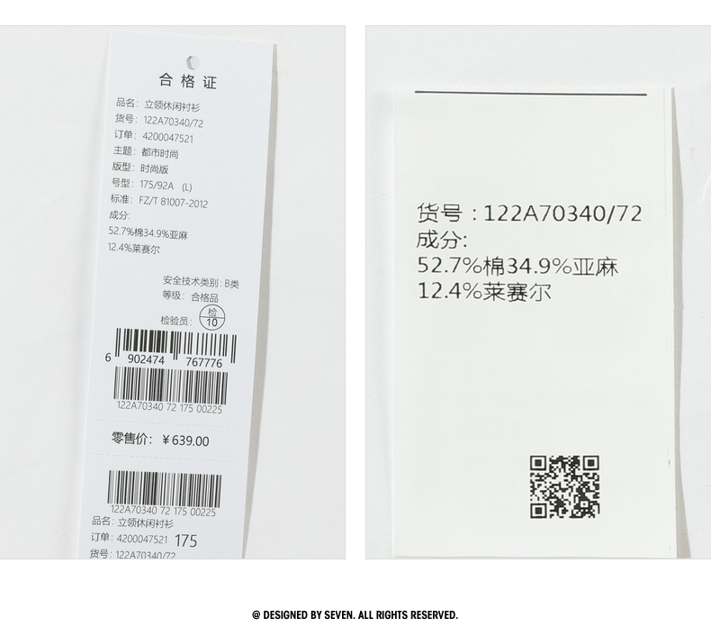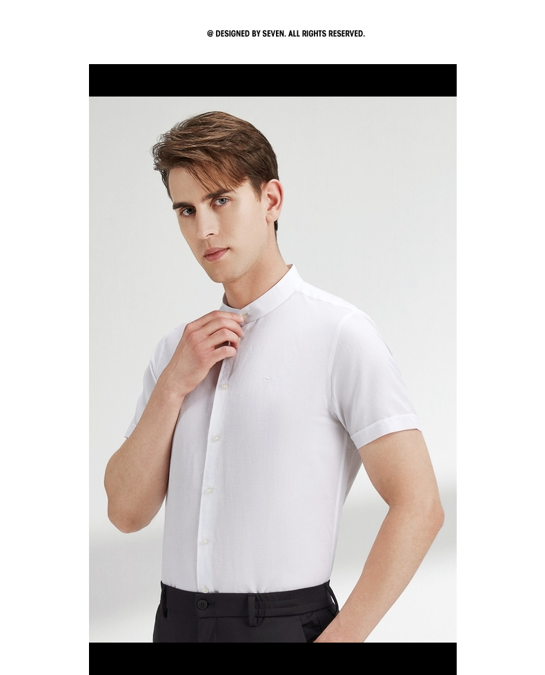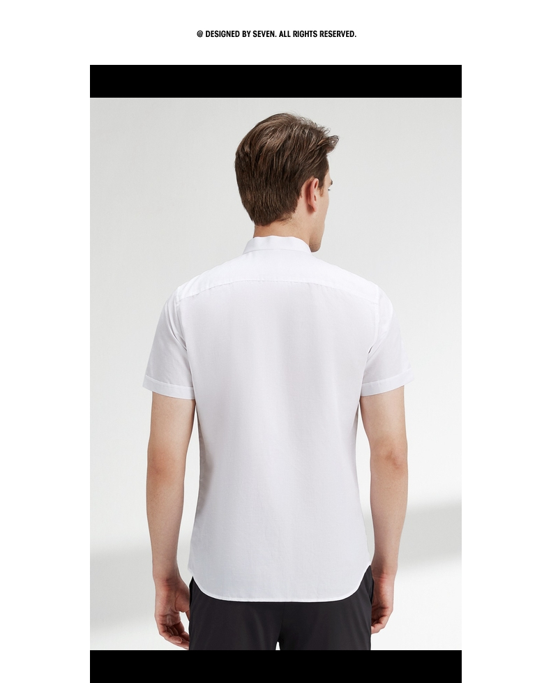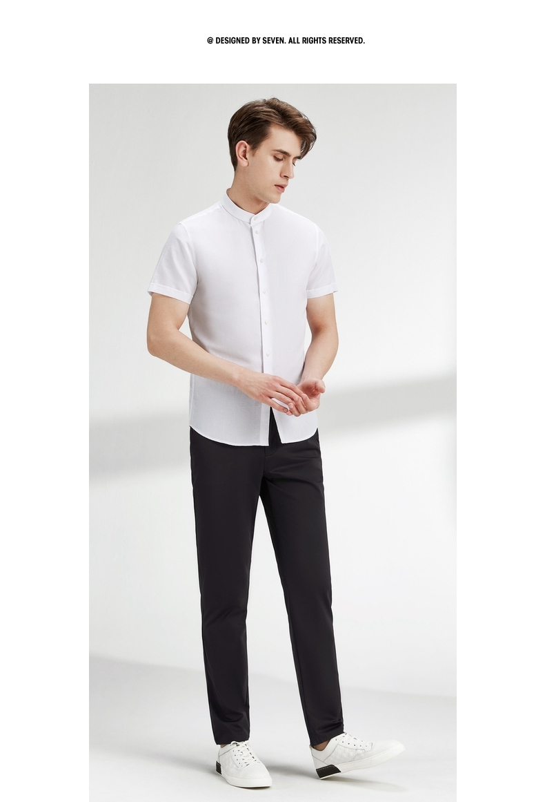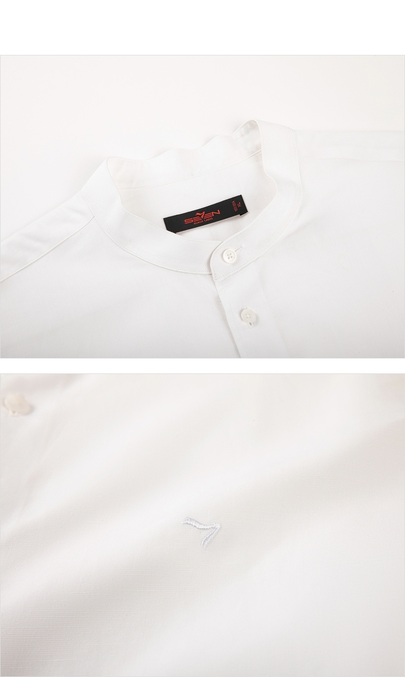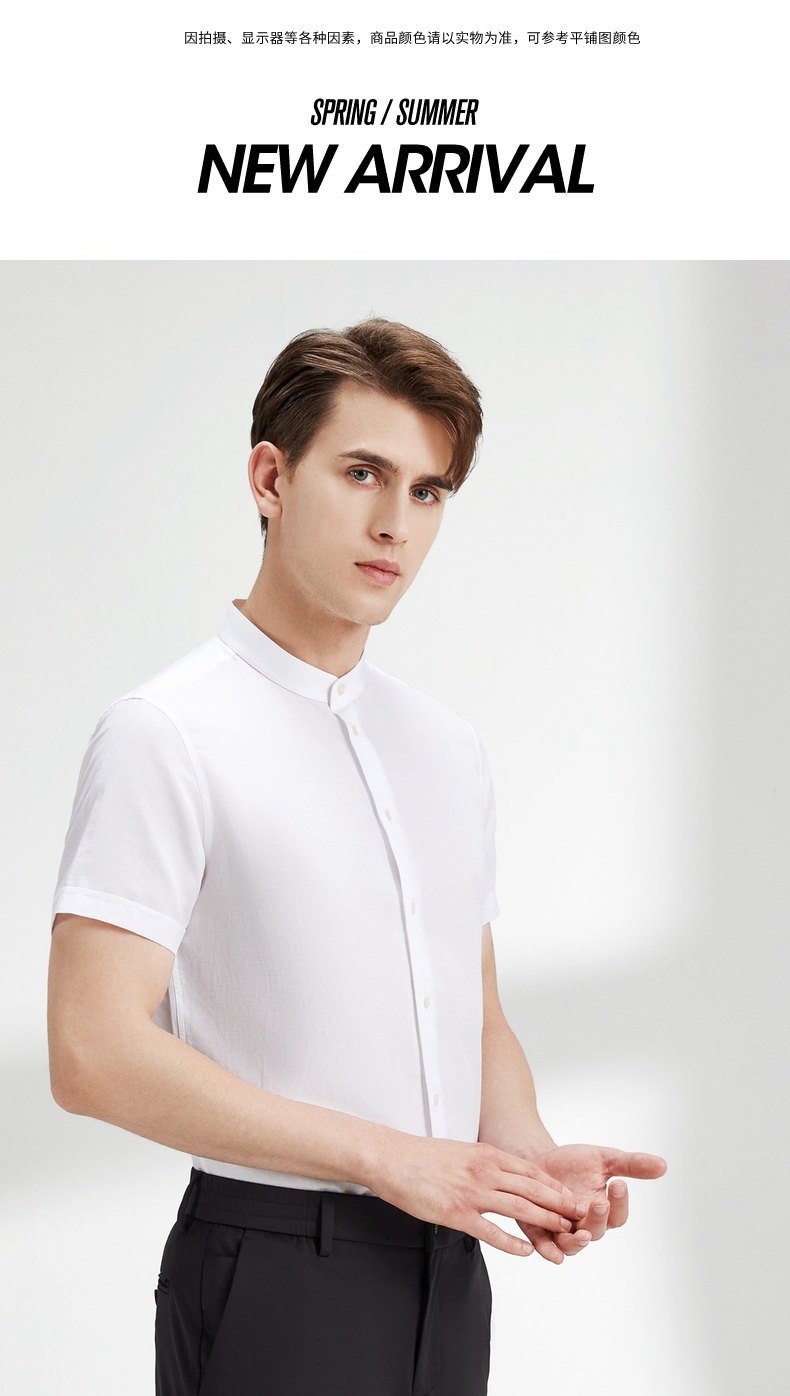 【含麻】柒牌短袖衬衫男夏商务休闲简约立领男装白衬衣122A70340