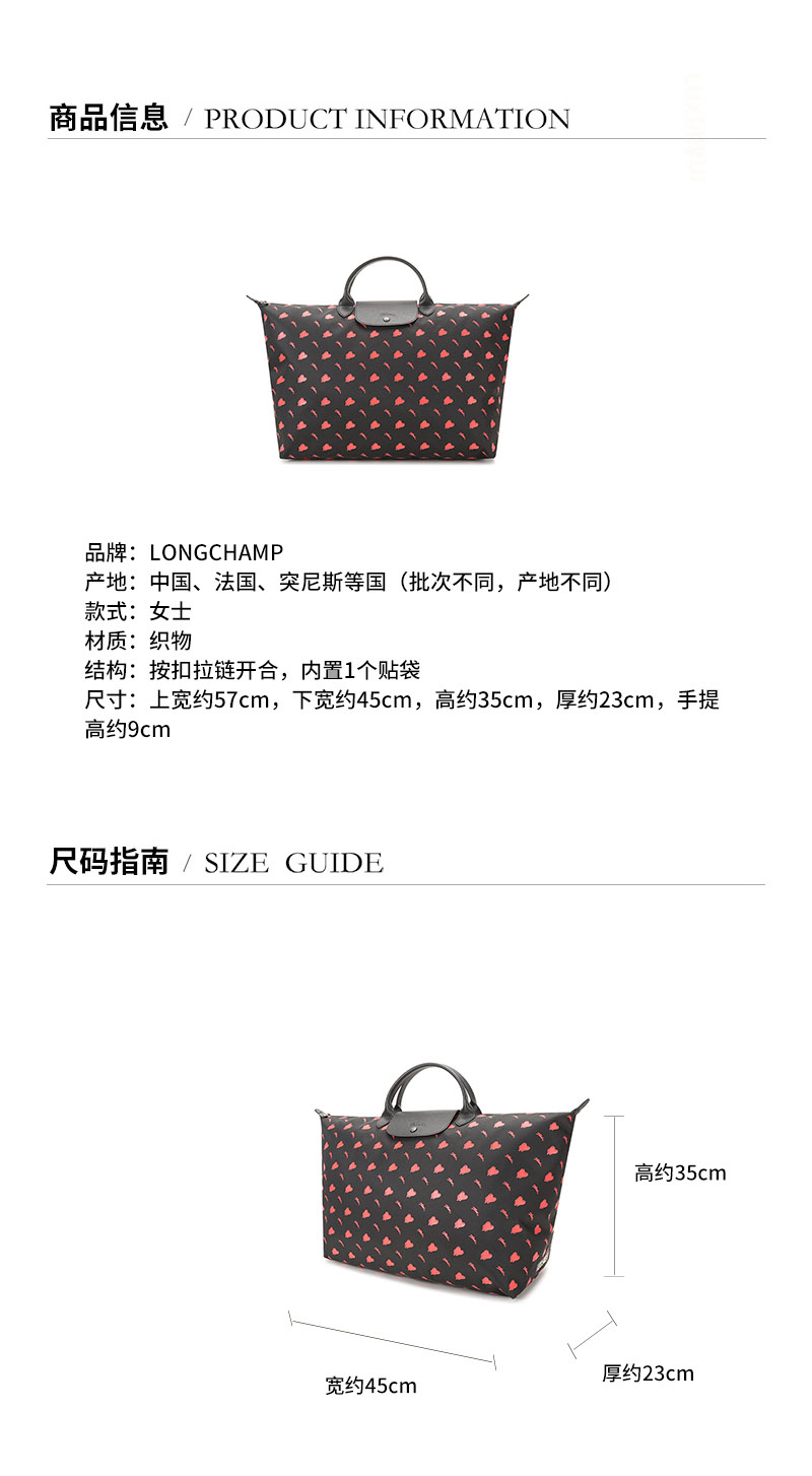 Longchamp/珑骧 2021款 女士大号LE PLIAGE系列织物短柄可折叠手提包饺子包 1624 EUD