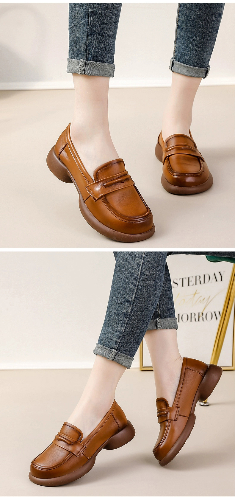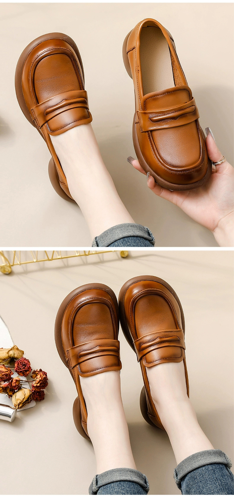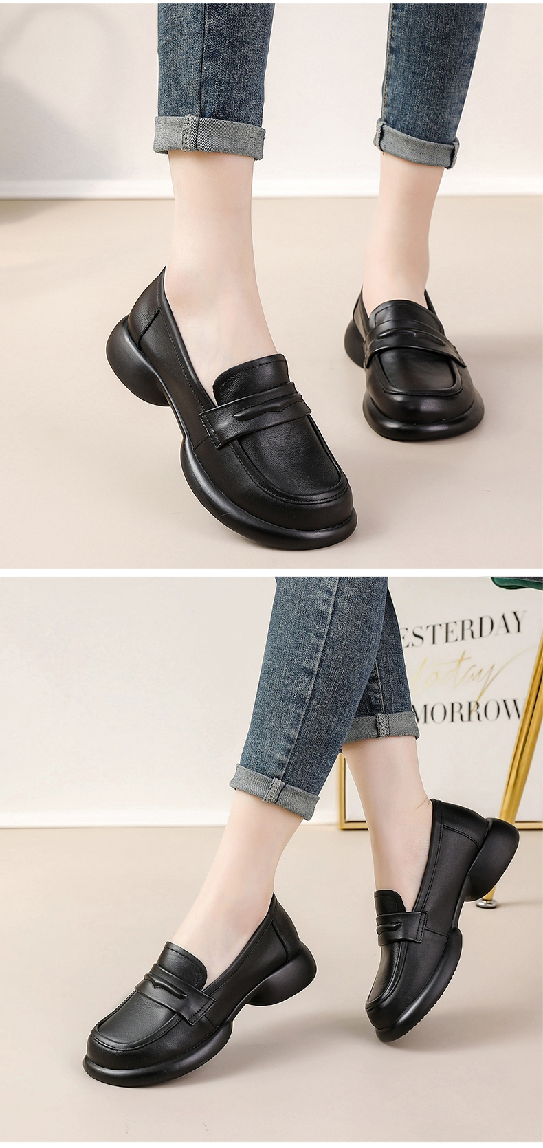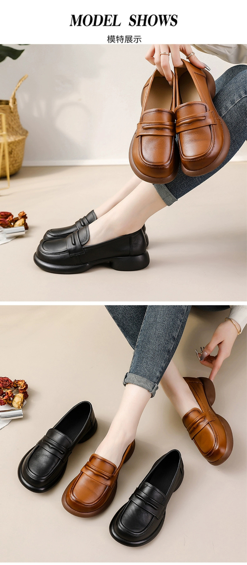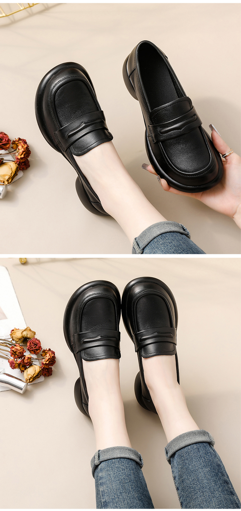 【实付满399送保温杯】【防滑厚底百搭乐福鞋】女士休闲皮鞋 通勤办公单鞋