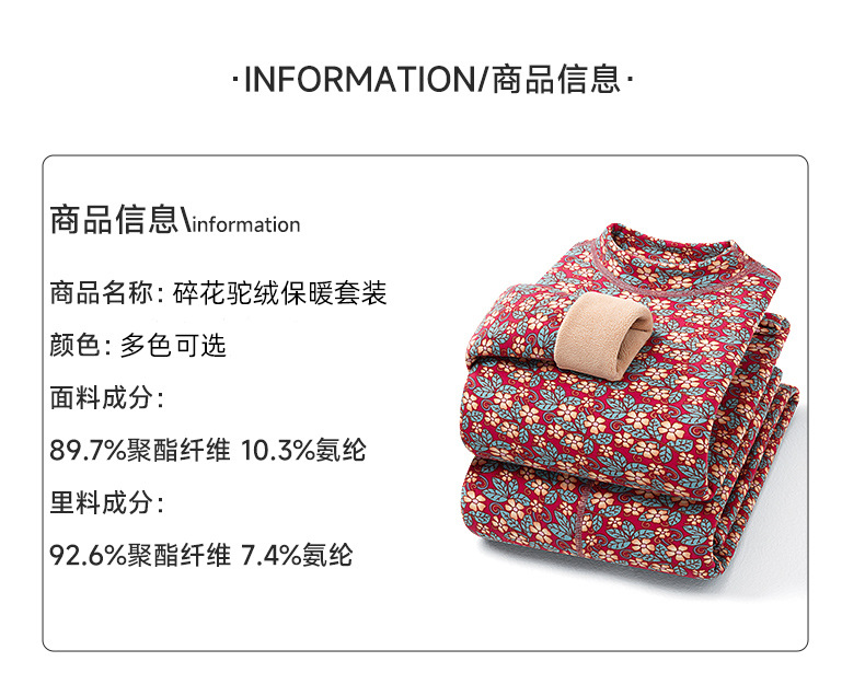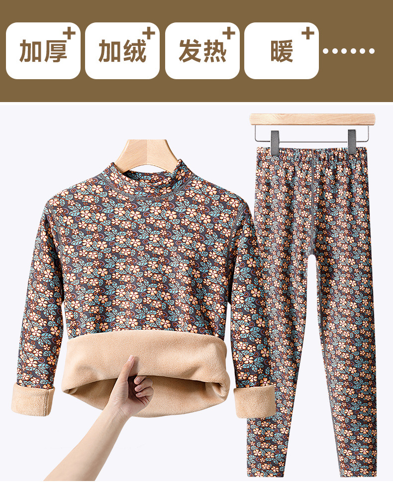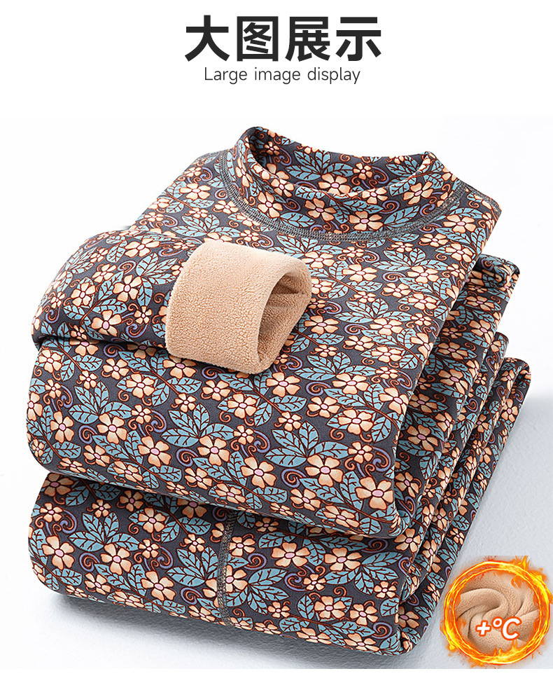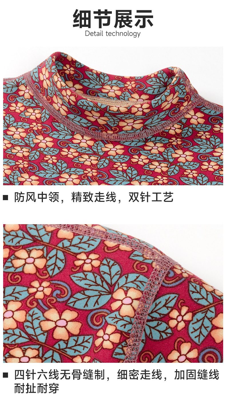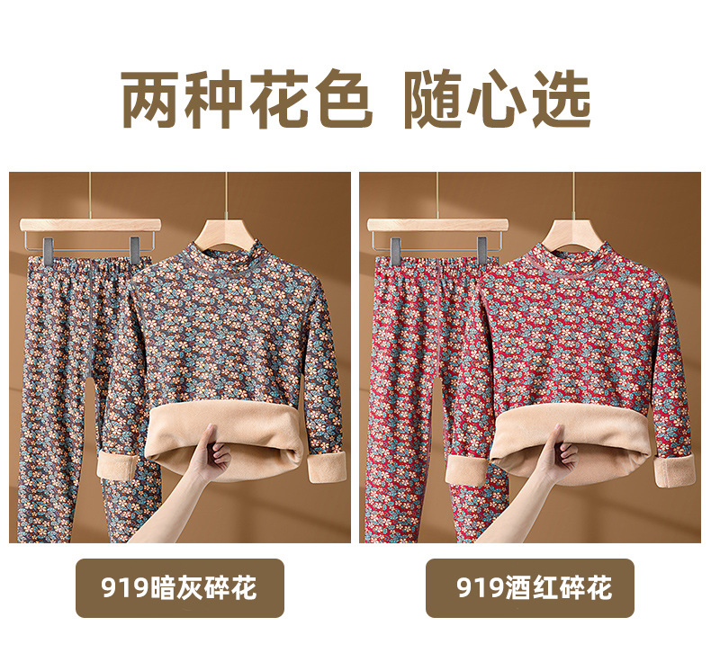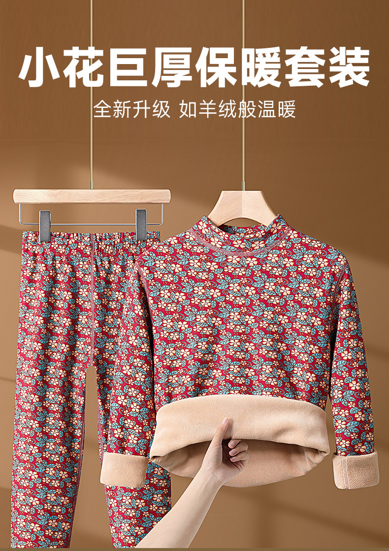 冬季女士【半高领碎花保暖内衣套装】加绒加厚 中老年防寒中领秋衣秋裤