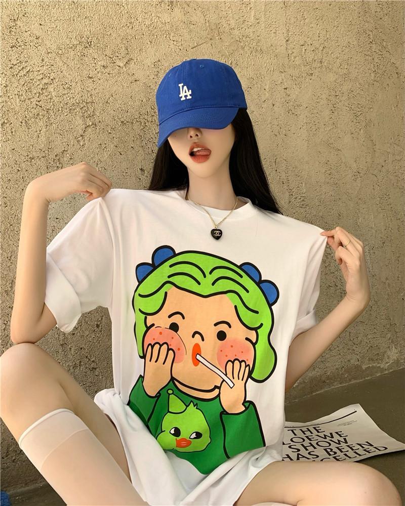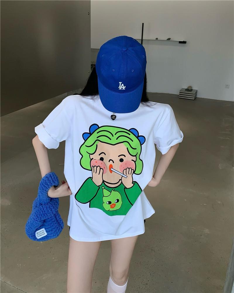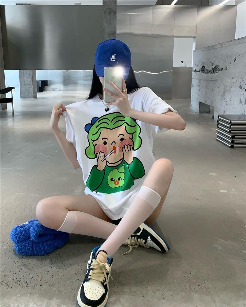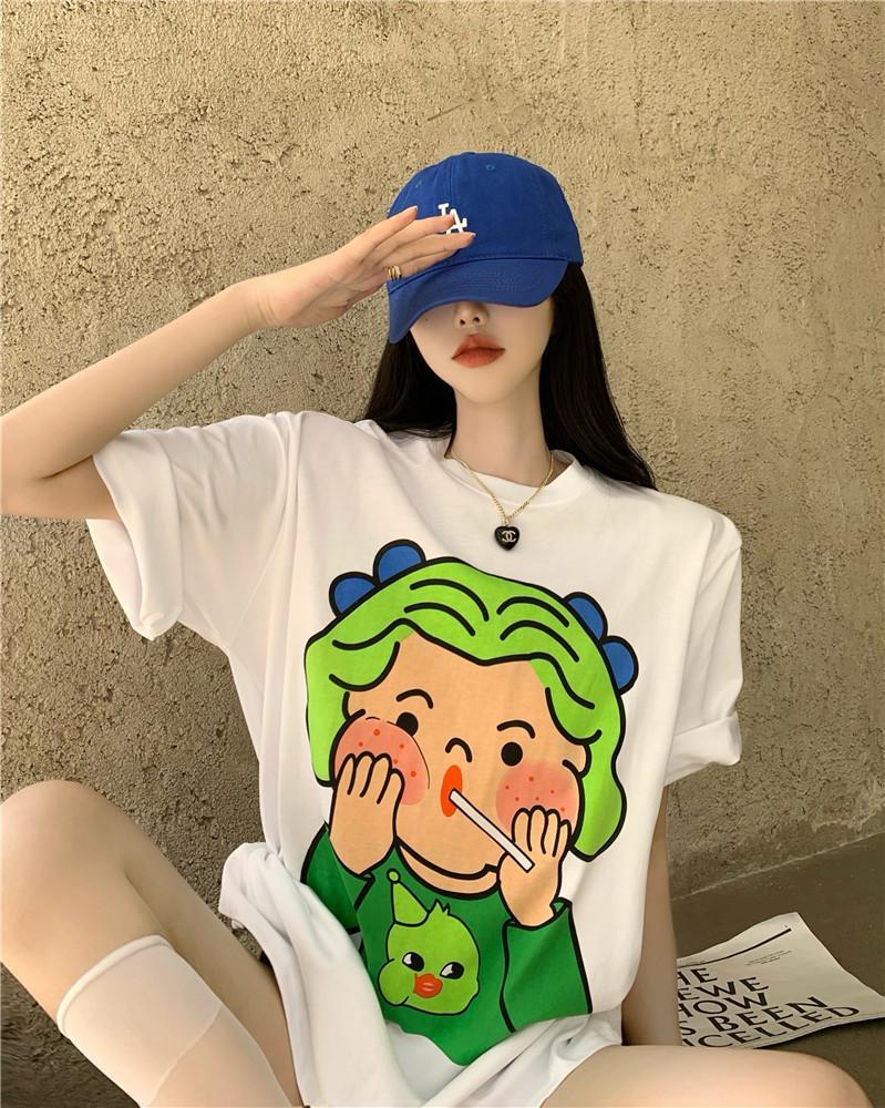 黛唯梵 抖音同款设计感小众短袖t恤女夏季新款韩版印花宽松上衣潮七夕情人节