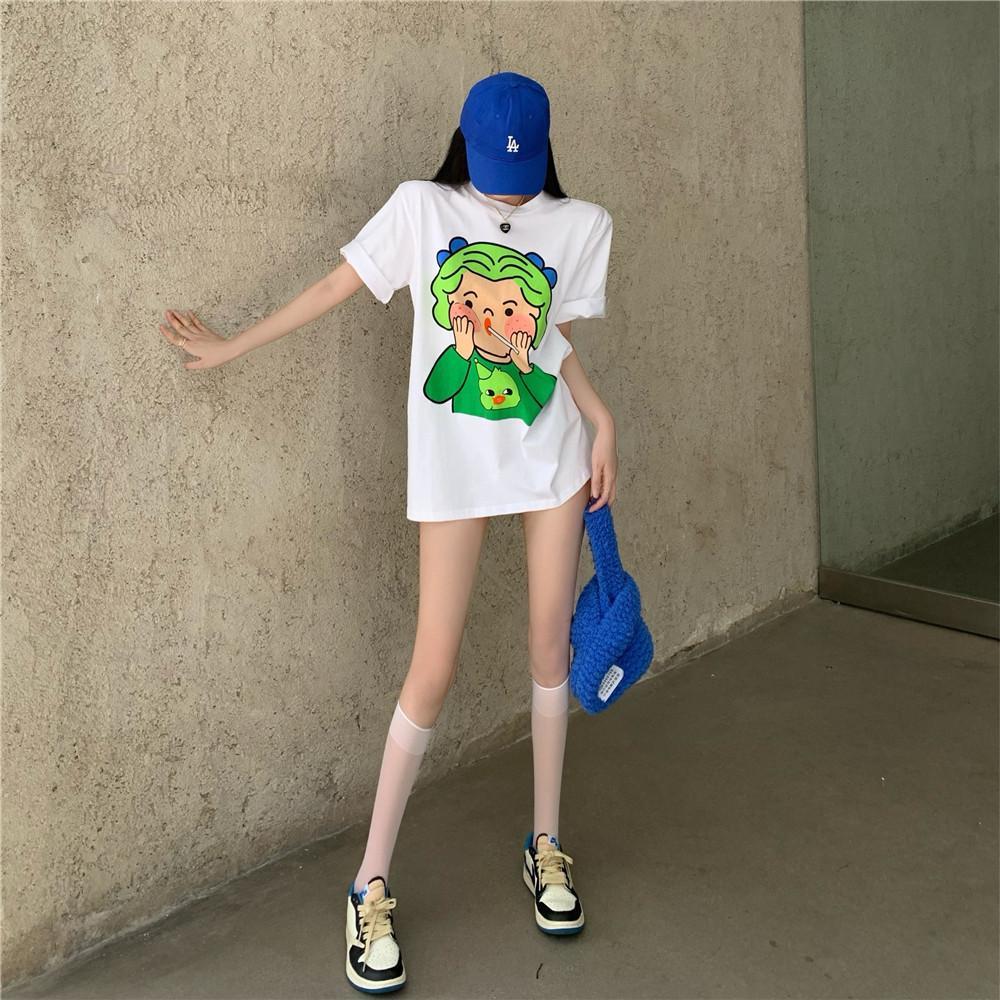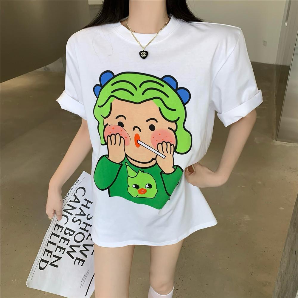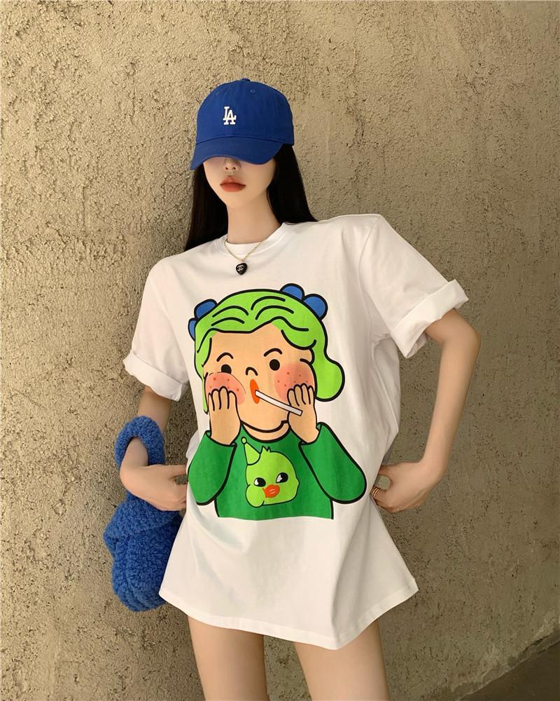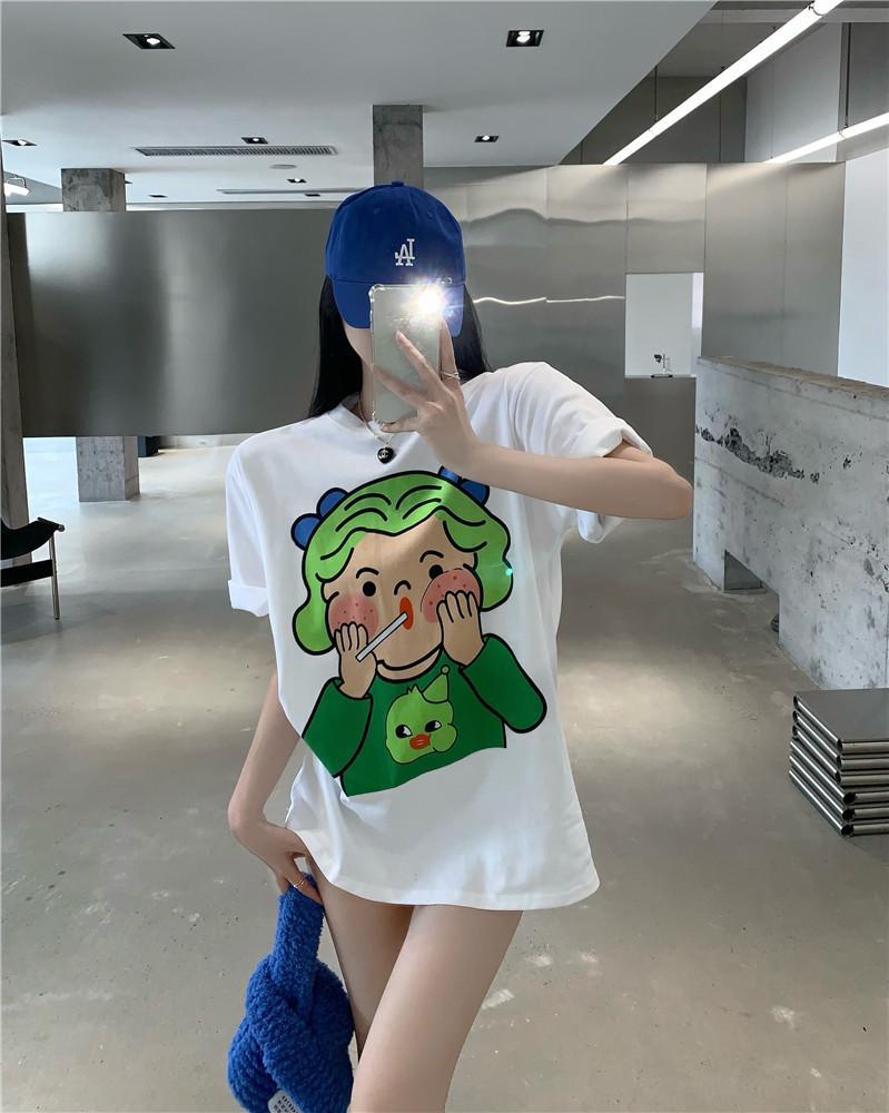 黛唯梵 抖音同款设计感小众短袖t恤女夏季新款韩版印花宽松上衣潮七夕情人节