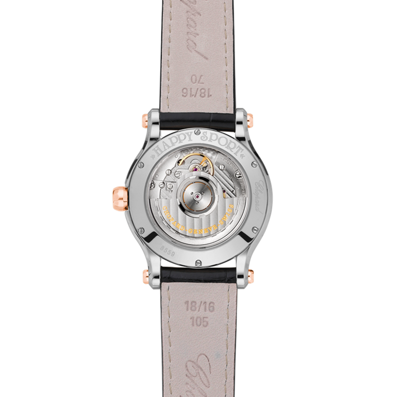 镜面材质 | 蓝宝石水晶玻璃 | 表盘 | 精钢 18K玫瑰金表壳 镶钻表圈 珍珠母贝与玑镂饰纹中心表盘 罗马文及条形时标,7钻钻石 日期显示 背透,蓝宝石水晶玻璃表盖 |