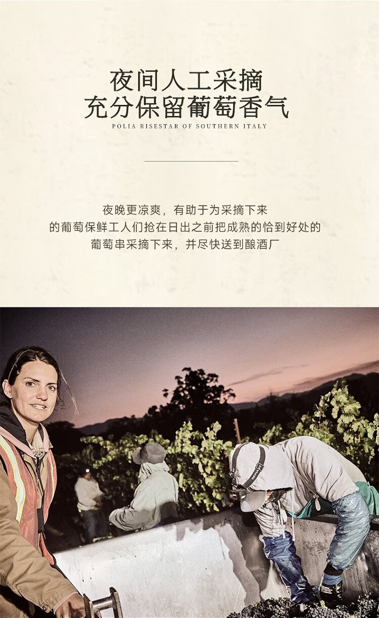 皇家穆苏珍藏老藤干红葡萄酒采用的都是夜间采摘的葡萄