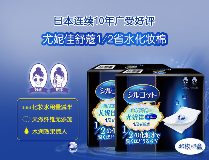 尤妮佳 舒蔻1/2省水 王一博同款 湿敷补水不掉絮柔软型 化妆棉 卸妆棉洗脸巾40片 (日本原装进口)*2