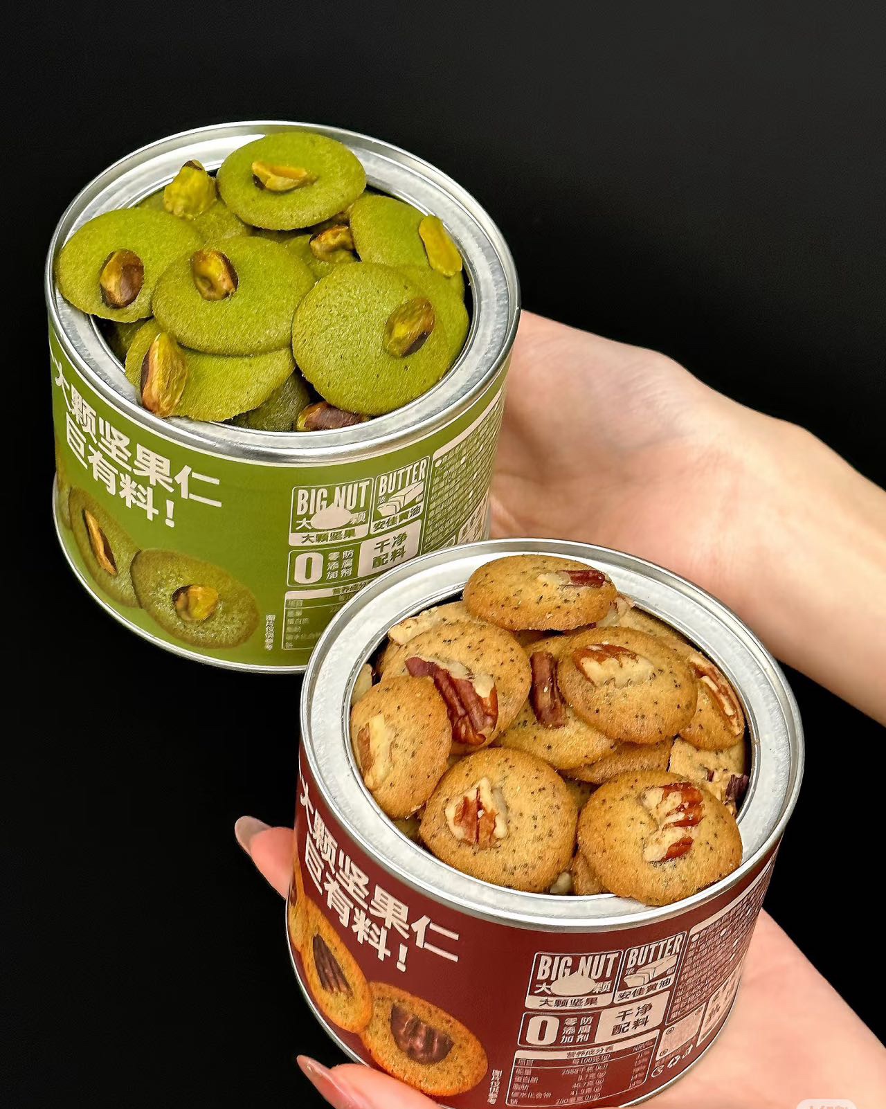 纯手工制作,高温烘烤不油炸,超大颗坚果超有料,奶香坚果香完美交织,酥脆可口,猛吃也不腻~