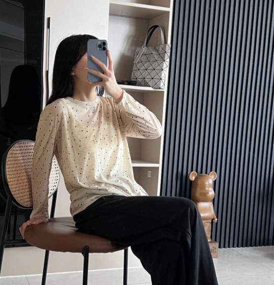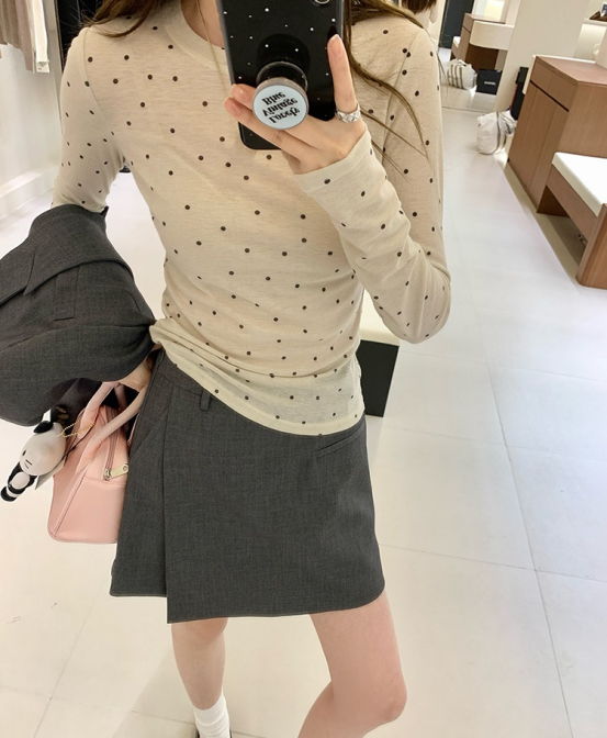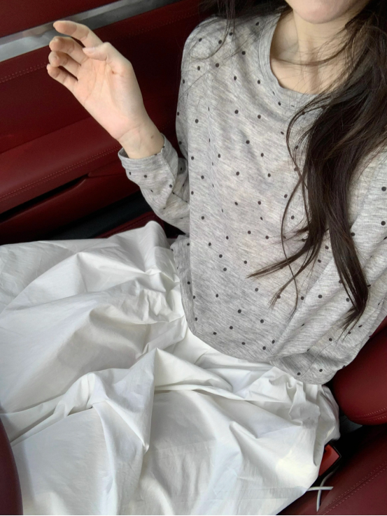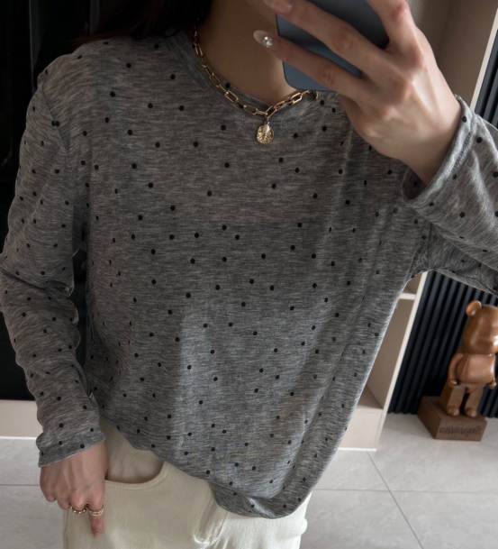 Ootd|让让!韩妹登场 微透的波点T真的有够好看的!! 准懂啊这个版型也太显纸片人了 下半身也灰常好搭配 面料很舒服透气 拿来打底单穿都好看