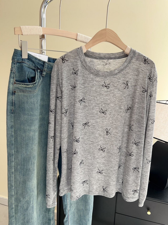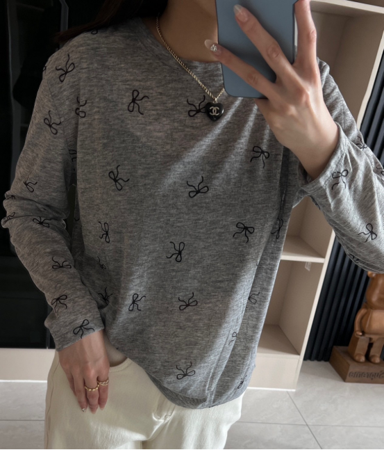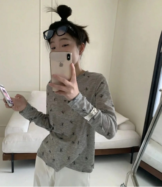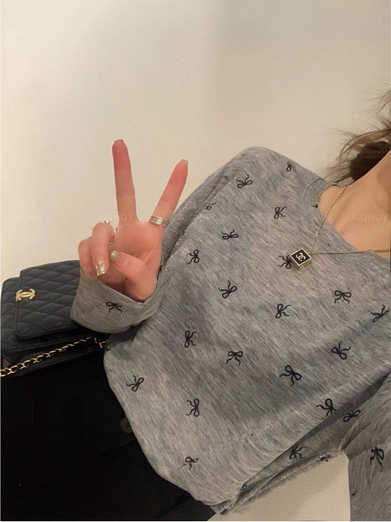 清冷感穿搭🔗蝴蝶结打底衫jue 对排得上号‼ 今年蝴蝶结的元素相当爆~ 这个灰有点清冷感的视觉 白色会相对于温柔些~ 个人会更偏向灰色基础又百搭 面料超级柔软亲肤透气